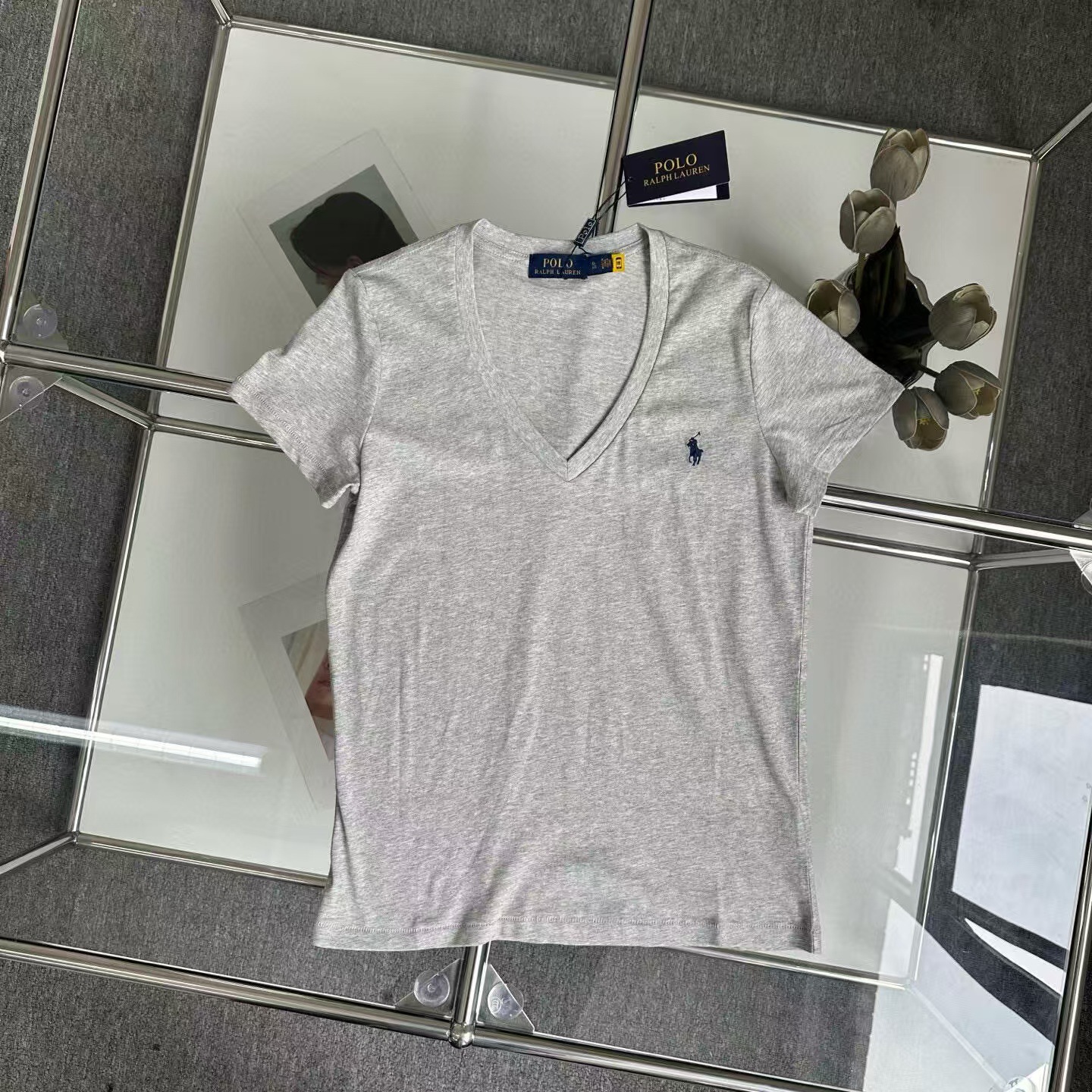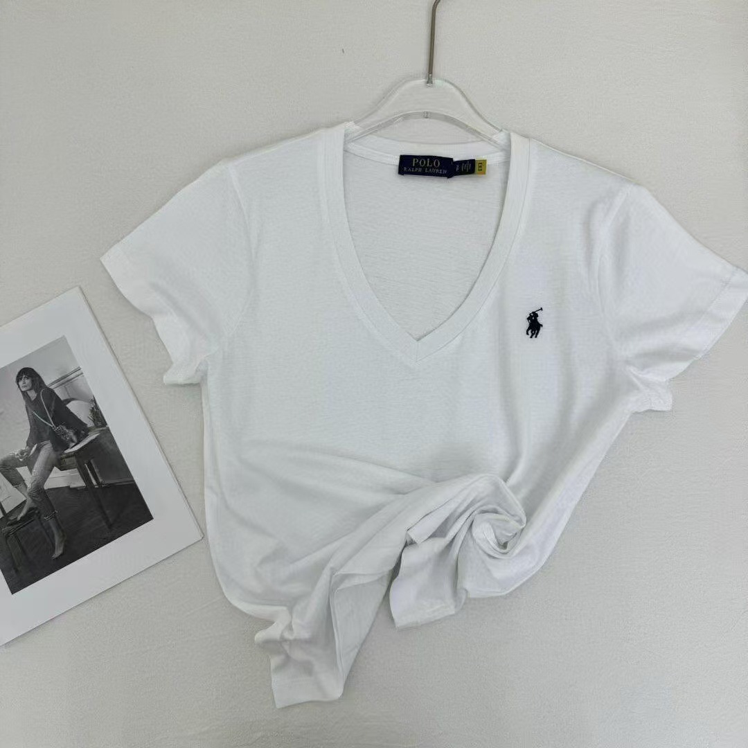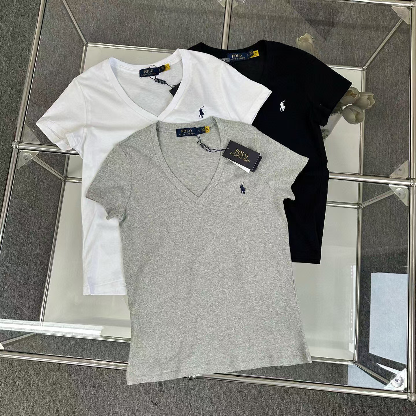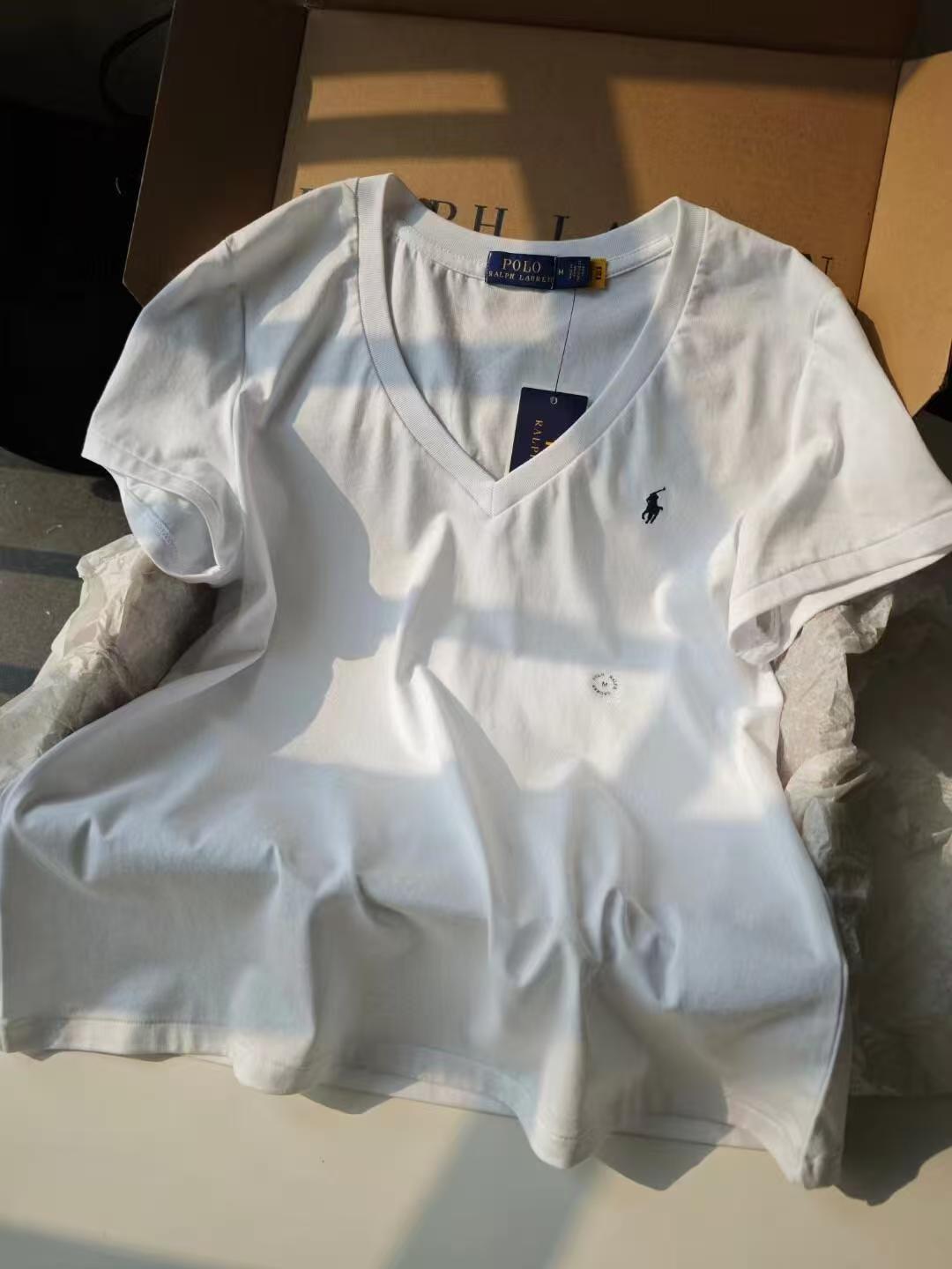 스윕 사이즈 RL 러프 오리지널 대외 무역 여자 여름 올 매치 얇은 코튼 자수 포니 V 넥 반팔 티셔츠