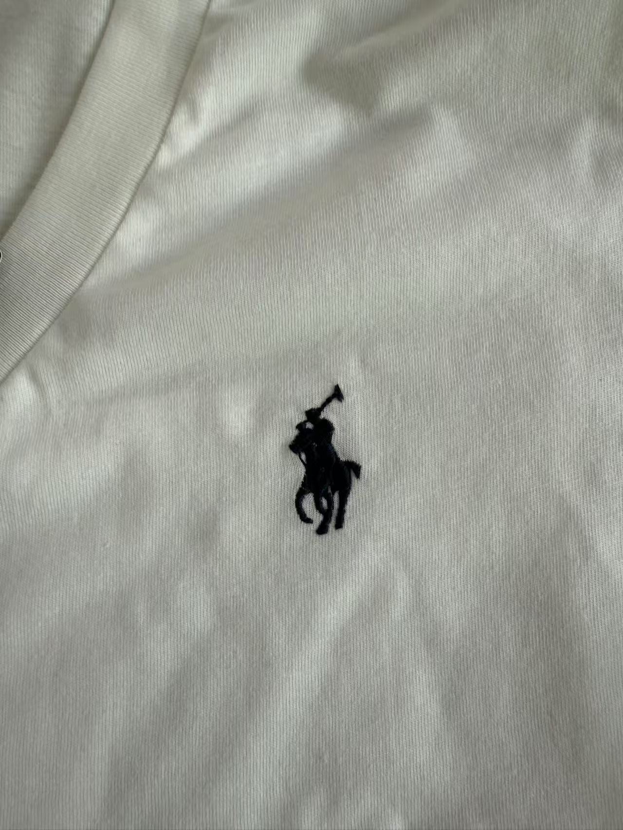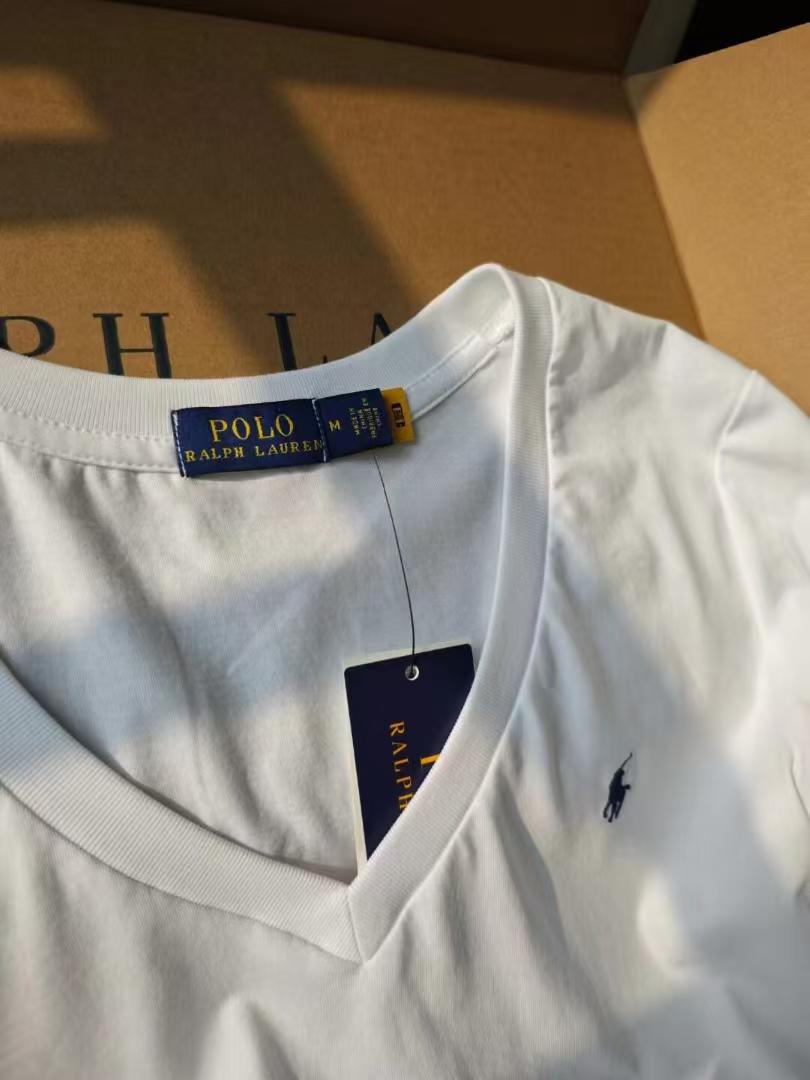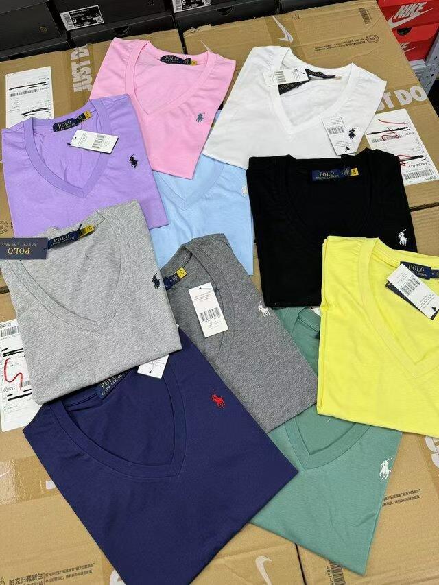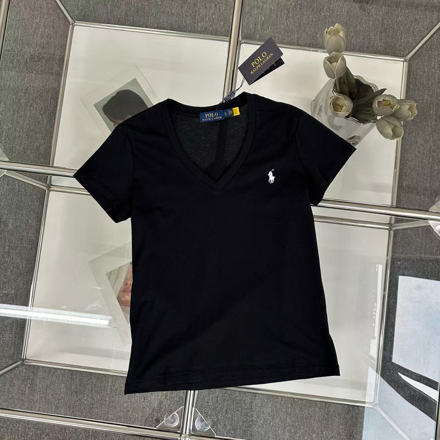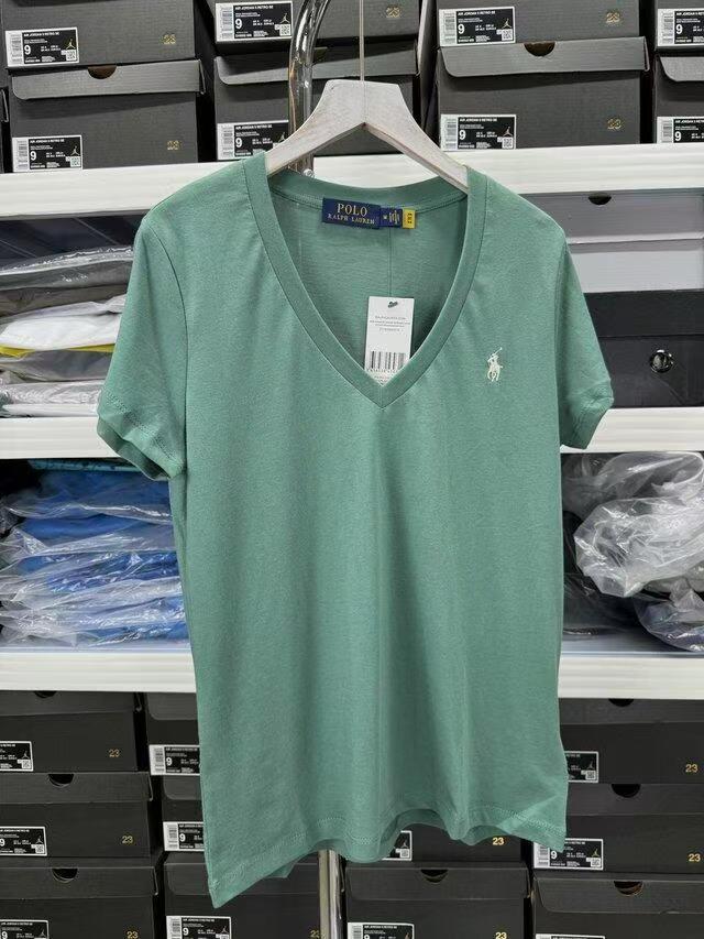 스윕 사이즈 RL 러프 오리지널 대외 무역 여자 여름 올 매치 얇은 코튼 자수 포니 V 넥 반팔 티셔츠