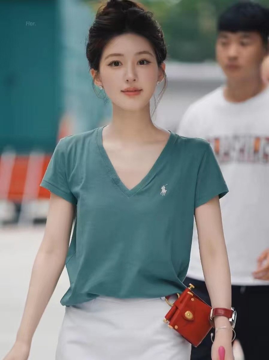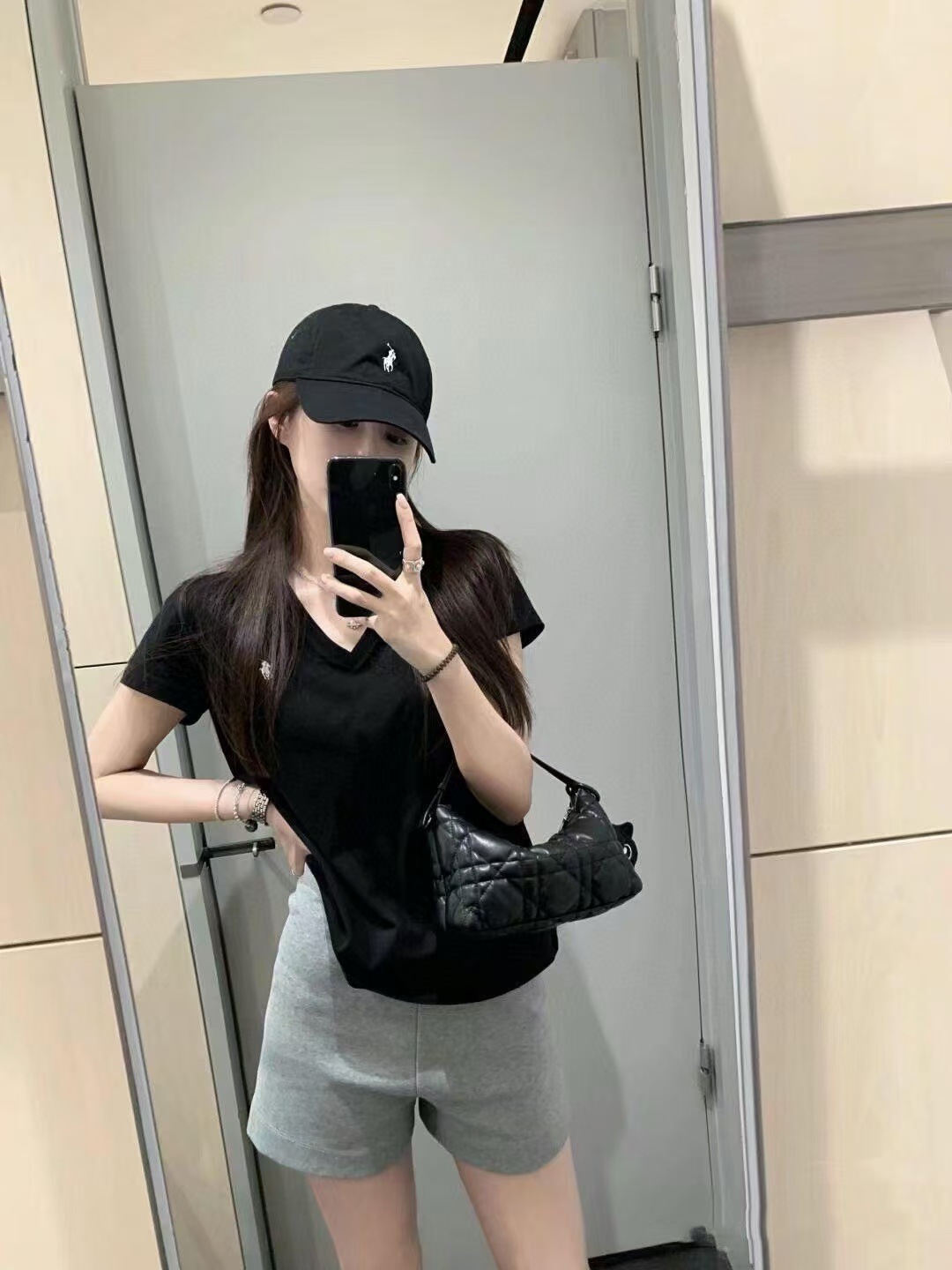 스윕 사이즈 RL 러프 오리지널 대외 무역 여자 여름 올 매치 얇은 코튼 자수 포니 V 넥 반팔 티셔츠스토어 가기