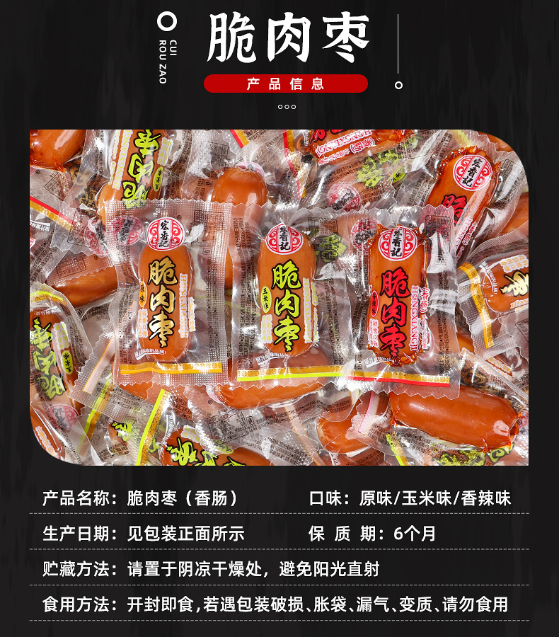 Hongxiangji 바삭한 고기 대추 소시지 대량 고기 스낵 도매 기숙사 간식 심야 간식스토어 가기