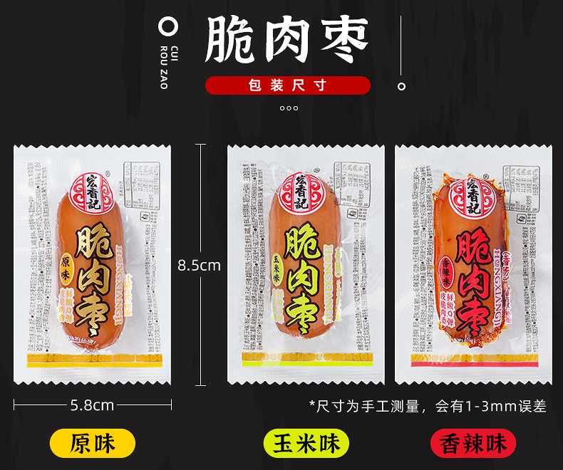 Hongxiangji 바삭한 고기 대추 소시지 대량 고기 스낵 도매 기숙사 간식 심야 간식