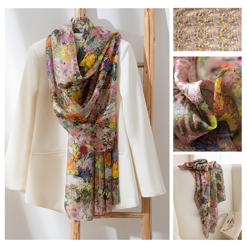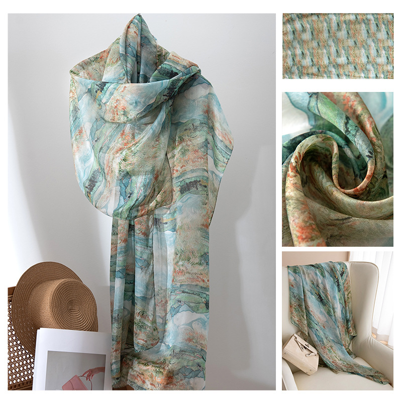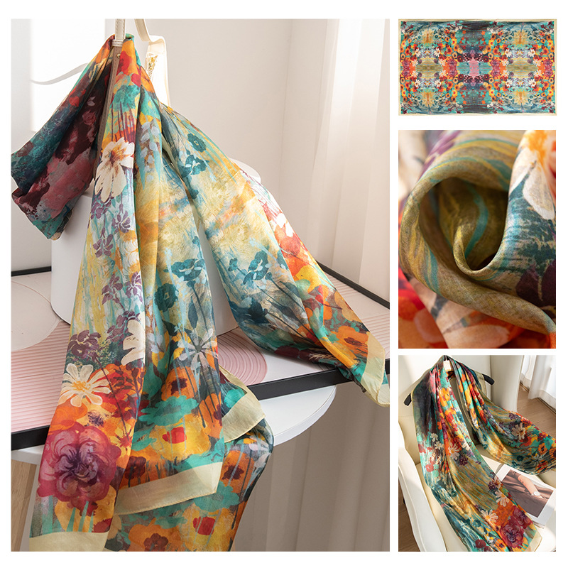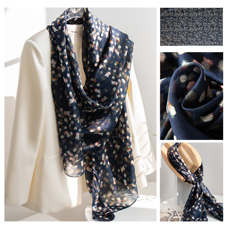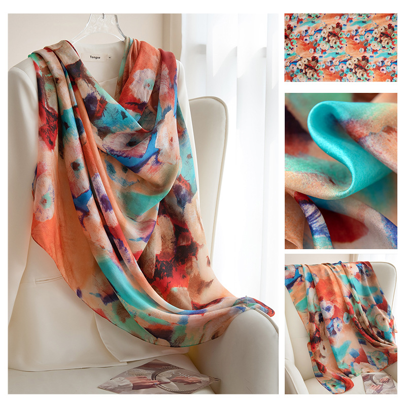 여름 새로운 실크 스카프 실크 하이 엔드 센스 멀 베리 실크 롱 스카프 엄마를위한 여자의 얇은 올 매치 큰 목도리스토어 가기