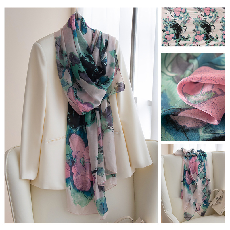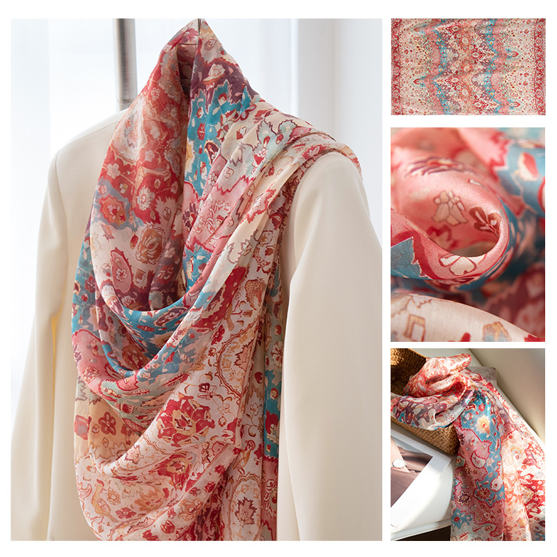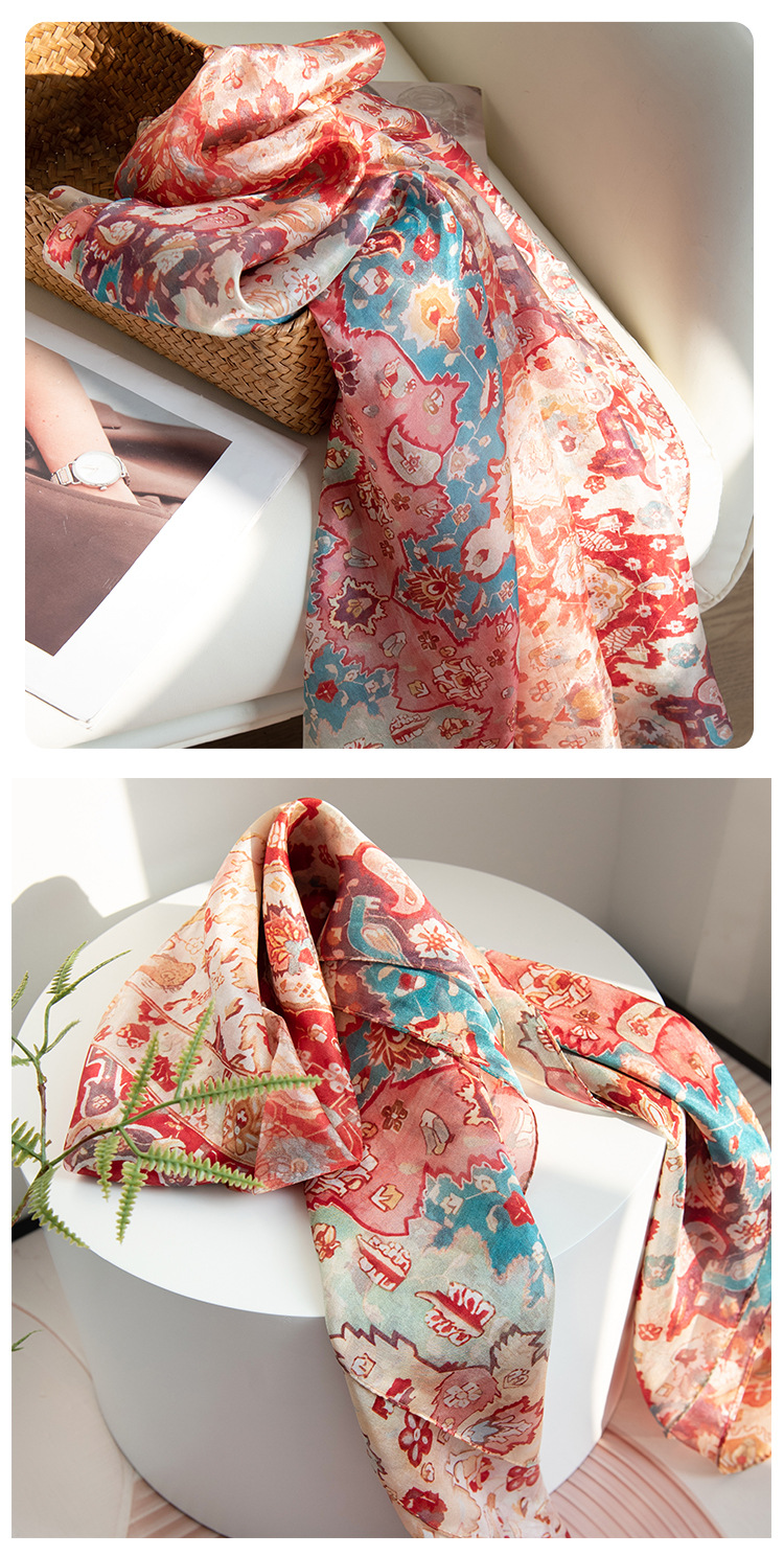 여름 새로운 실크 스카프 실크 하이 엔드 센스 멀 베리 실크 롱 스카프 엄마를위한 여자의 얇은 올 매치 큰 목도리