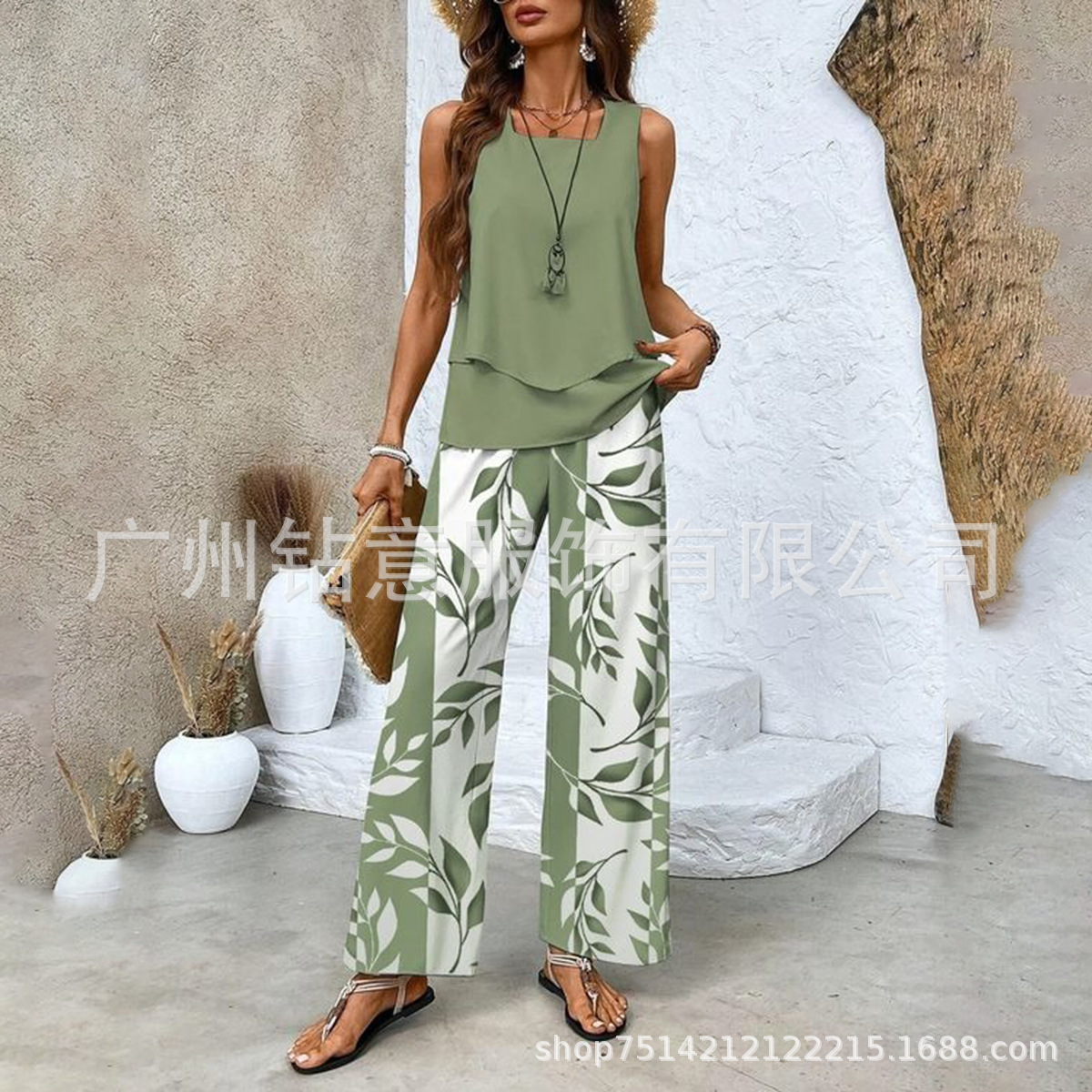 2025 새로운 재고 국경 간 대외 무역 유럽과 미국 여성 의류 폭발 세트 민소매 더블 레이어 조끼 재킷 바지 세트스토어 가기