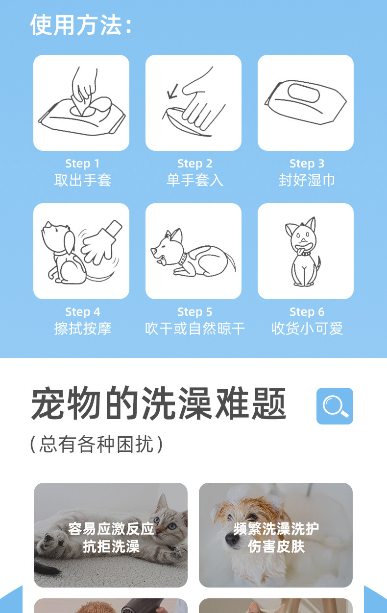 애완 동물 워시없는 장갑 고양이 개 목욕없는 장갑 깨끗한 드라이 클리닝 탈취제 애완 동물 물티슈 애완 동물 용품스토어 가기