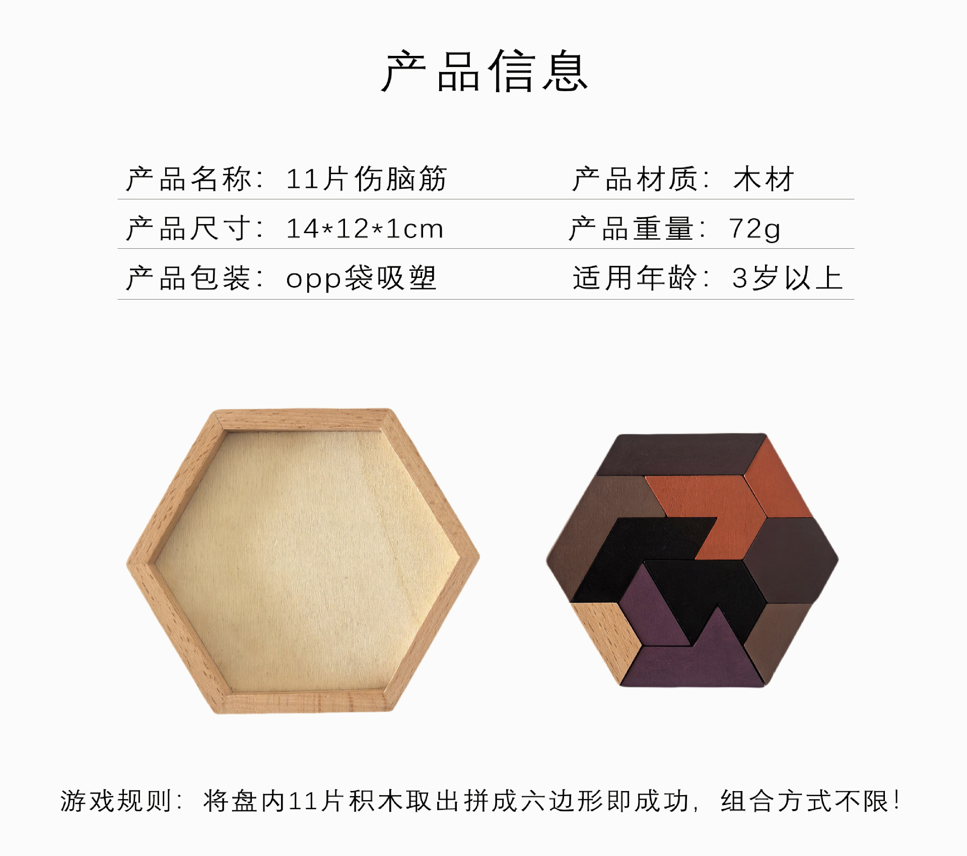 어린이 두뇌 퍼즐 11피스 육각형 퍼즐 빌딩 블록 입체 테트리스 루반 잠금 나무 장난감스토어 가기