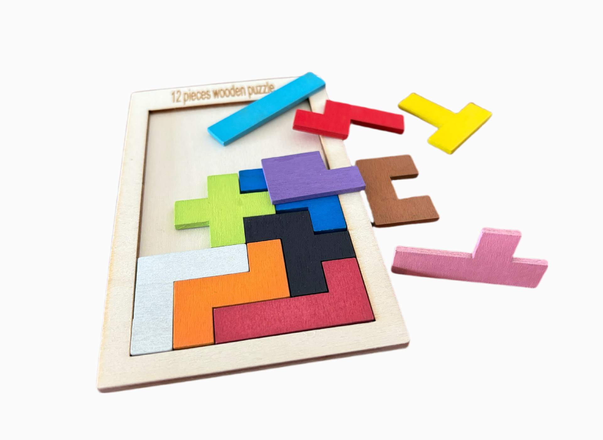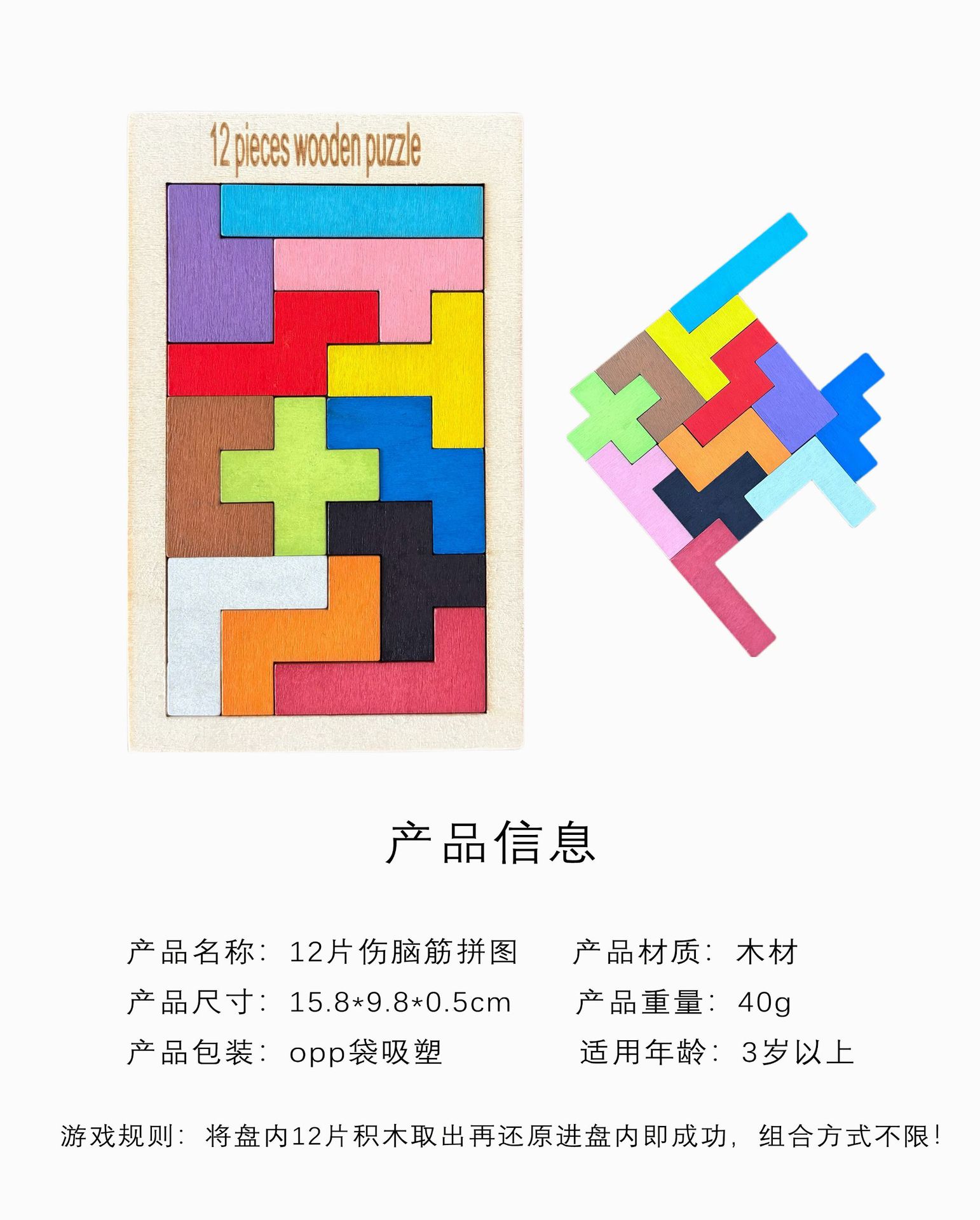 어린이 두뇌 퍼즐 11피스 육각형 퍼즐 빌딩 블록 입체 테트리스 루반 잠금 나무 장난감