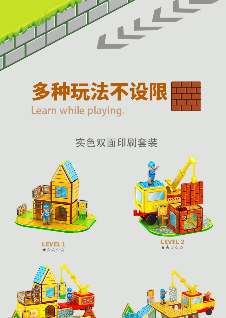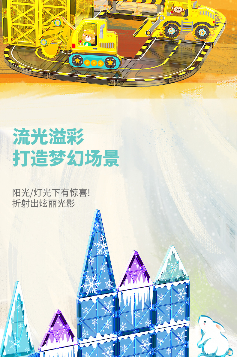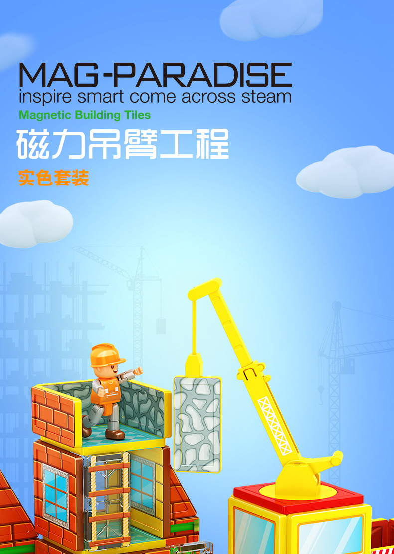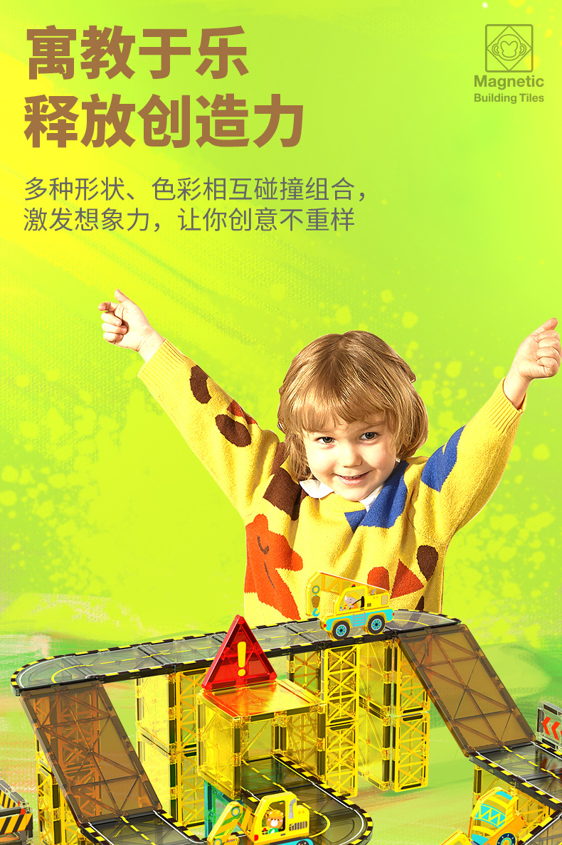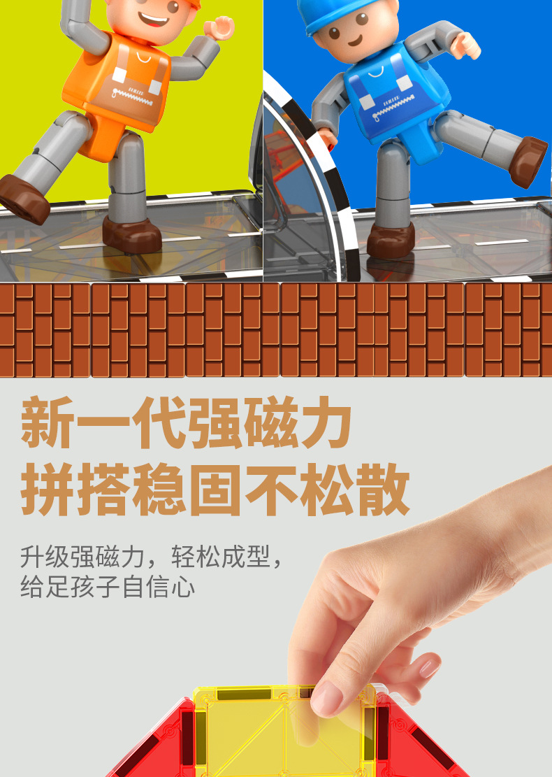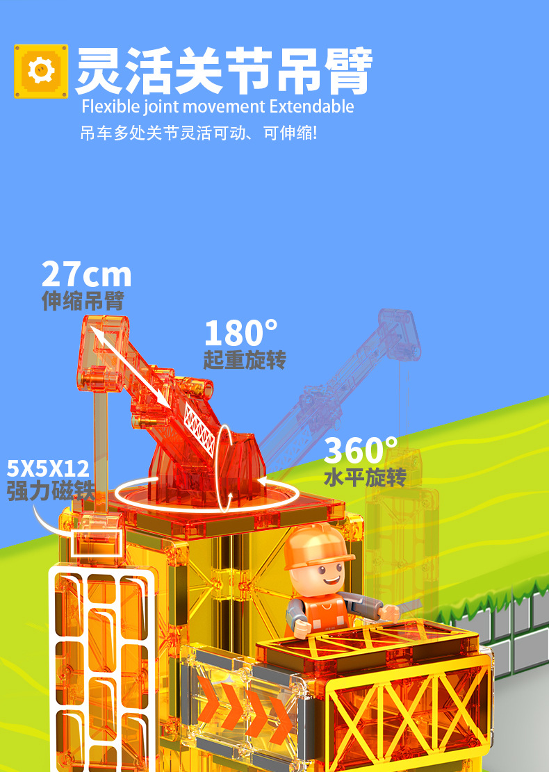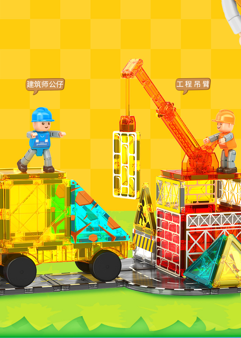 국경 간 컬러 창 자기 필름 도시 교통 건설 크레인 강한 자기 어린이 교육 조립 자기 건물 블록 장난감