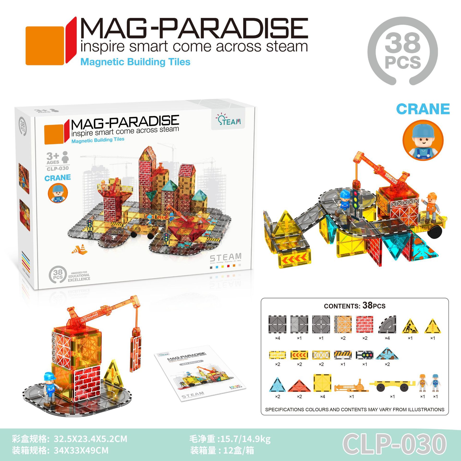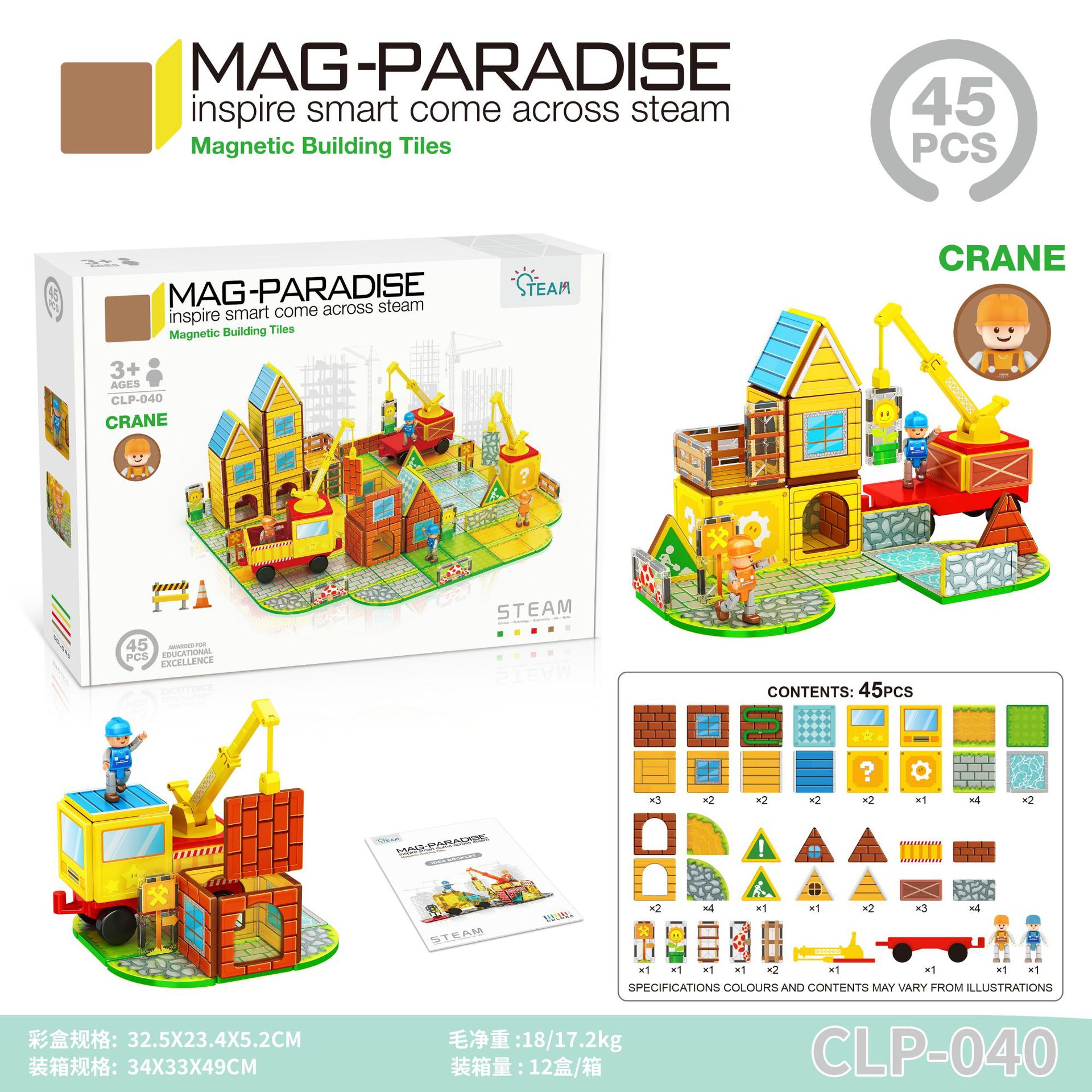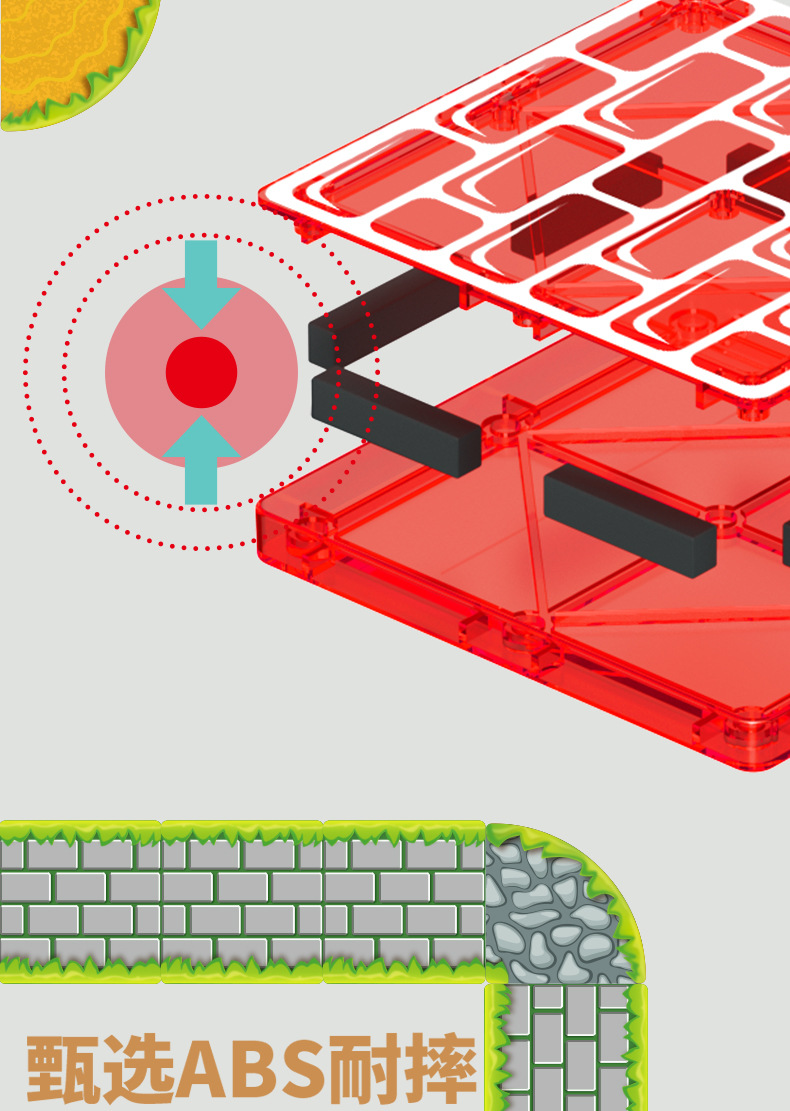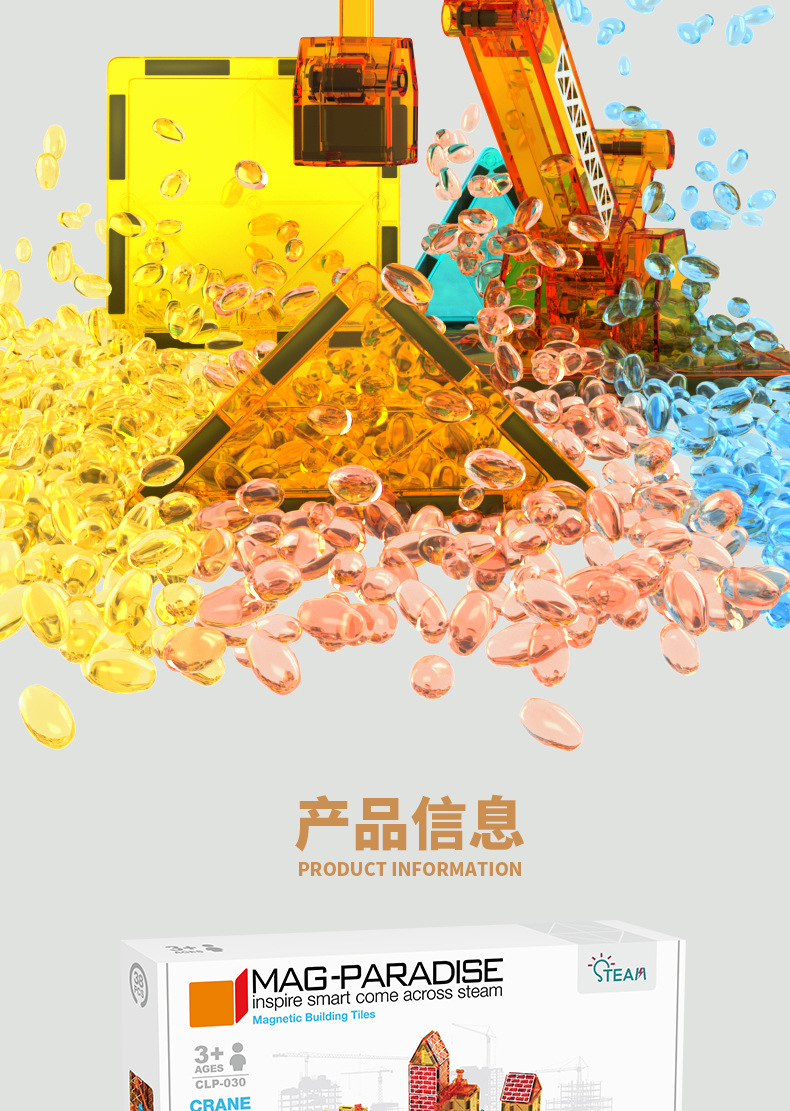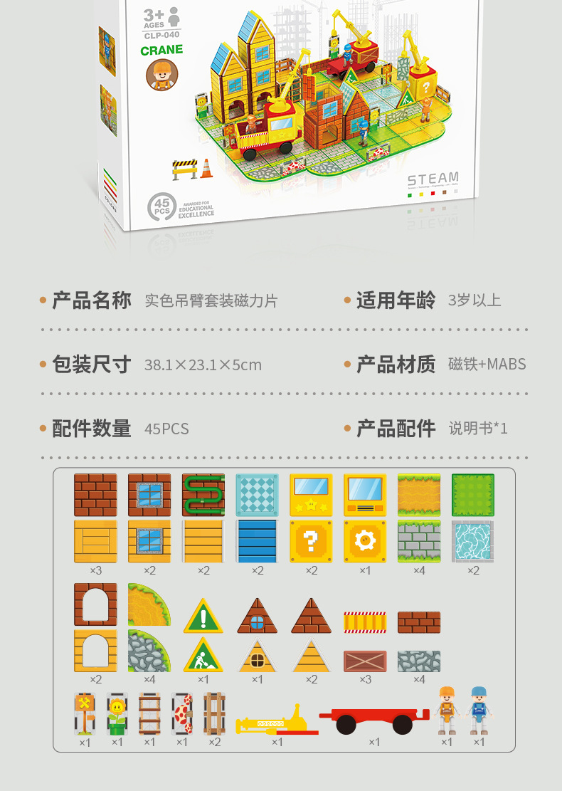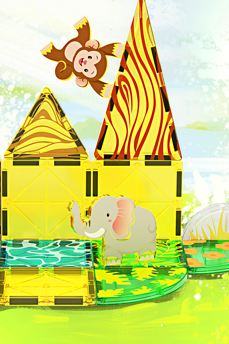 국경 간 컬러 창 자기 필름 도시 교통 건설 크레인 강한 자기 어린이 교육 조립 자기 건물 블록 장난감