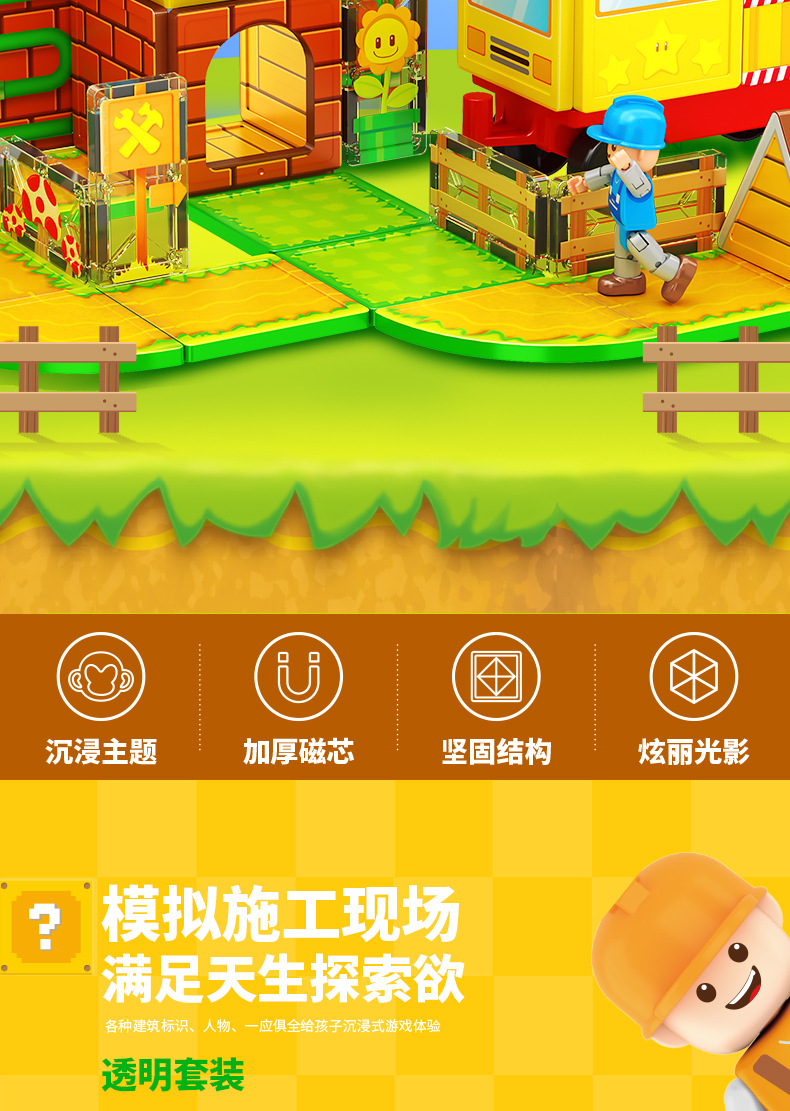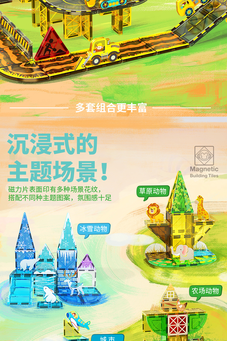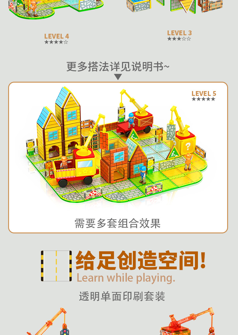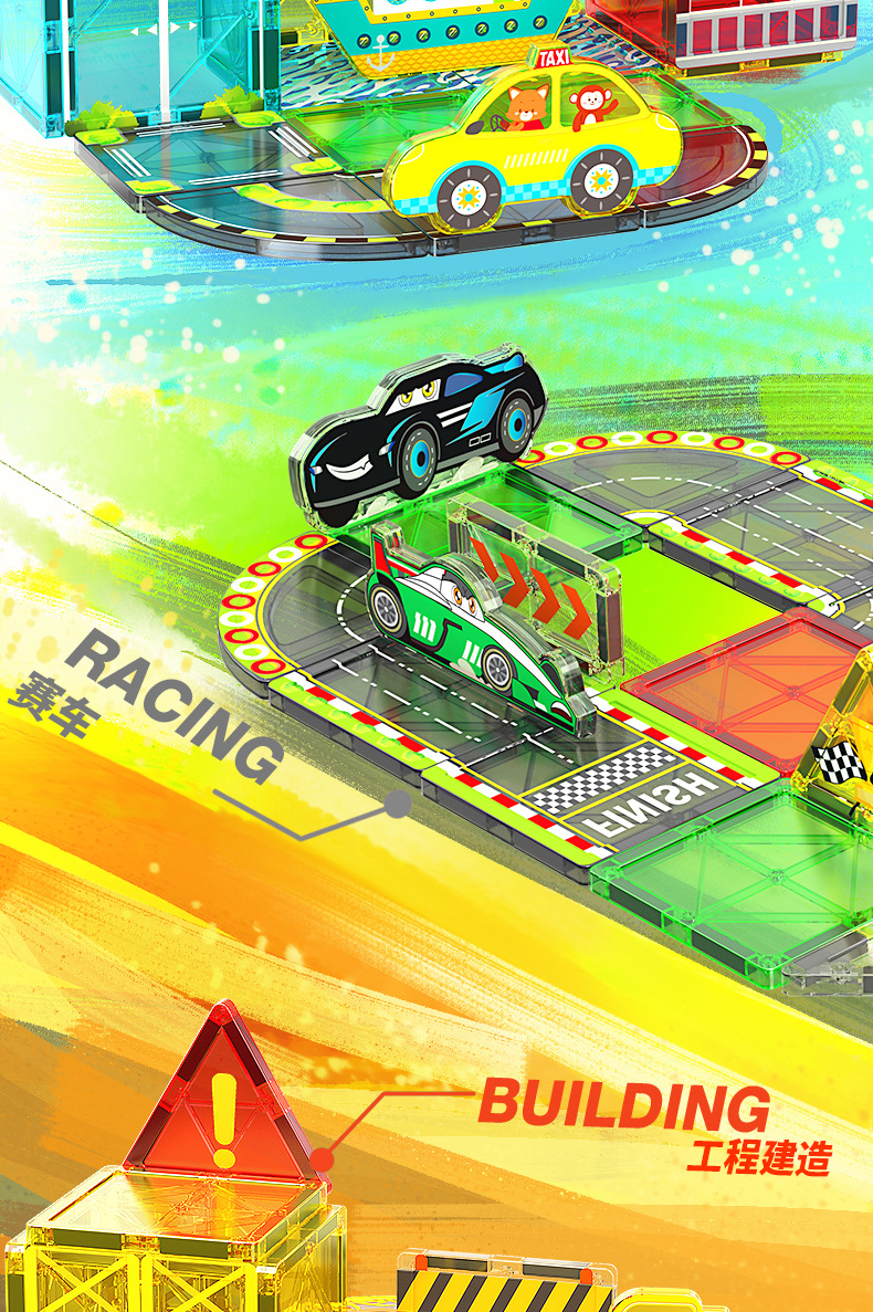 국경 간 컬러 창 자기 필름 도시 교통 건설 크레인 강한 자기 어린이 교육 조립 자기 건물 블록 장난감스토어 가기