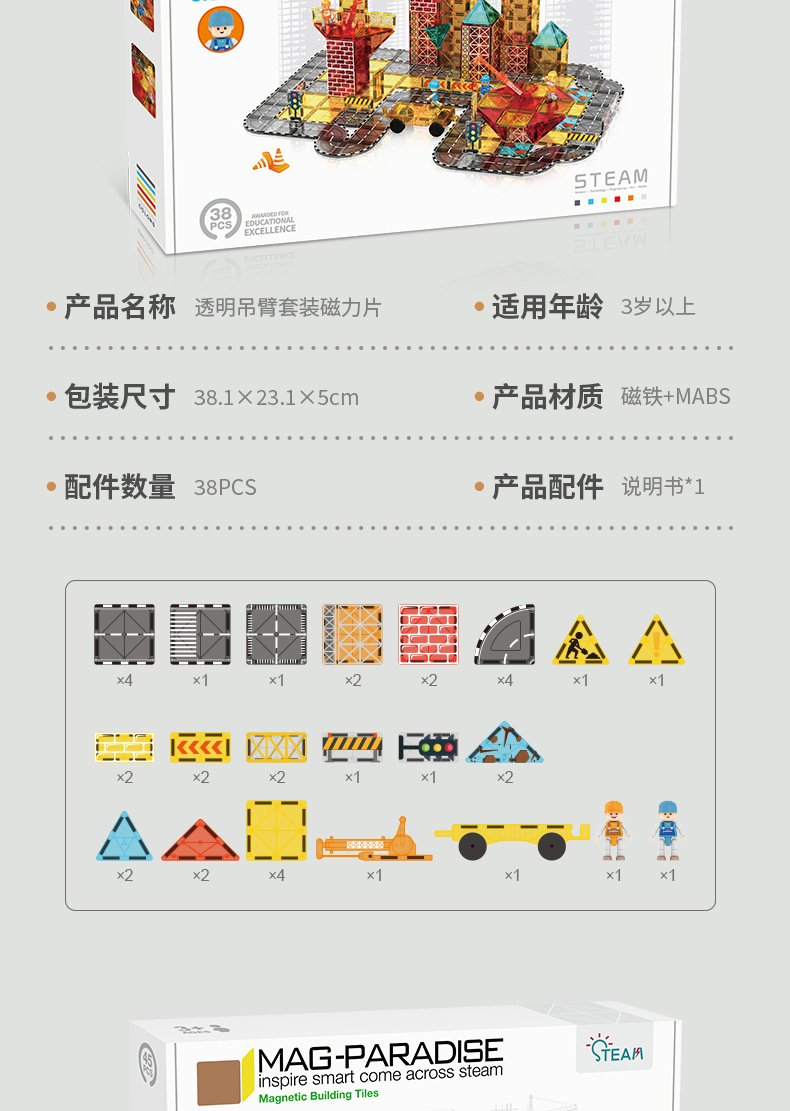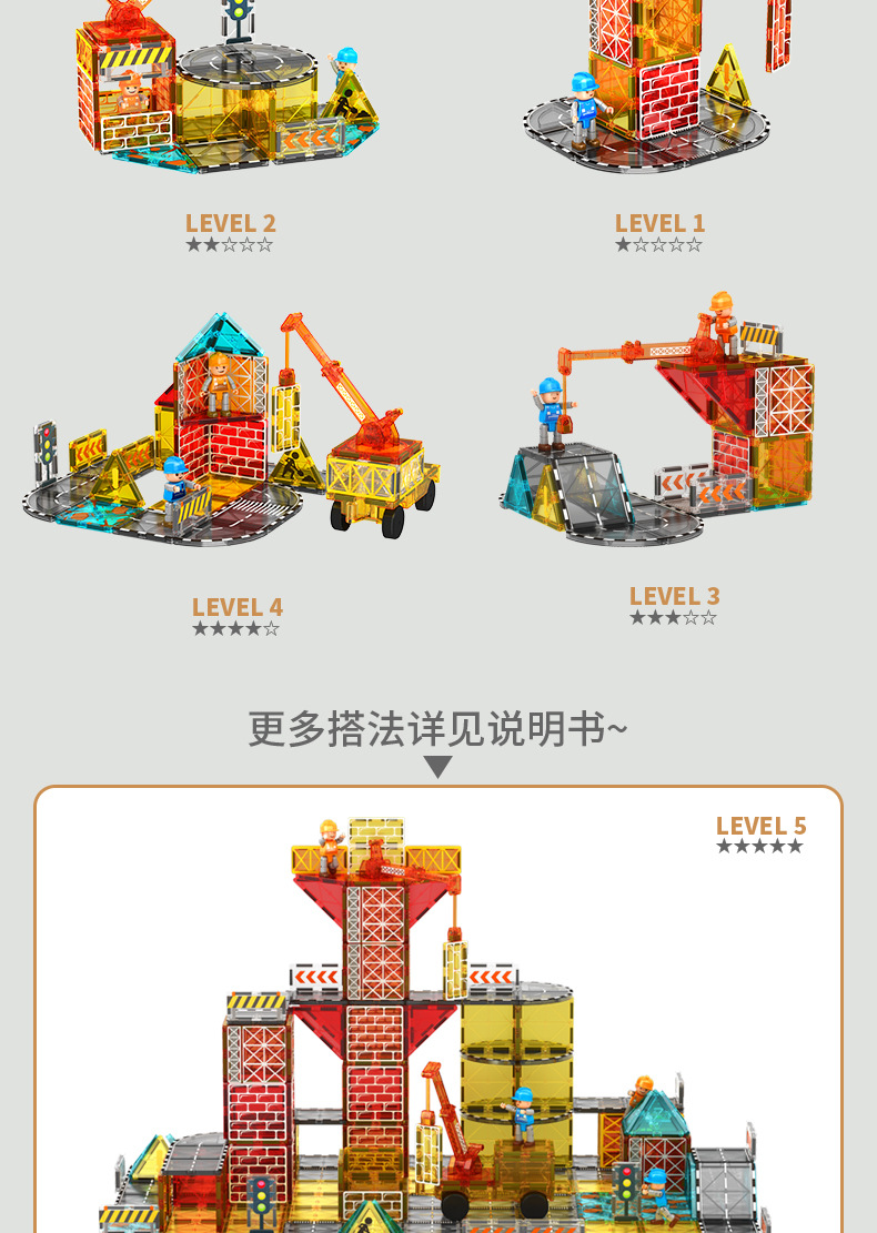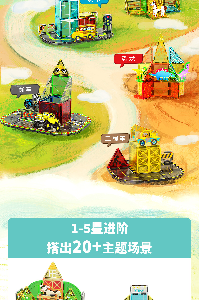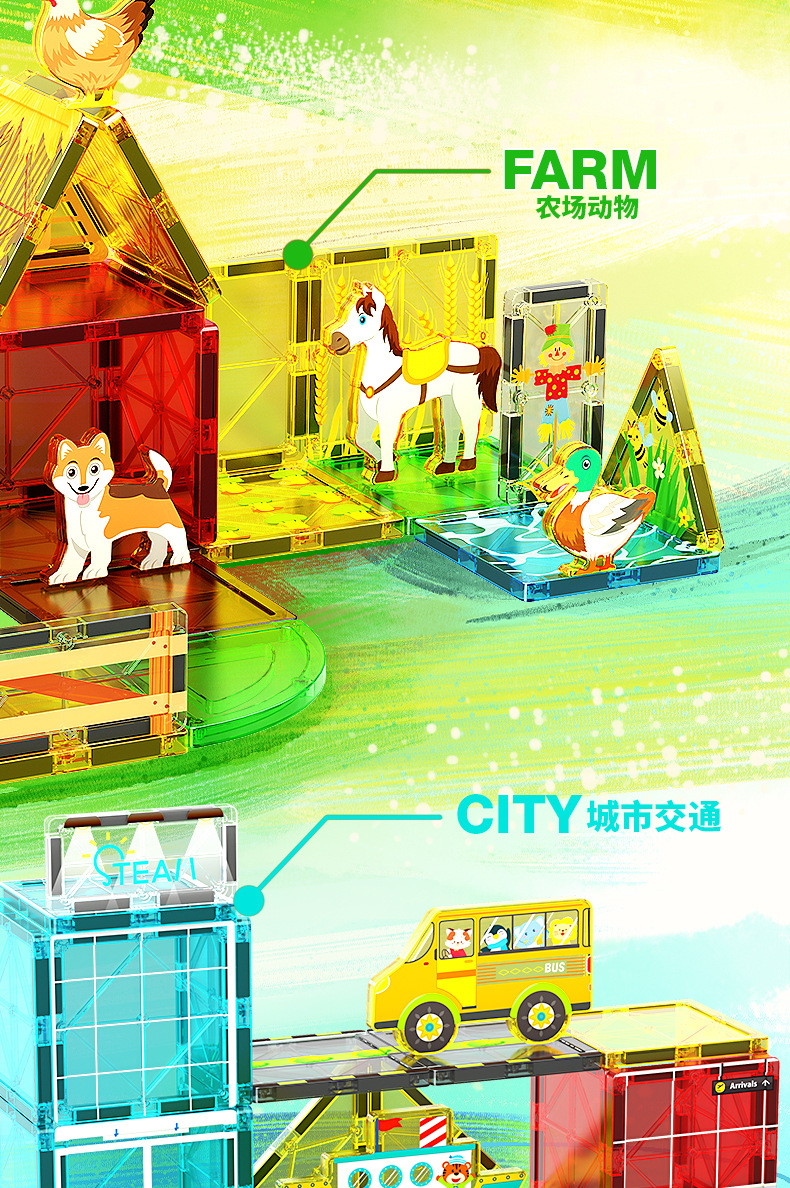 국경 간 컬러 창 자기 필름 도시 교통 건설 크레인 강한 자기 어린이 교육 조립 자기 건물 블록 장난감스토어 가기