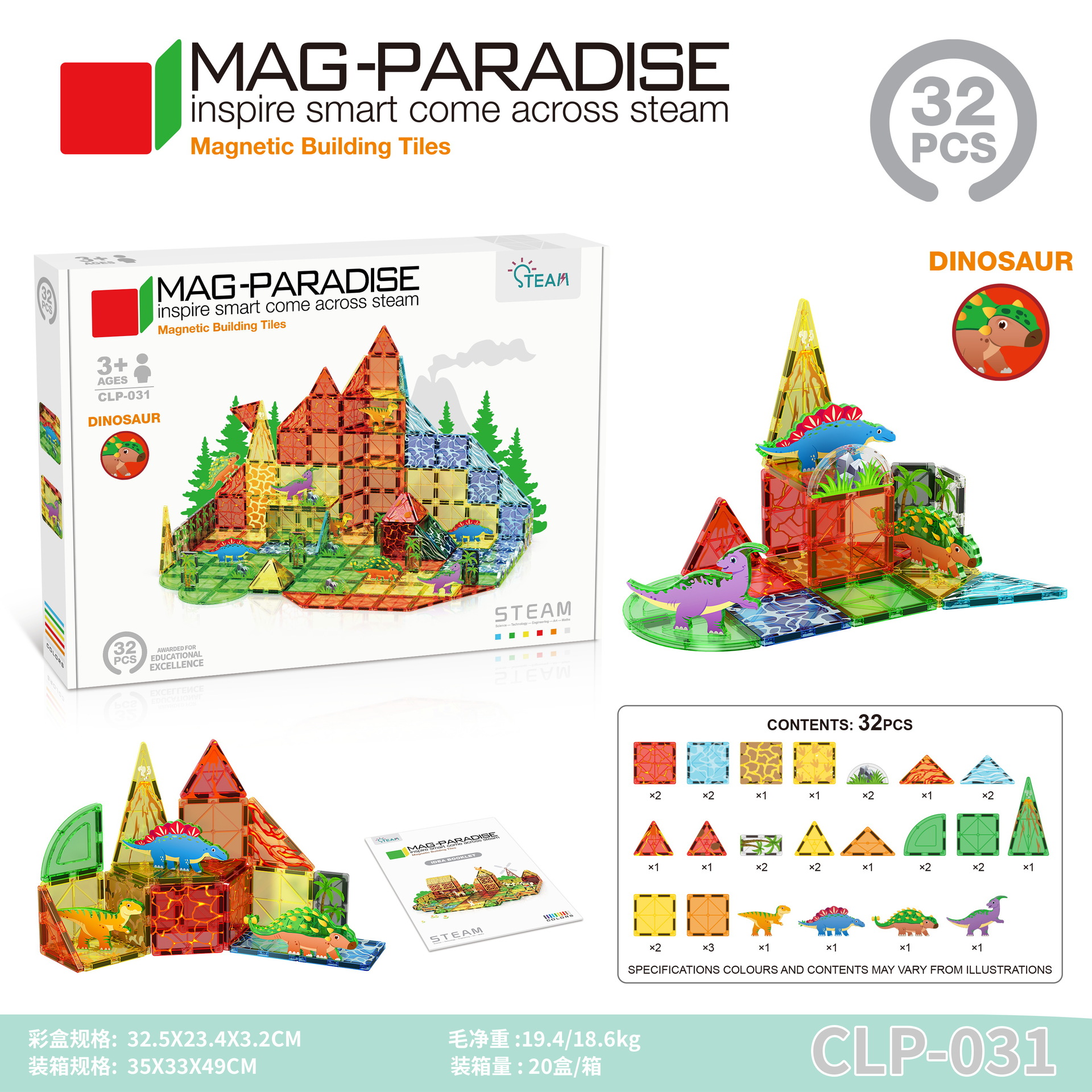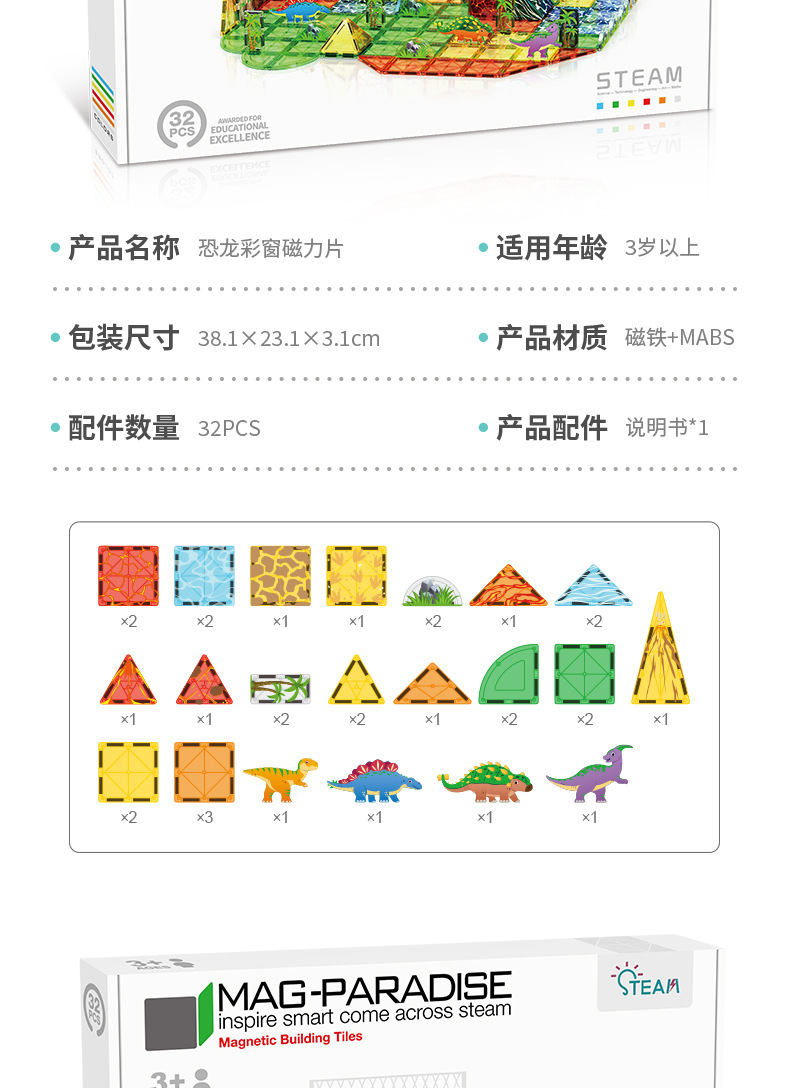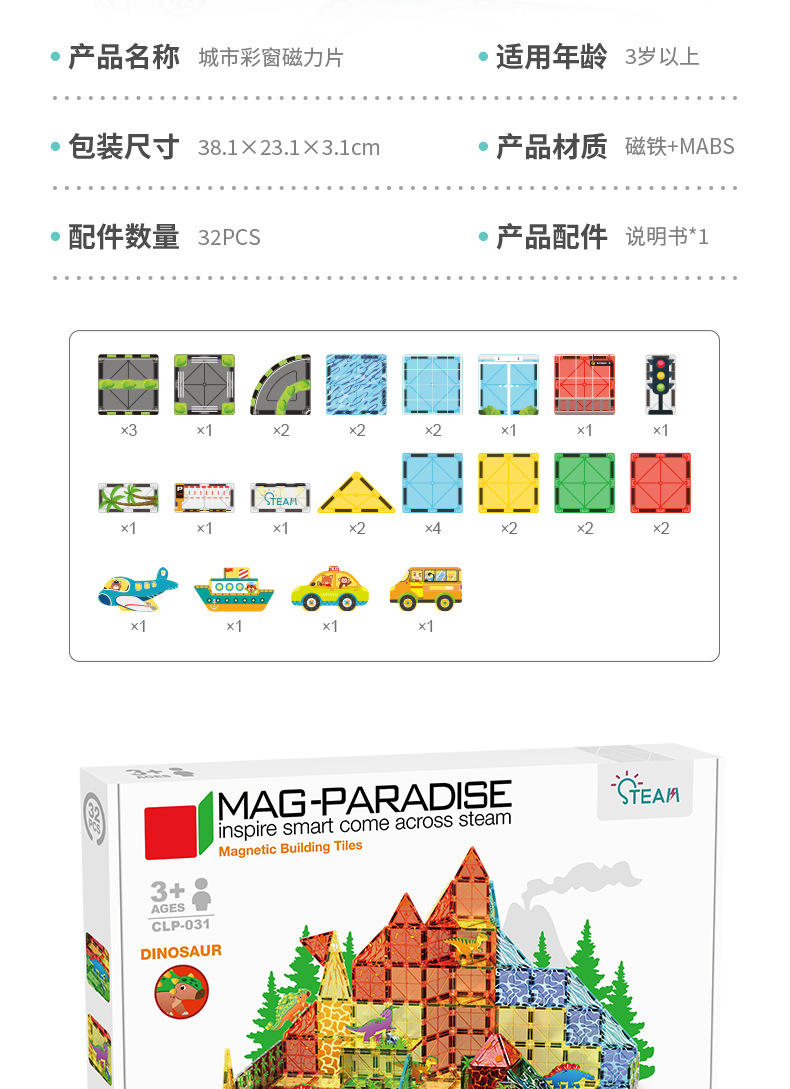 • 031 공룡 장면 자석 시트-32pcs [색상 상자]