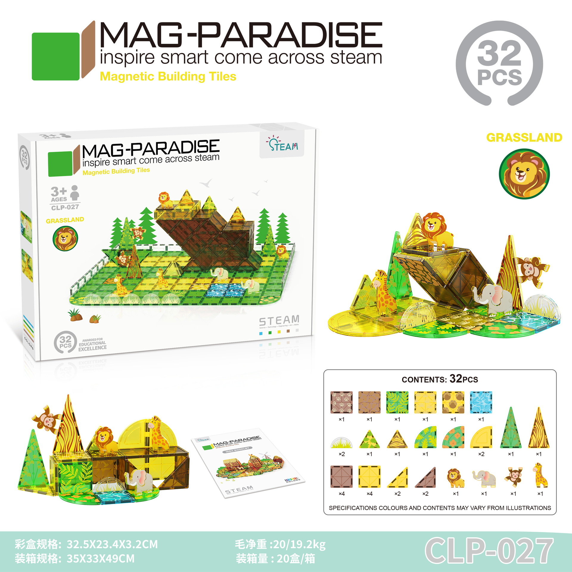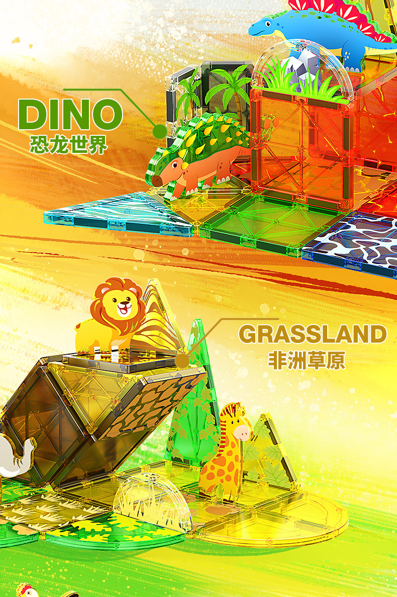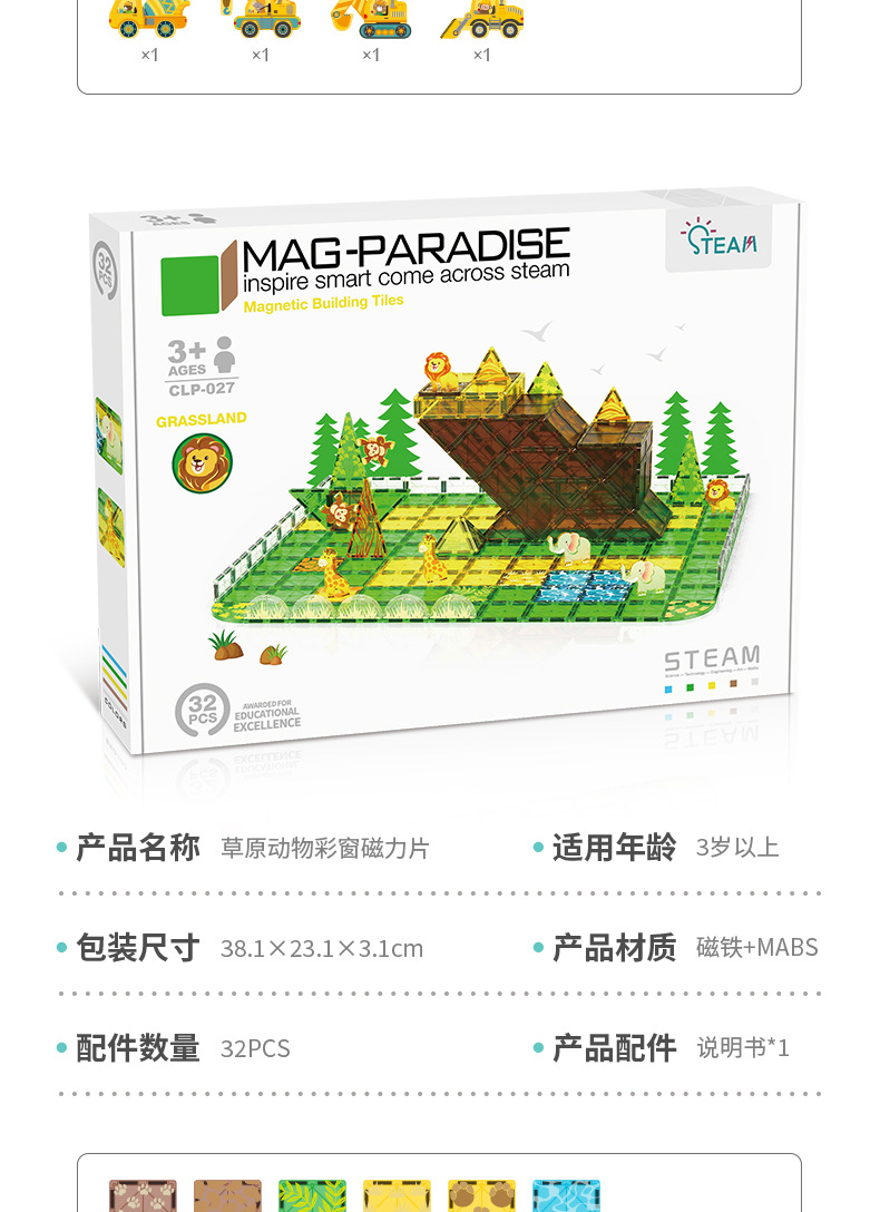 • 027 초원 동물 장면 자석 시트-32pcs [색상 상자]