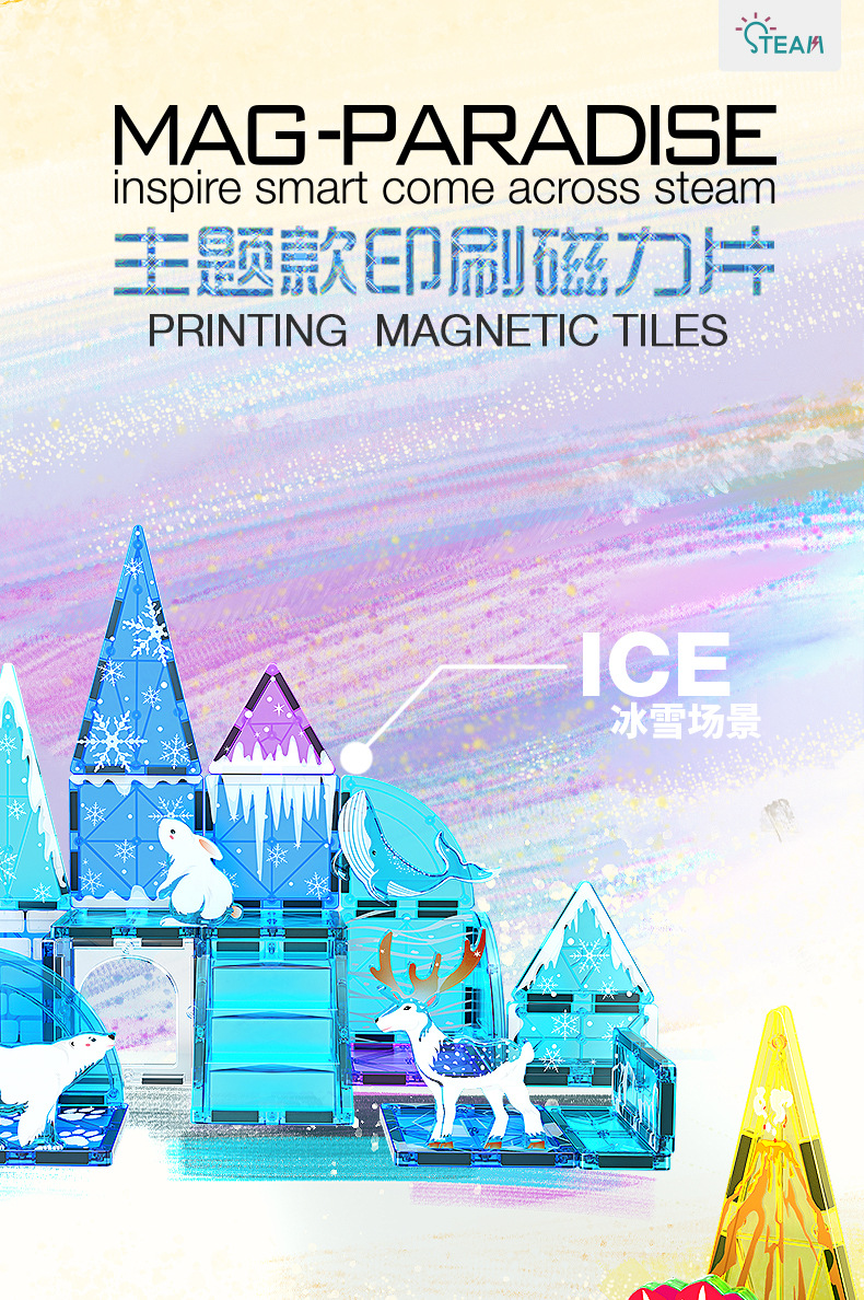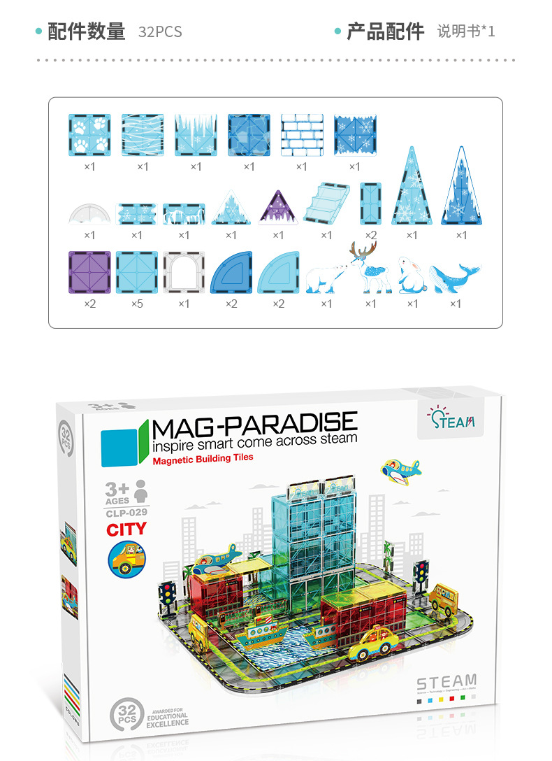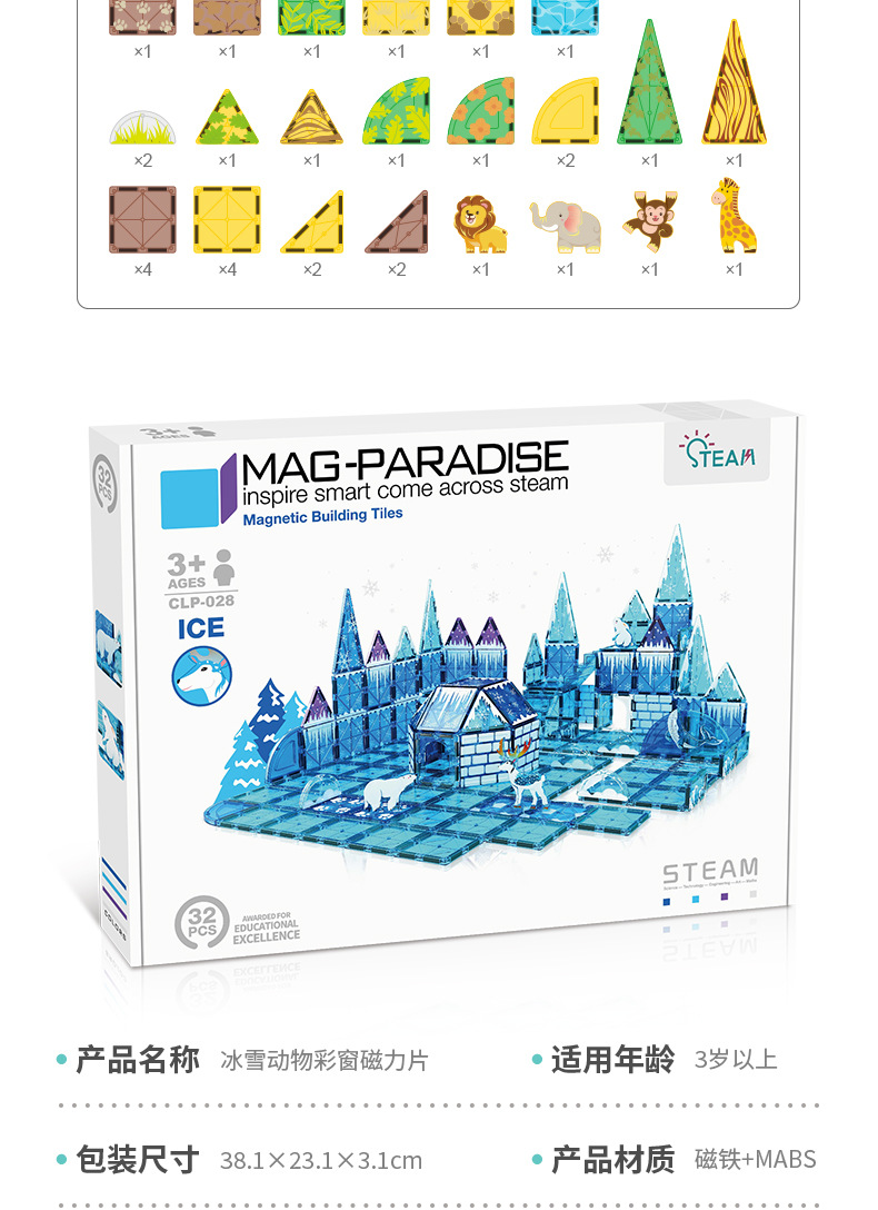 • 028 얼음과 눈 동물 장면 자석 시트 32pcs [색상 상자]