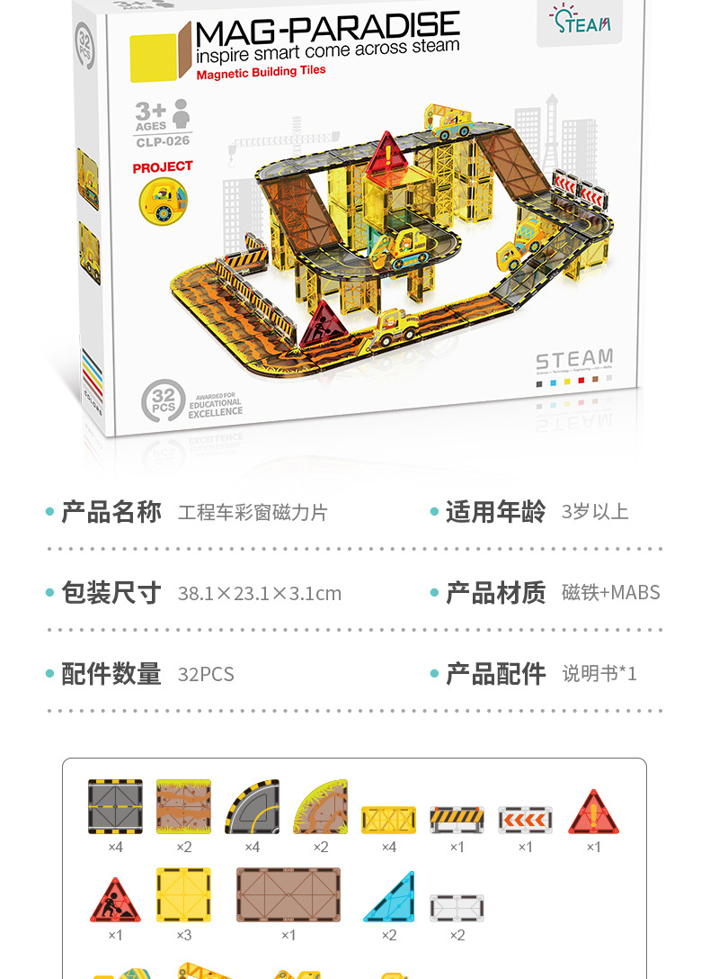 • 026 엔지니어링 차량 장면 자기 시트-32pcs [색상 상자]