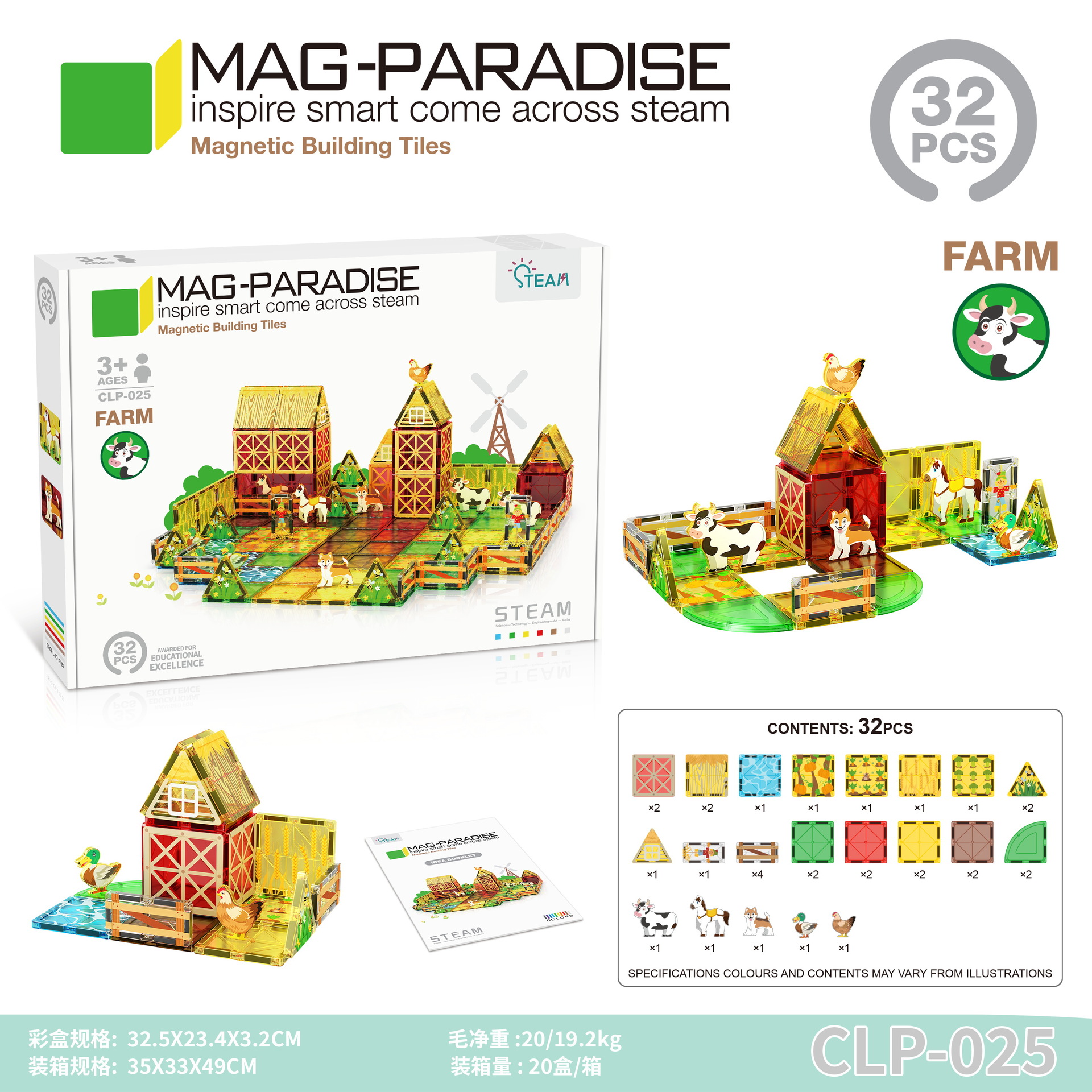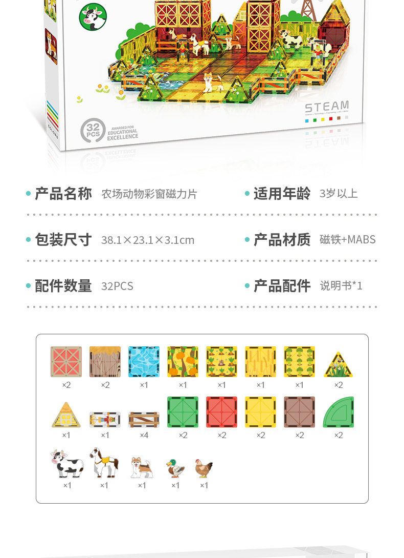 • 025 농장 동물 장면 자석 시트-32pcs [색상 상자]