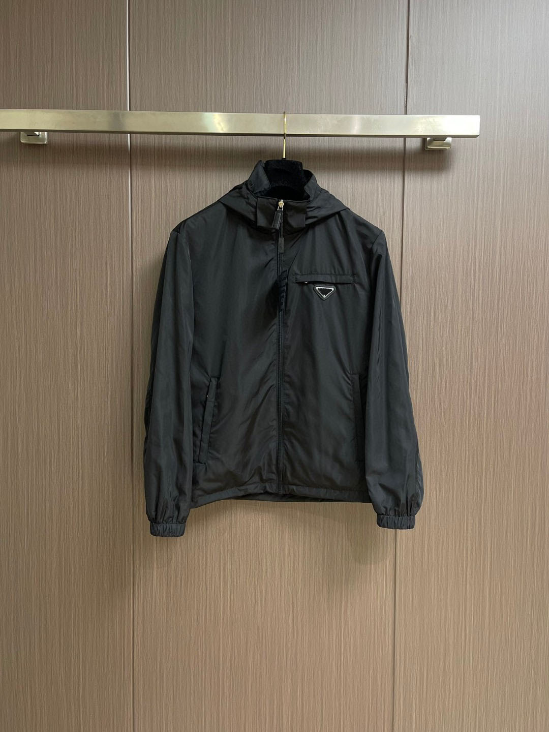2025 봄과 여름 남성 트라이앵글 라벨 후드 재킷 패션 캐주얼 경량 재킷 방풍 푸지아 탑 오리지널