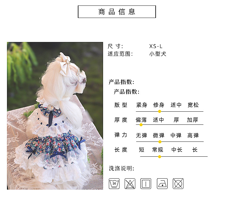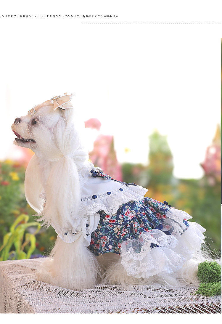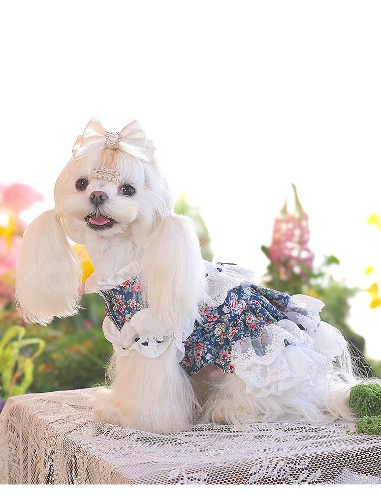 Ambernie 하이 엔드 애완 동물 옷 하이 엔드 개 꽃 테디 작은 개 티 파티 강아지 공주 원피스스토어 가기