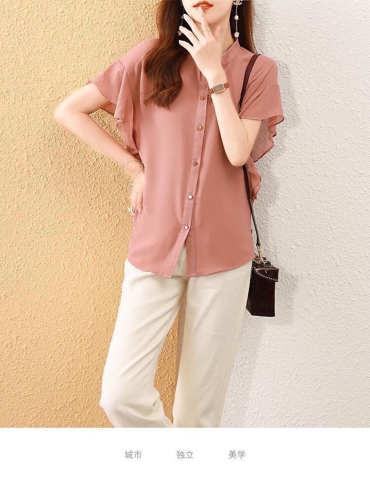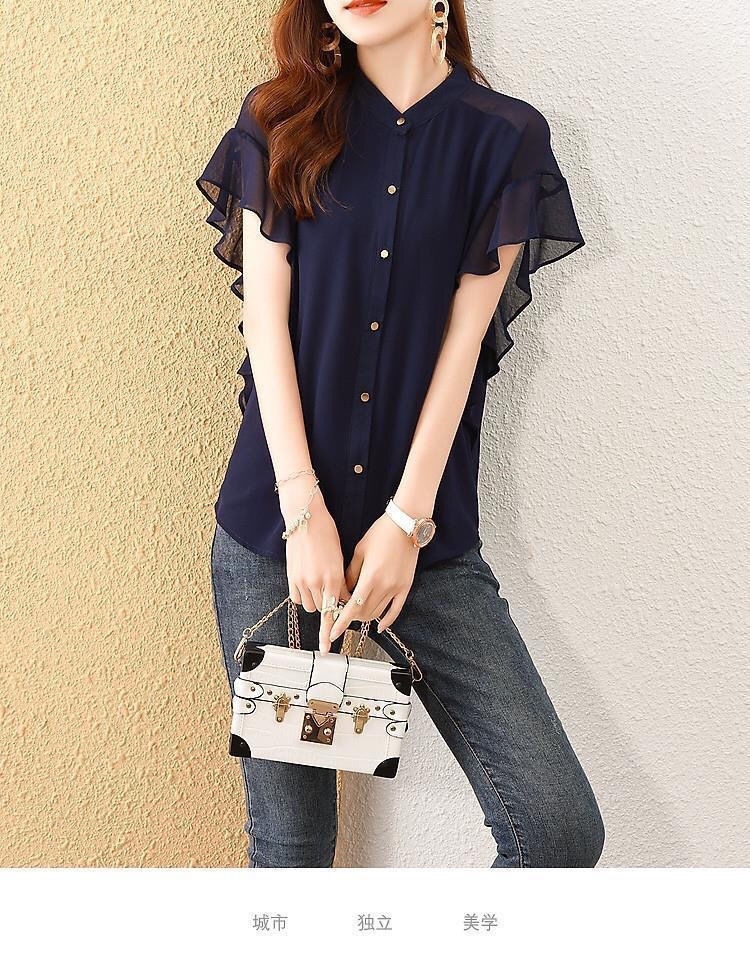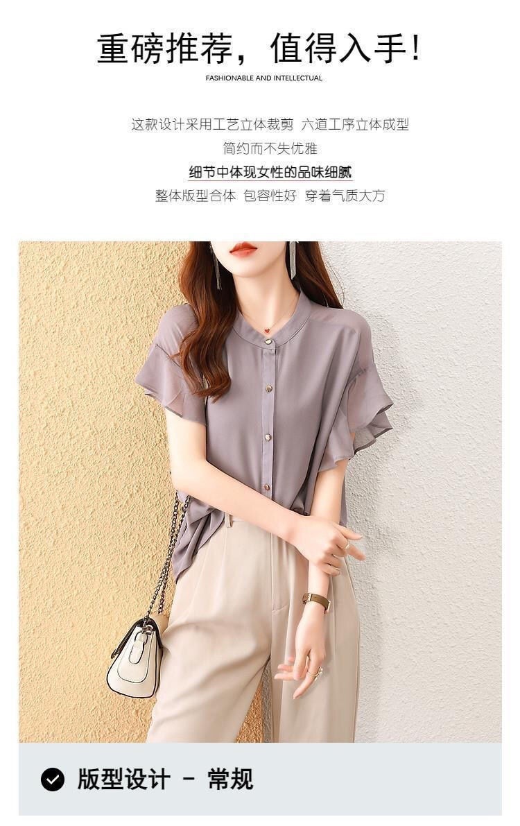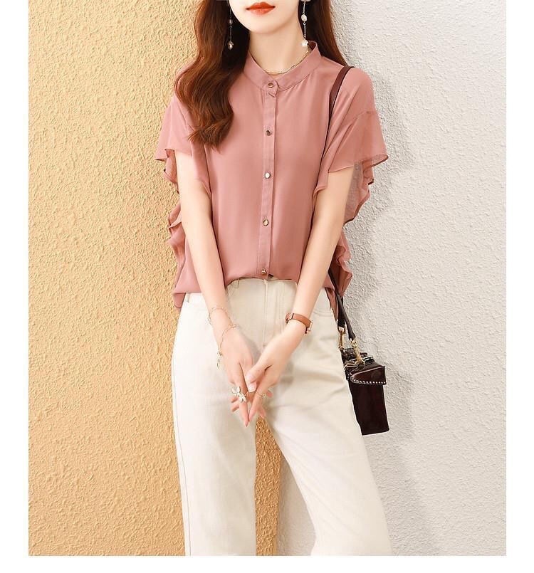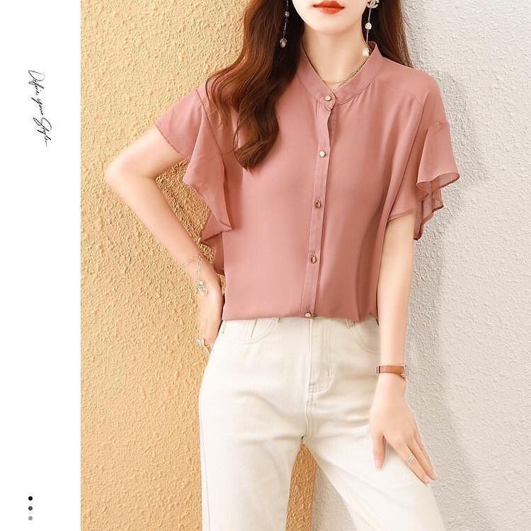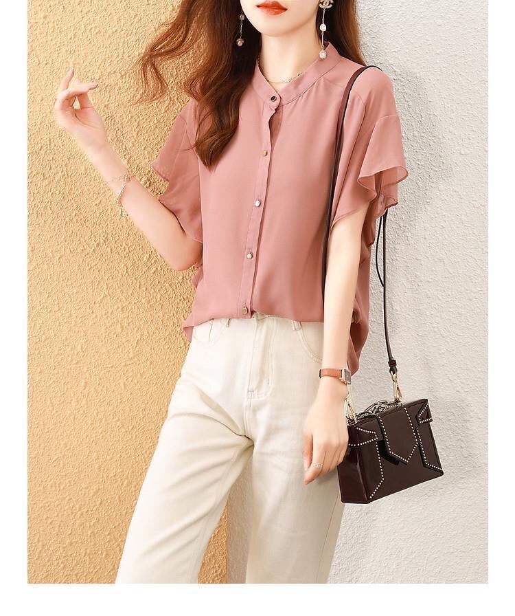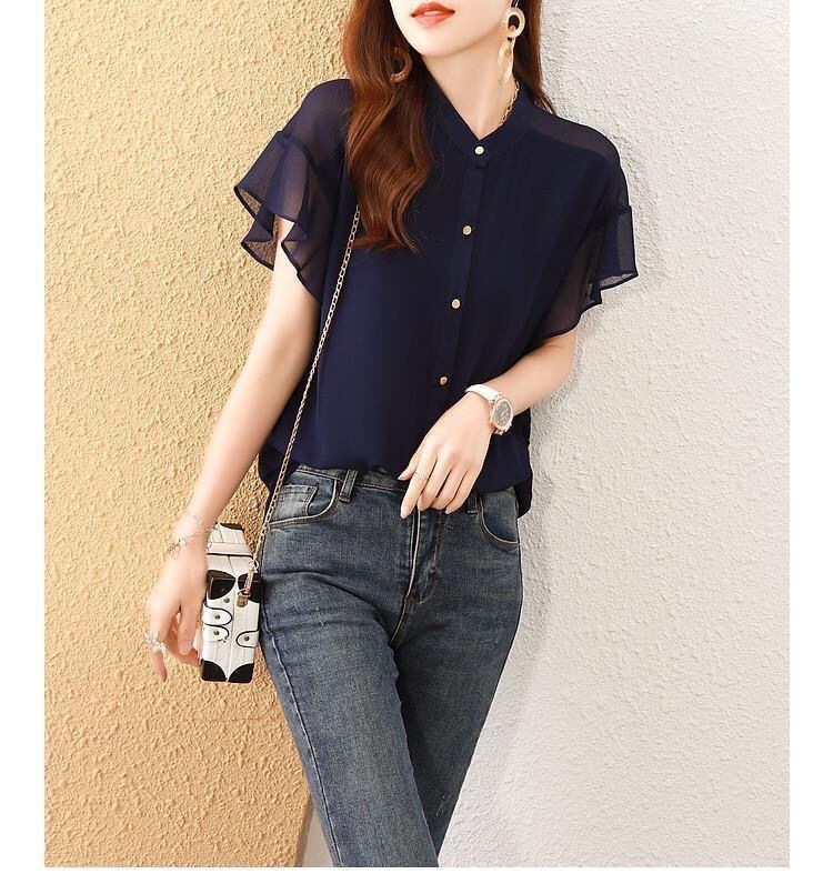2025년 신상 여름 스타일, 활용도 높은 쉬폰 셔츠, 플라잉 슬리브 솔리드 컬러 셔츠, 아름답고 루즈한 얇은 슬리밍 탑스토어 가기