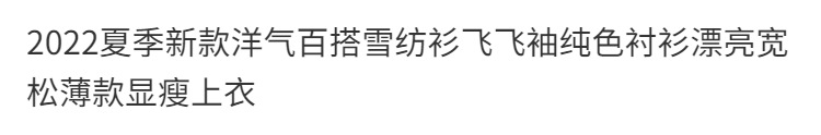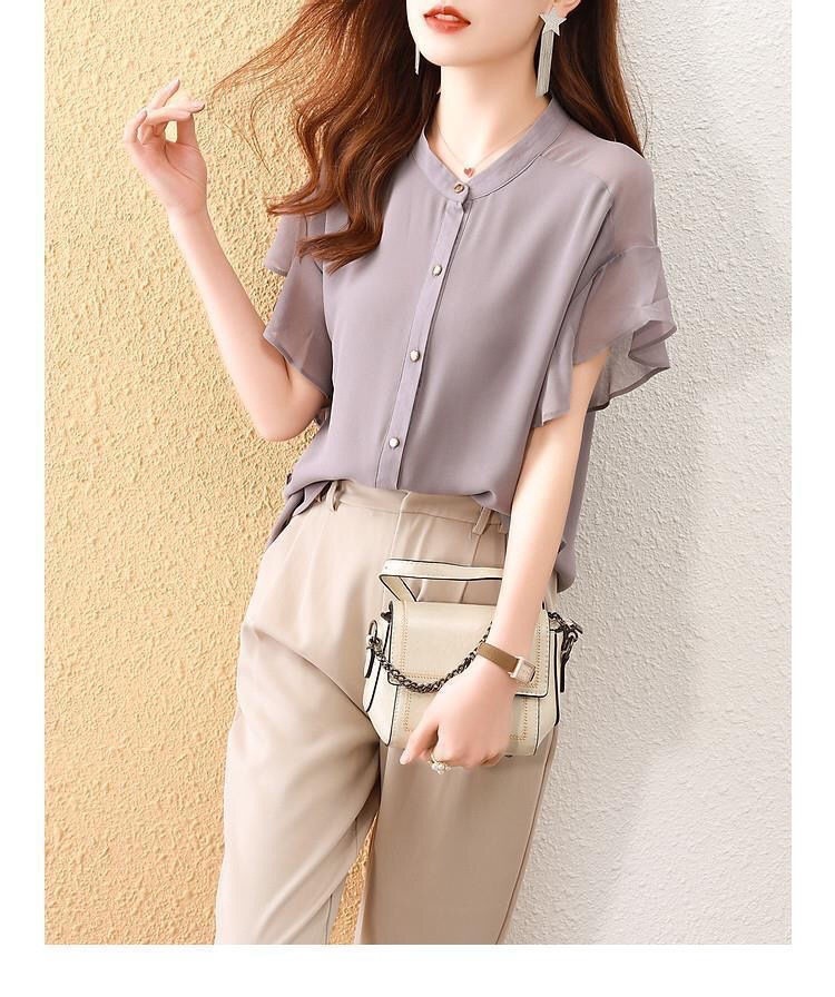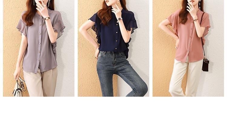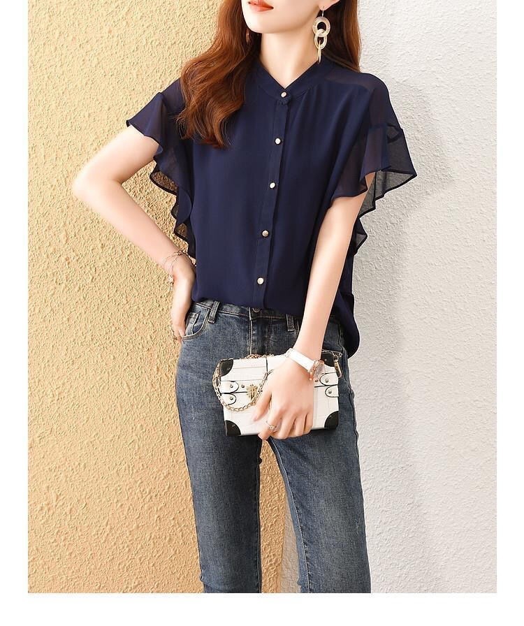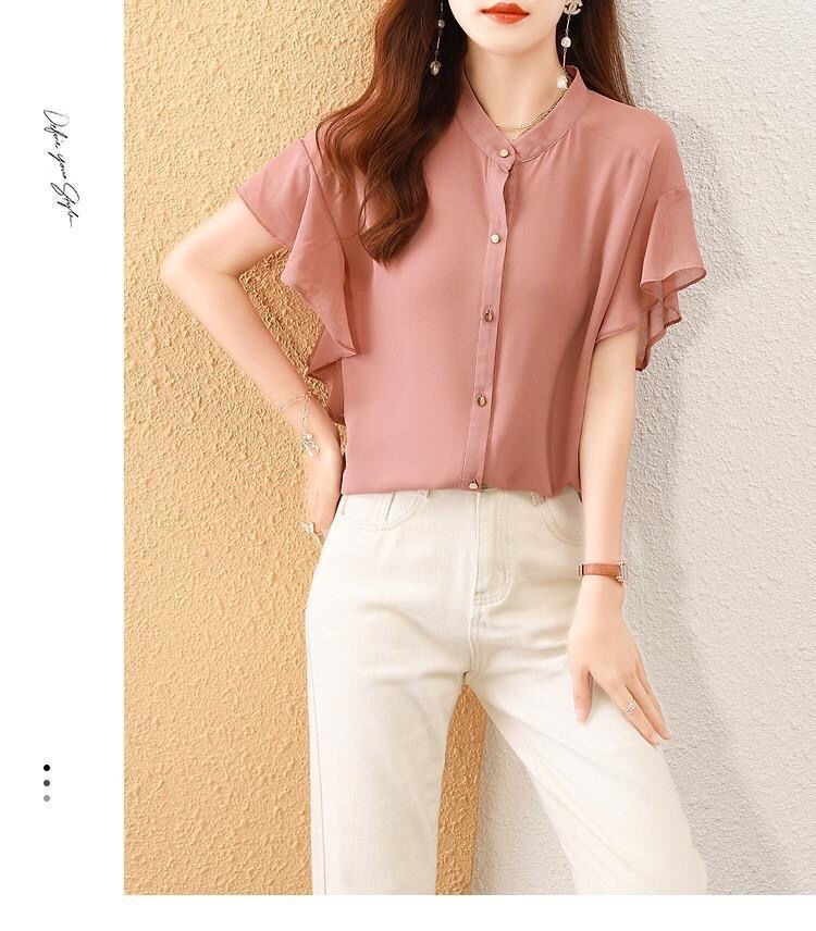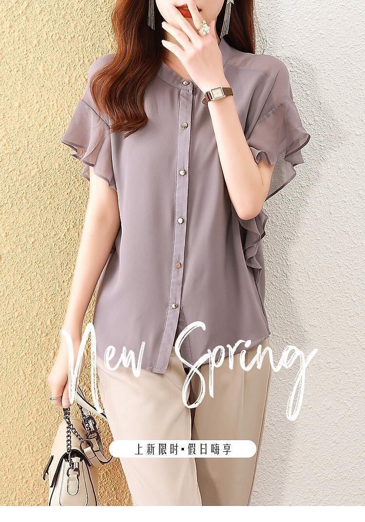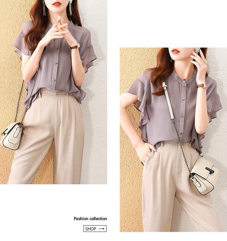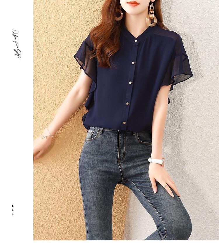 2025년 신상 여름 스타일, 활용도 높은 쉬폰 셔츠, 플라잉 슬리브 솔리드 컬러 셔츠, 아름답고 루즈한 얇은 슬리밍 탑스토어 가기