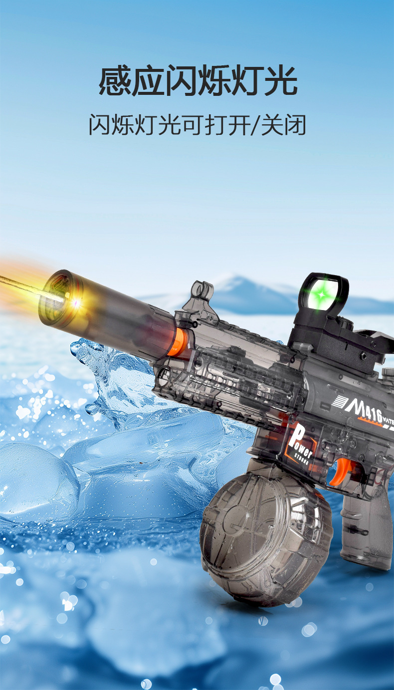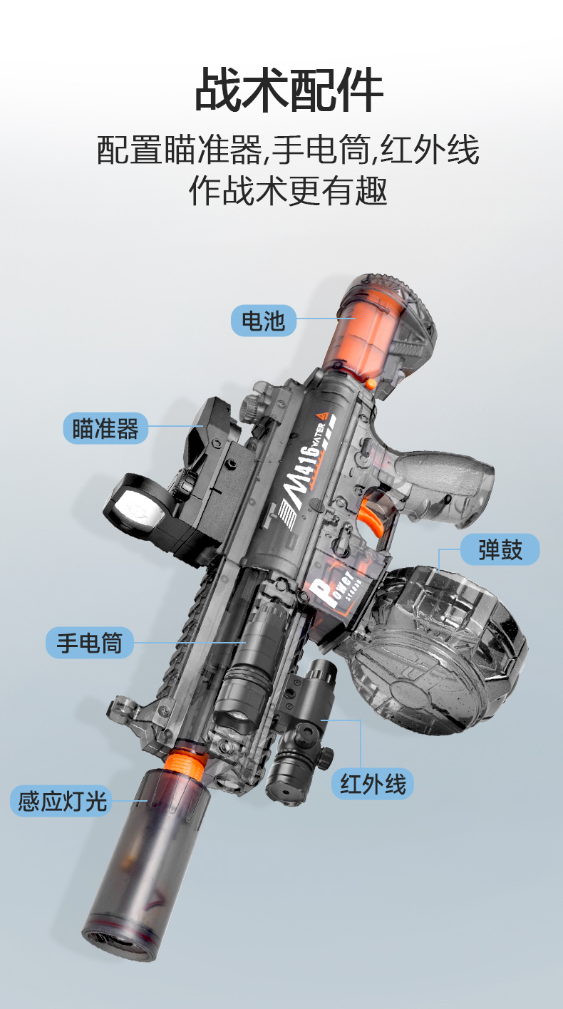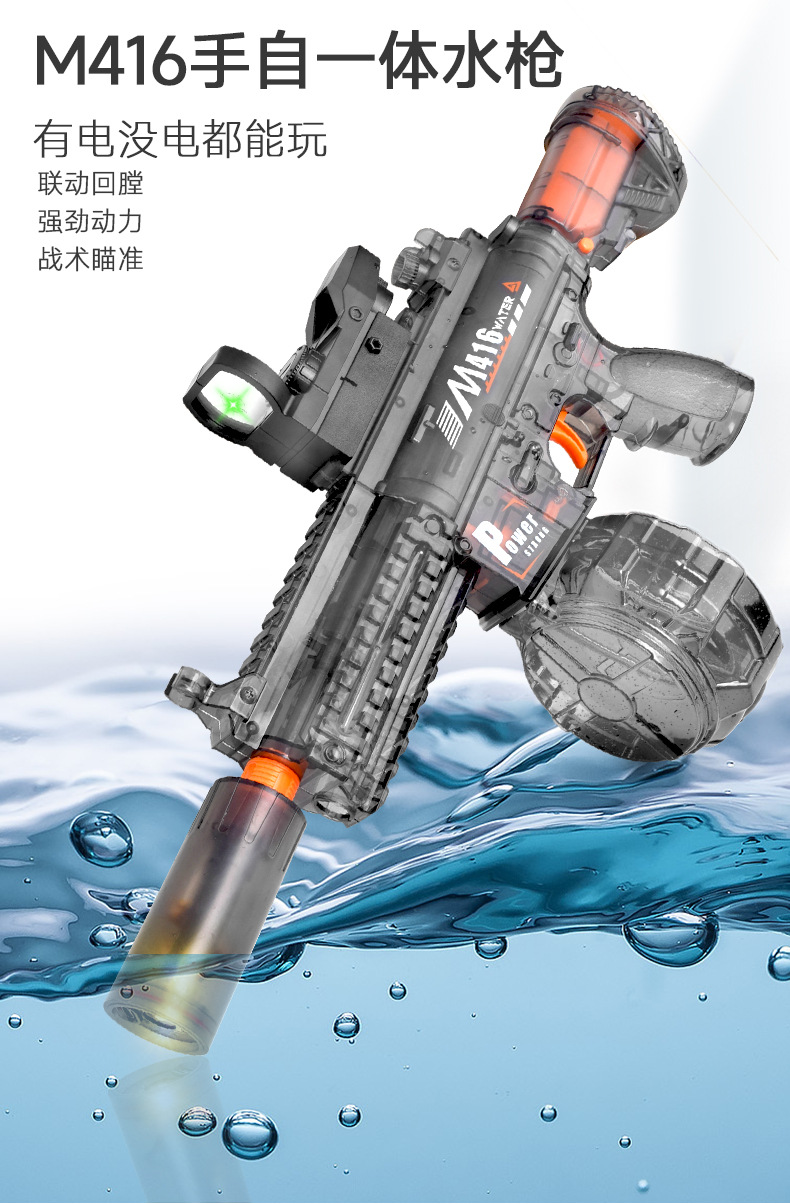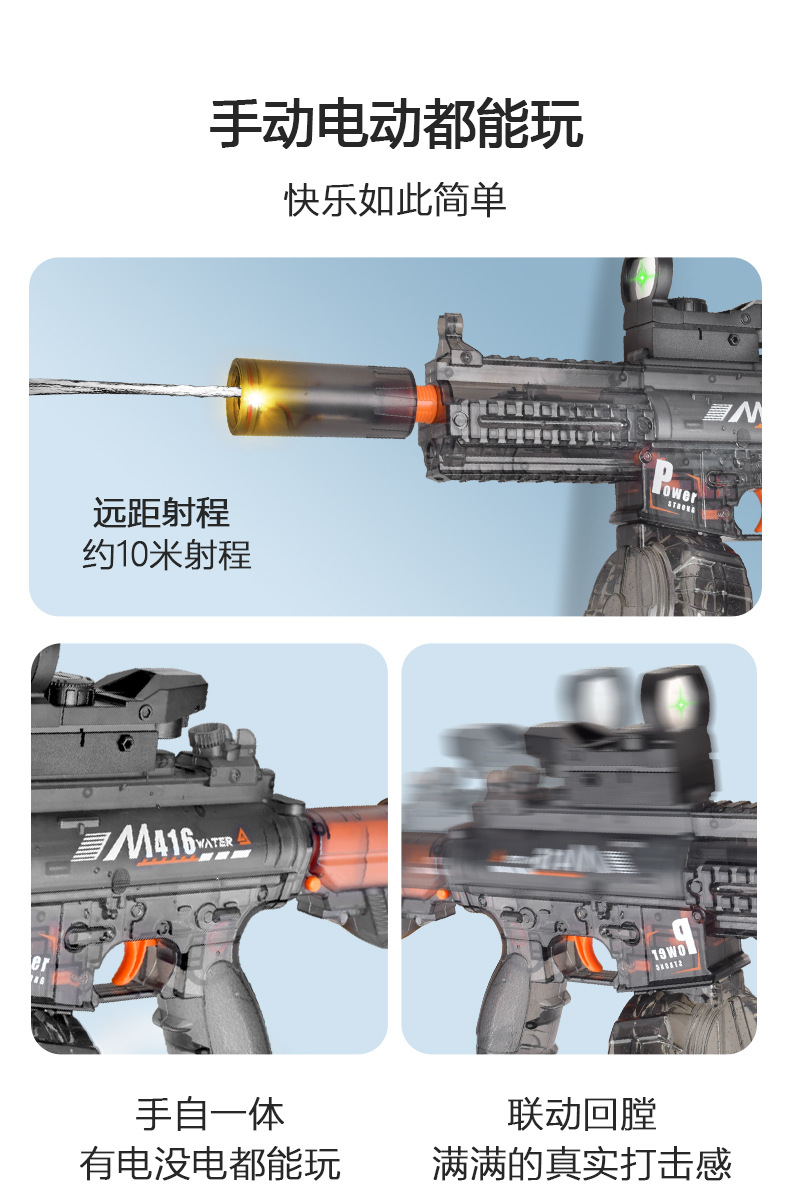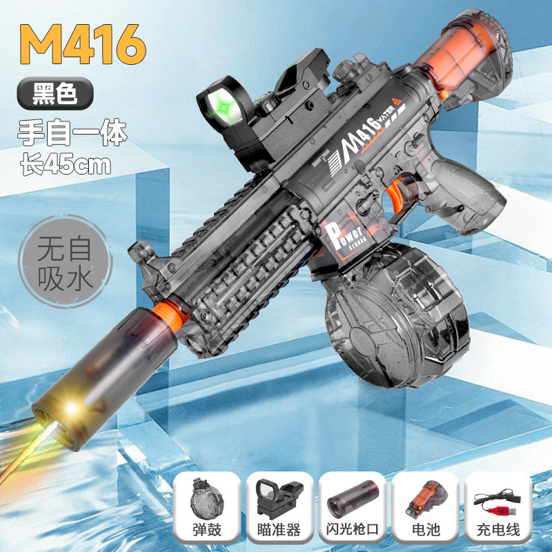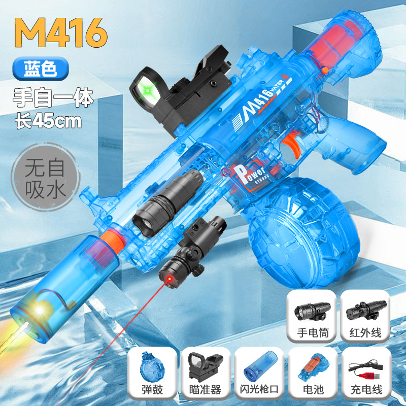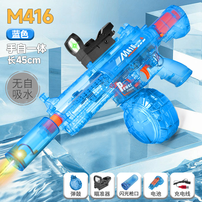 국경 간 새로운 M416 핸드-인-원 전기 연속 플래시 워터 건 장난감 대용량 연계 로딩 보이스토어 가기
