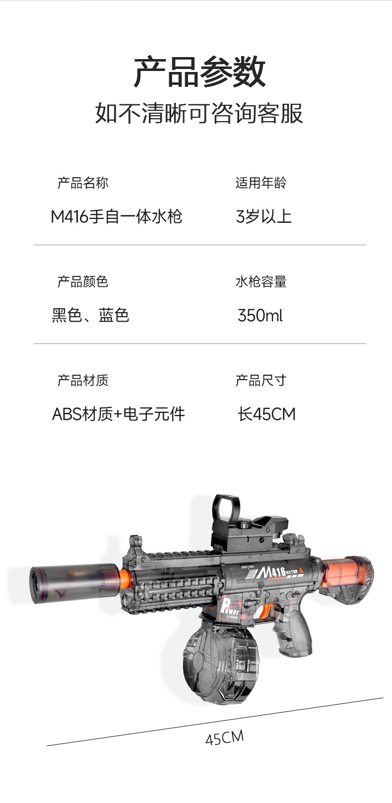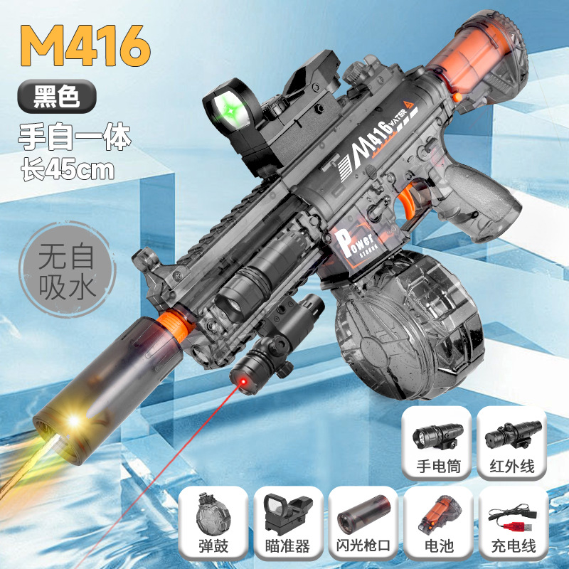 국경 간 새로운 M416 핸드-인-원 전기 연속 플래시 워터 건 장난감 대용량 연계 로딩 보이
