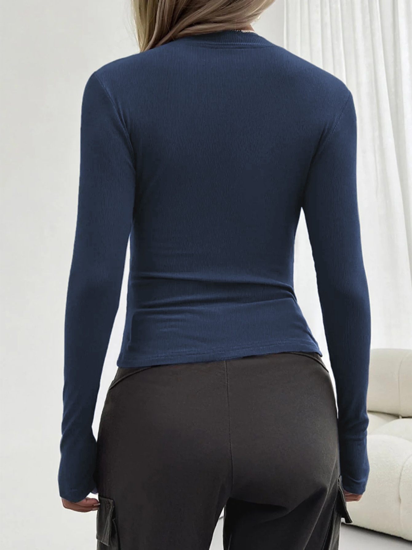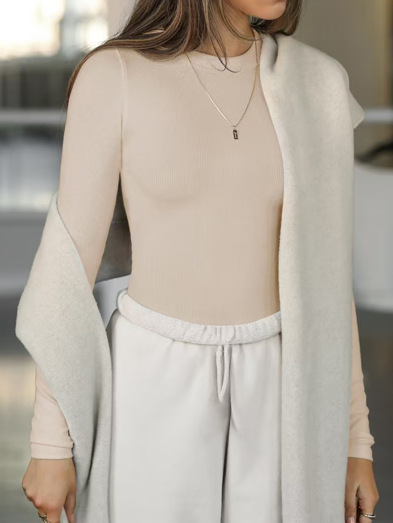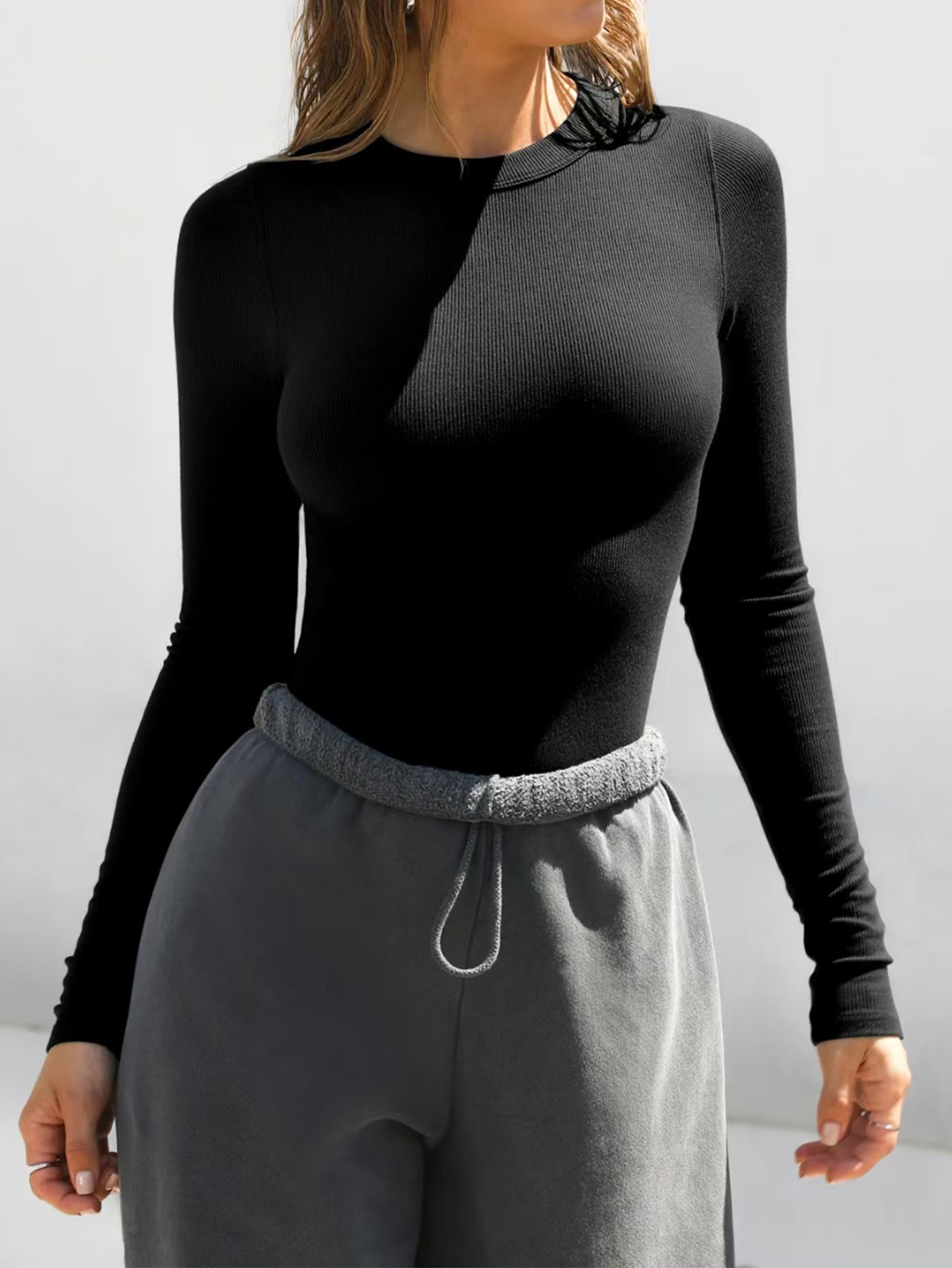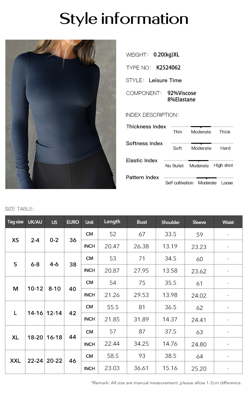Diyun 2025 봄/여름 국경 아마존 유럽과 미국 Y2K 니트 단색 슬림 핏 크루 넥 긴 소매 탑 티셔츠 여성용스토어 가기
