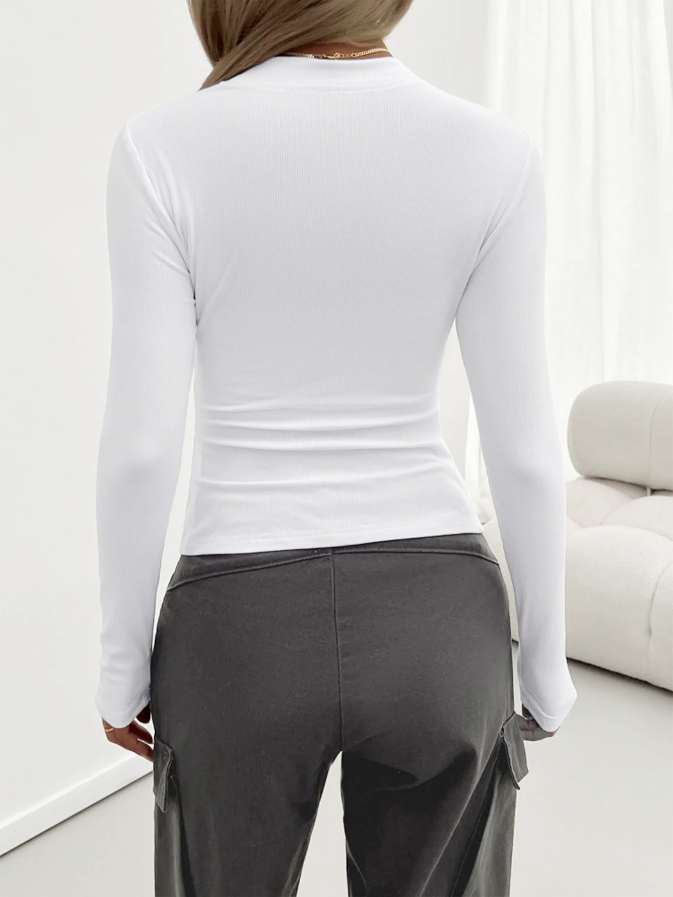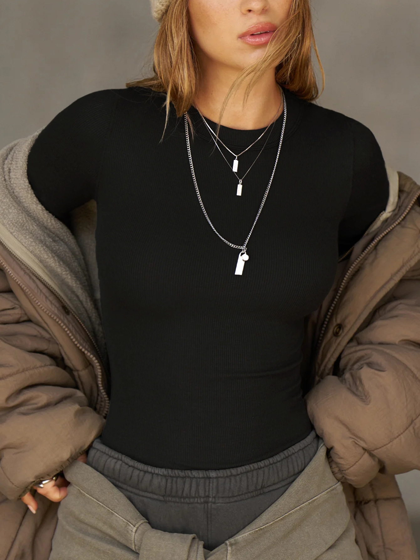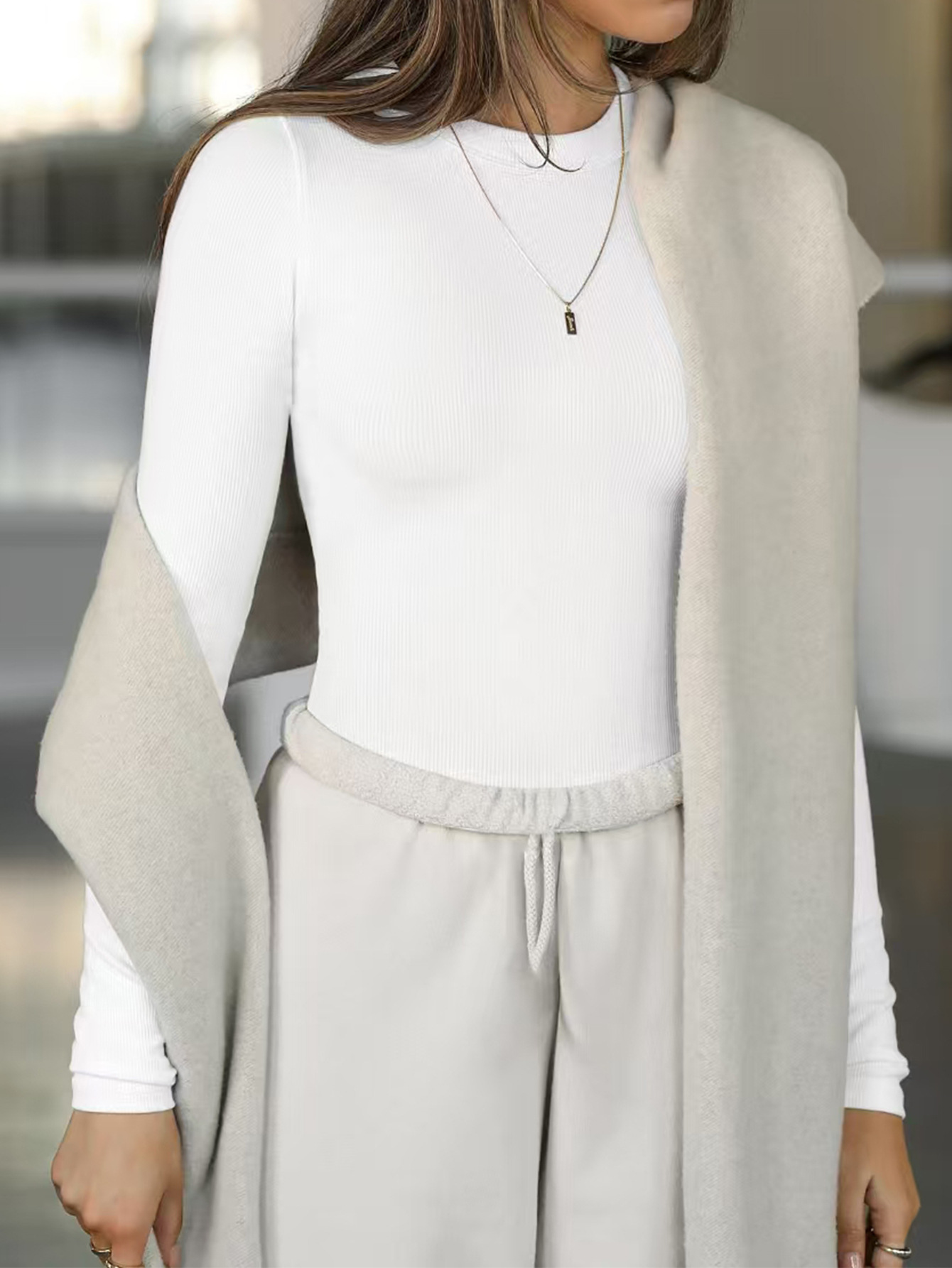 Diyun 2025 봄/여름 국경 아마존 유럽과 미국 Y2K 니트 단색 슬림 핏 크루 넥 긴 소매 탑 티셔츠 여성용스토어 가기