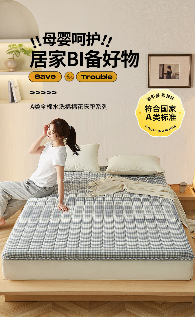 A类母婴级100全棉棉花床垫软垫家用床褥垫褥子宿舍学生单人棉絮垫被铺底榻榻米床垫卧室租房子打地铺神器