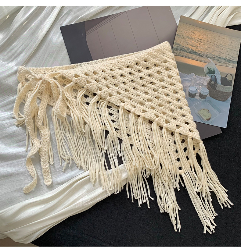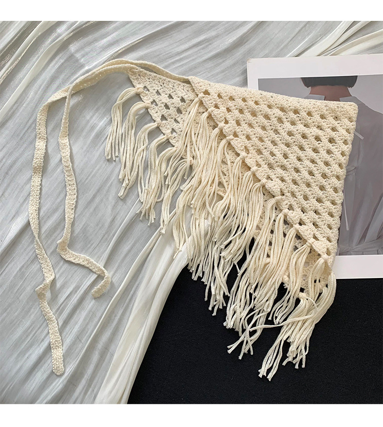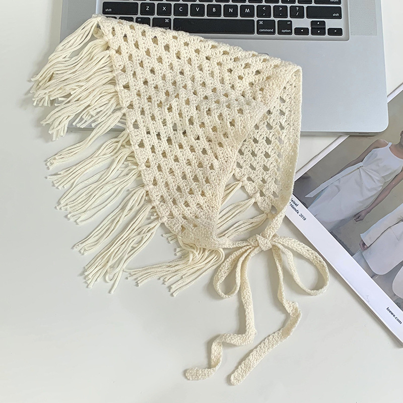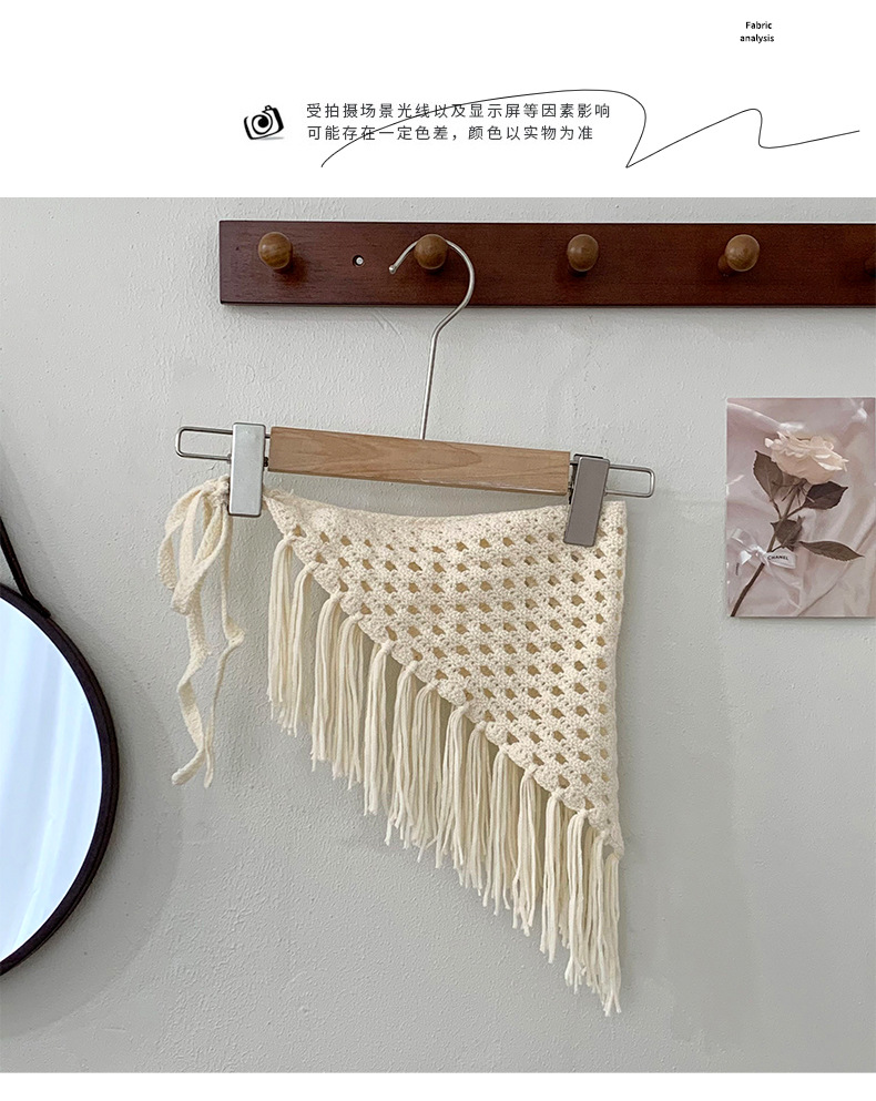 짠 터번 여름 여성의 목가적 인 봄과 여름 넥타이, 중공 삼각형 스카프 허리 일치하는 앞치마 술 방귀 커튼