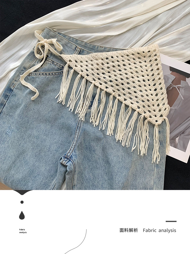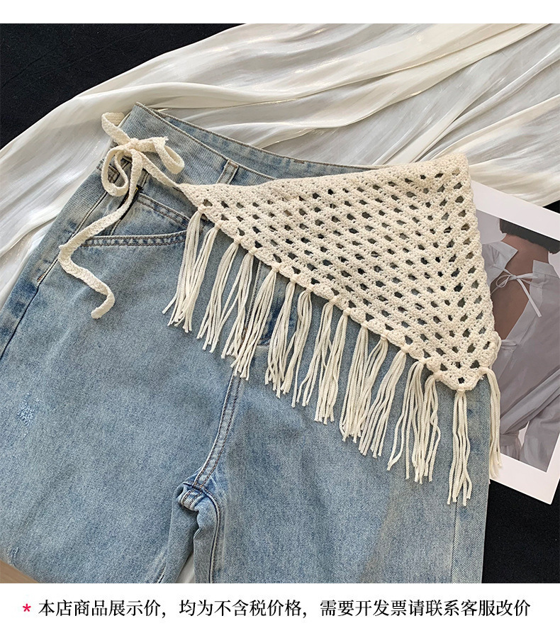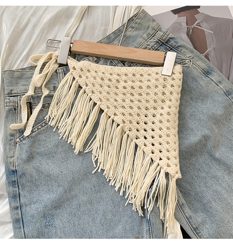 짠 터번 여름 여성의 목가적 인 봄과 여름 넥타이, 중공 삼각형 스카프 허리 일치하는 앞치마 술 방귀 커튼스토어 가기