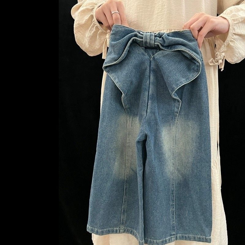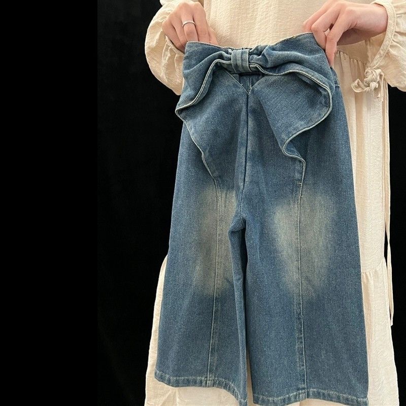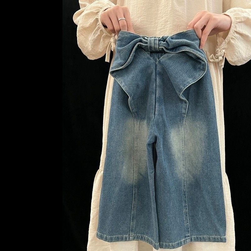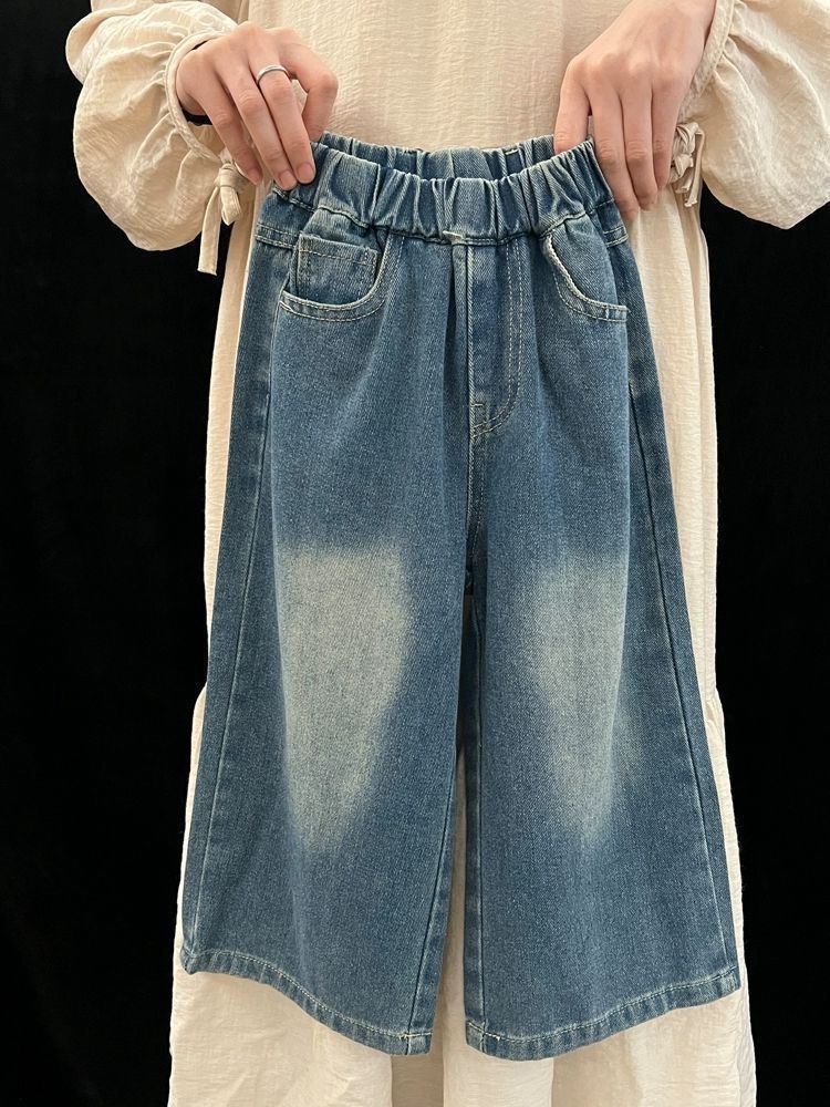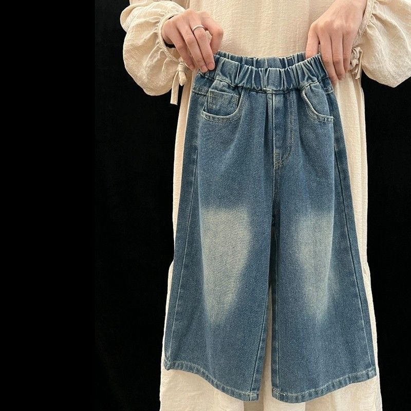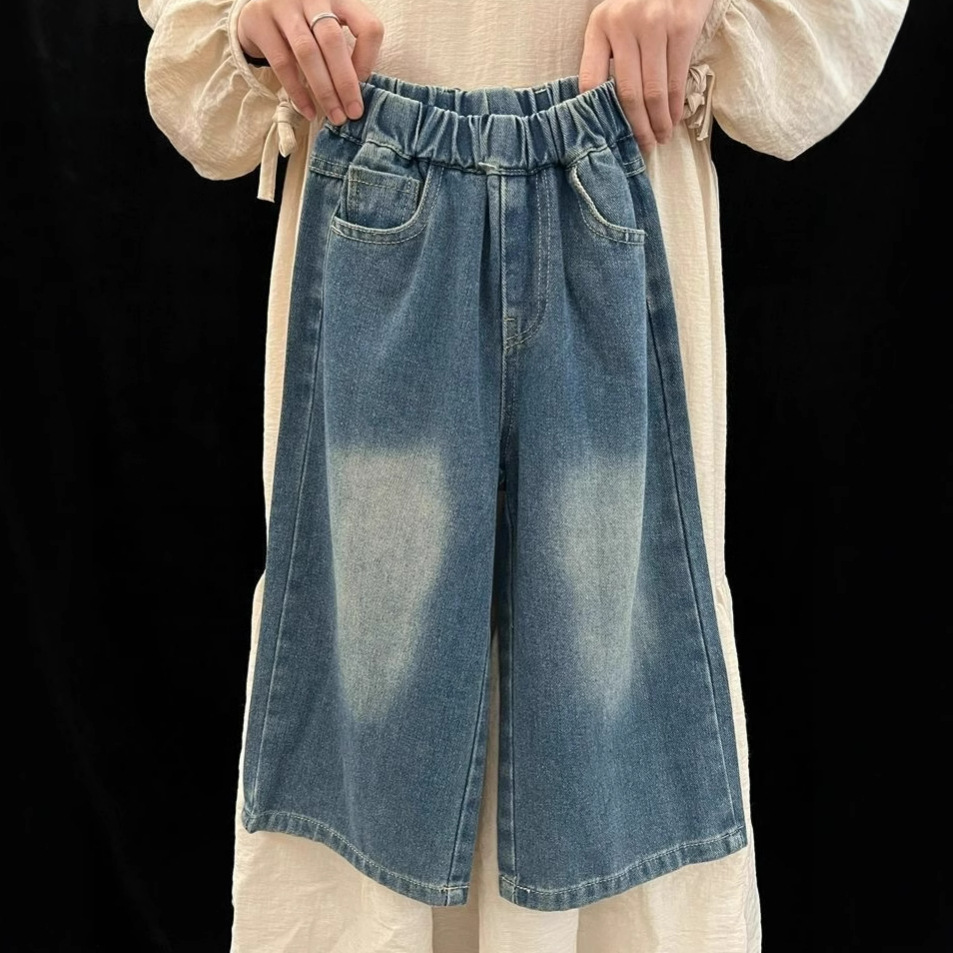 소녀 봄 청바지 2025 새로운 한국식 어린이 패션 디자인 활 스트레이트 와이드 레그 바지스토어 가기