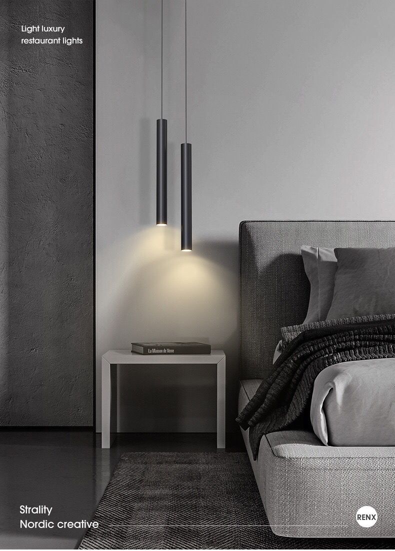 침실 인터넷 연예인 머리맡 LED 샹들리에 현대 간단한 긴 라인 미니멀리스트 거실 배경 벽 리프팅 레스토랑 작은 샹들리에스토어 가기
