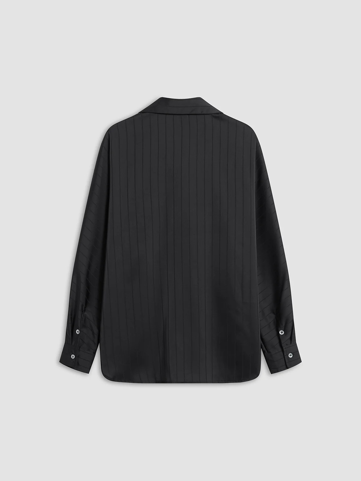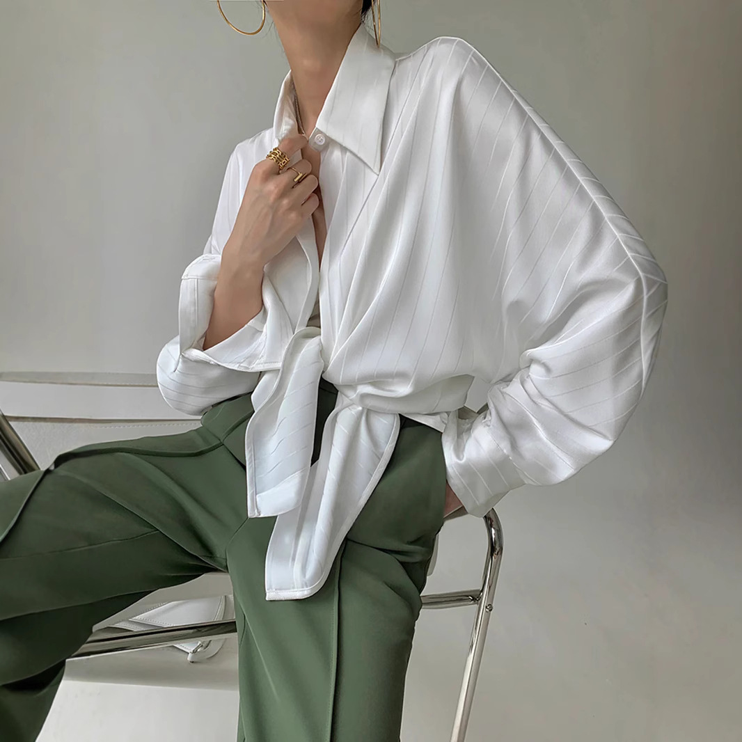 유럽과 미국의 2025 새로운 하이 엔드 센스 스트라이프 새틴 셔츠 디자인 센스 니쉬 패셔너블 웨스턴 스타일 탑 롱 슬리브 아우터웨어