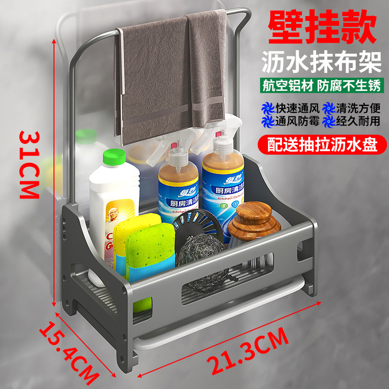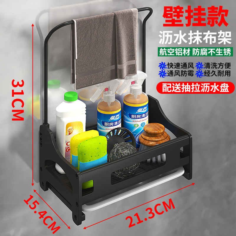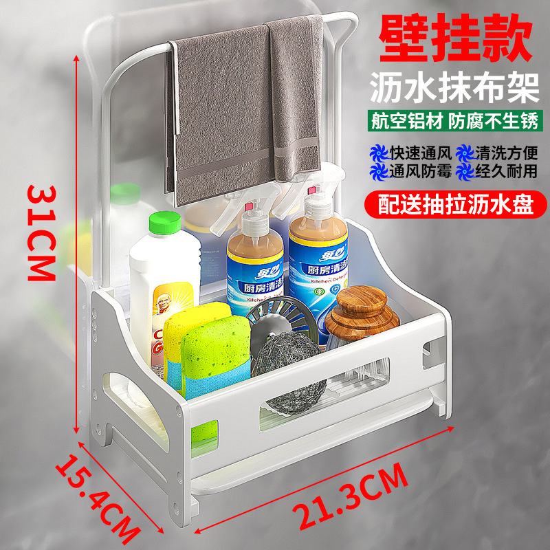 주방걸레걸이, 싱크대, 설거지용 천, 스펀지, 배수구, 싱크대 펀치프리 수건수납, 벽걸이형 수납선반
