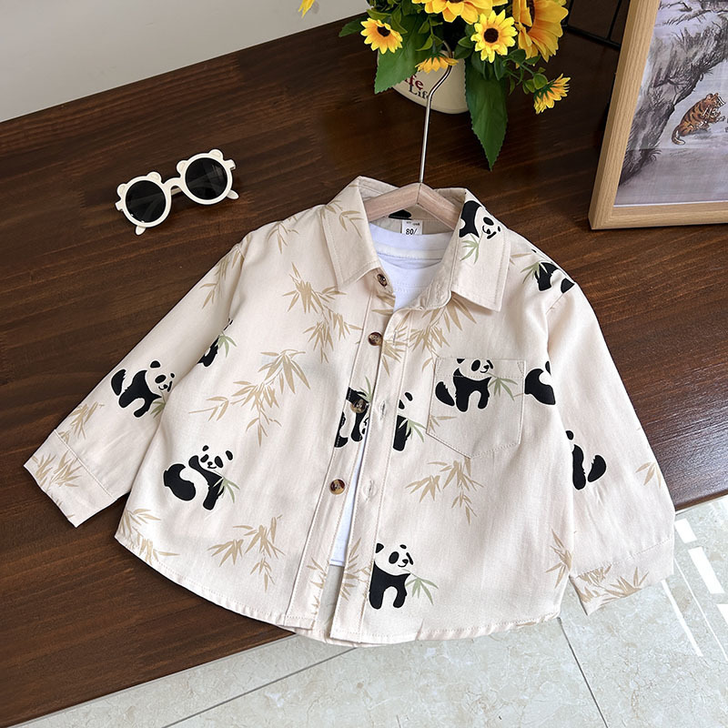 소년 봄, 가을 캐주얼 스타일 긴팔 셔츠 아기 느슨한 가을 한국 스타일 셔츠 팬더 유행 스타일