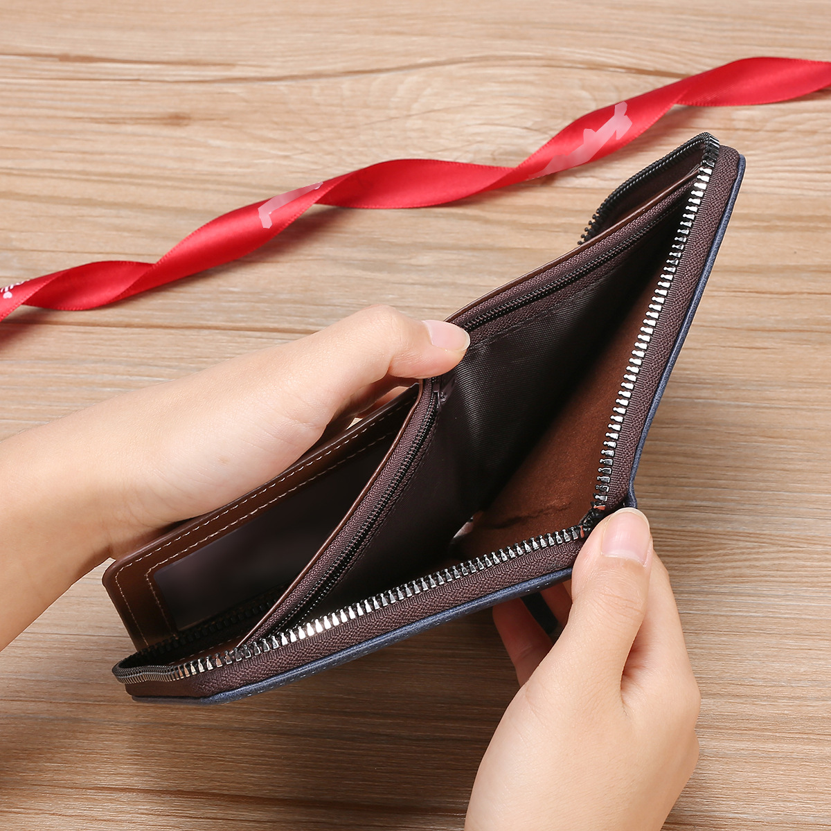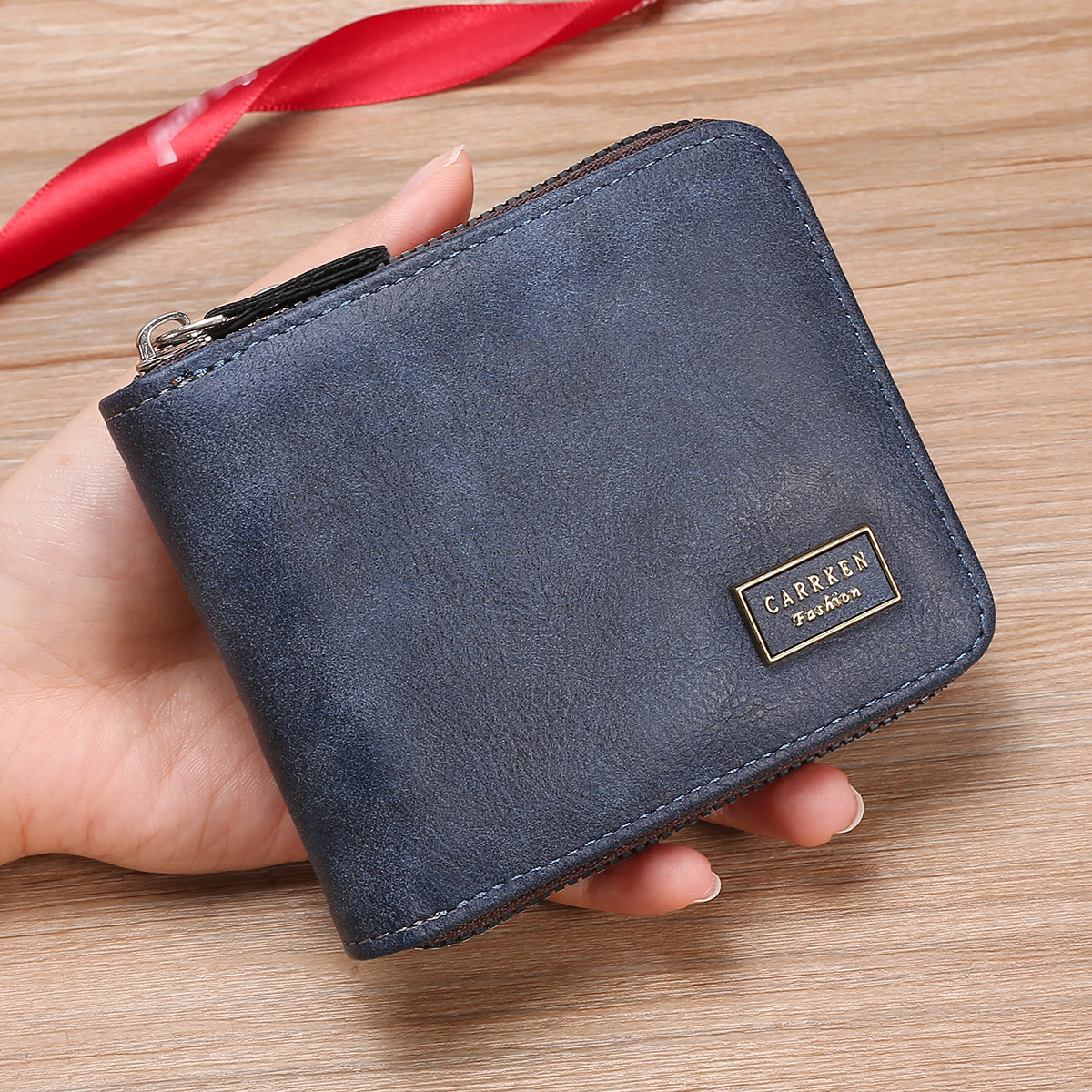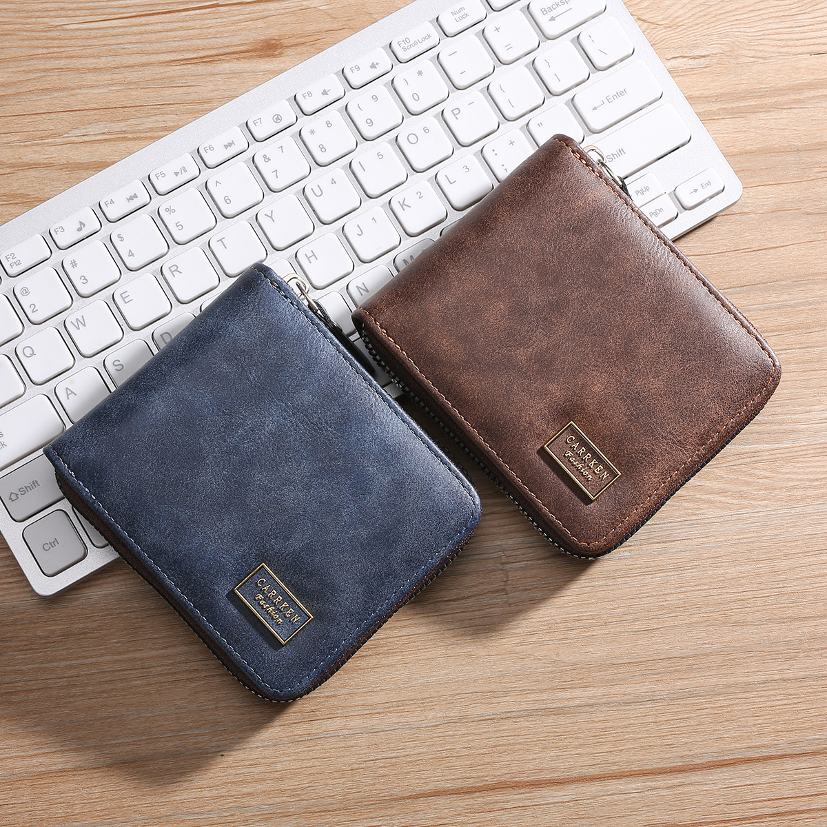 국경 새로운 남성 캐주얼 간단한 다기능 지퍼 짧은 지갑 대용량 멀티 카드 동전 지갑스토어 가기