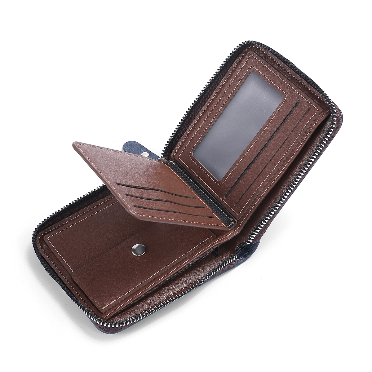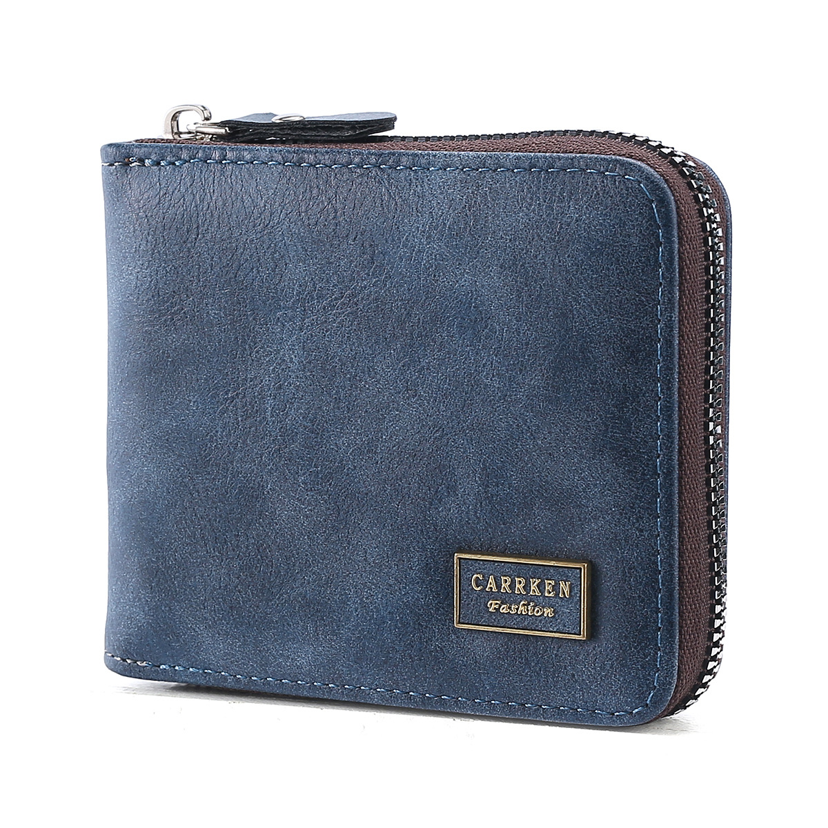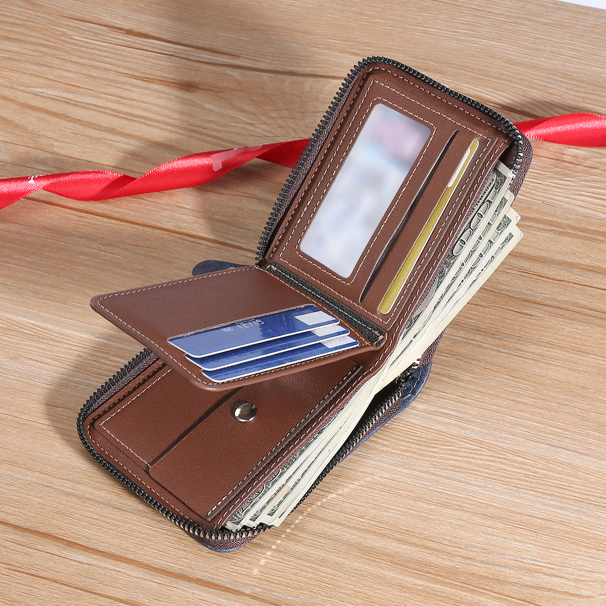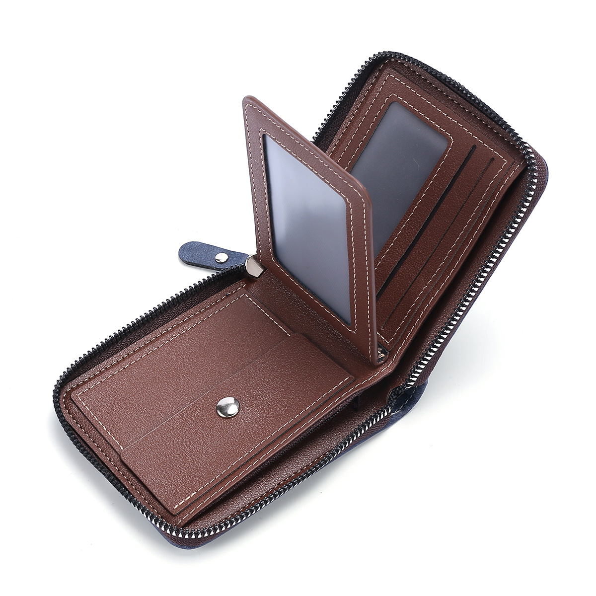 국경 새로운 남성 캐주얼 간단한 다기능 지퍼 짧은 지갑 대용량 멀티 카드 동전 지갑스토어 가기