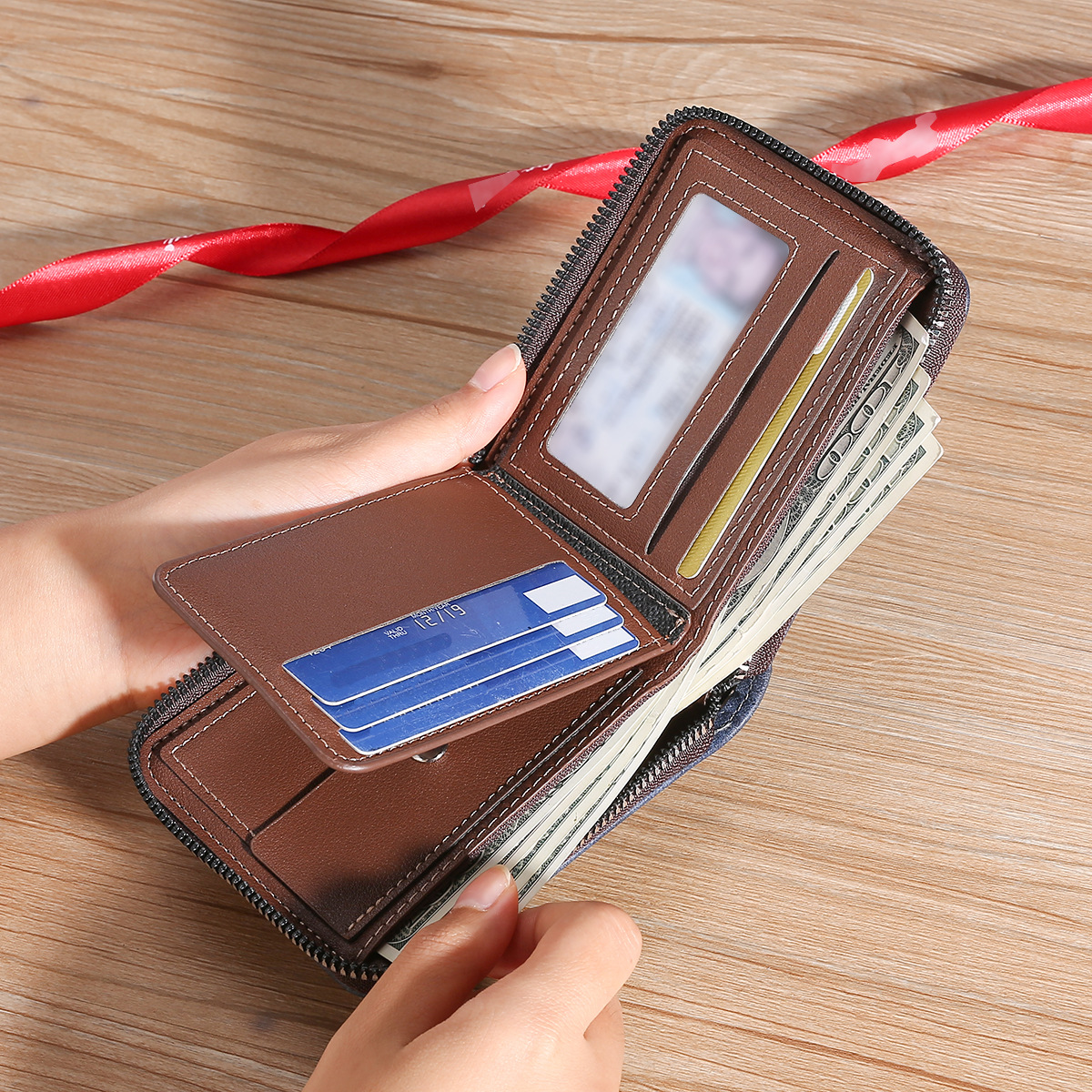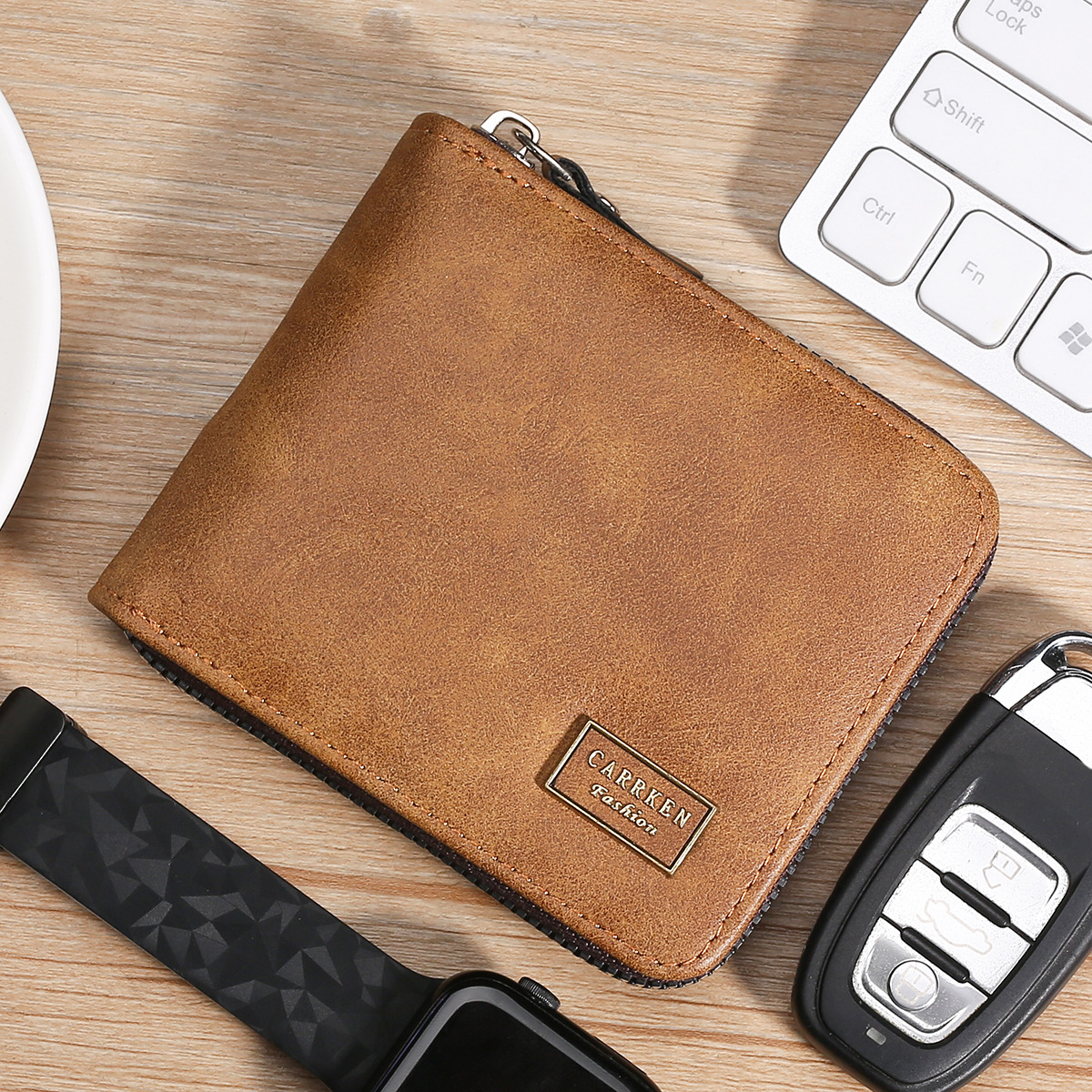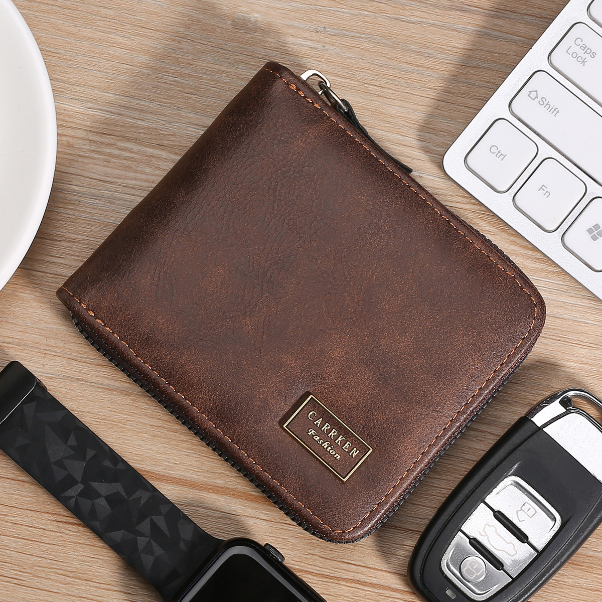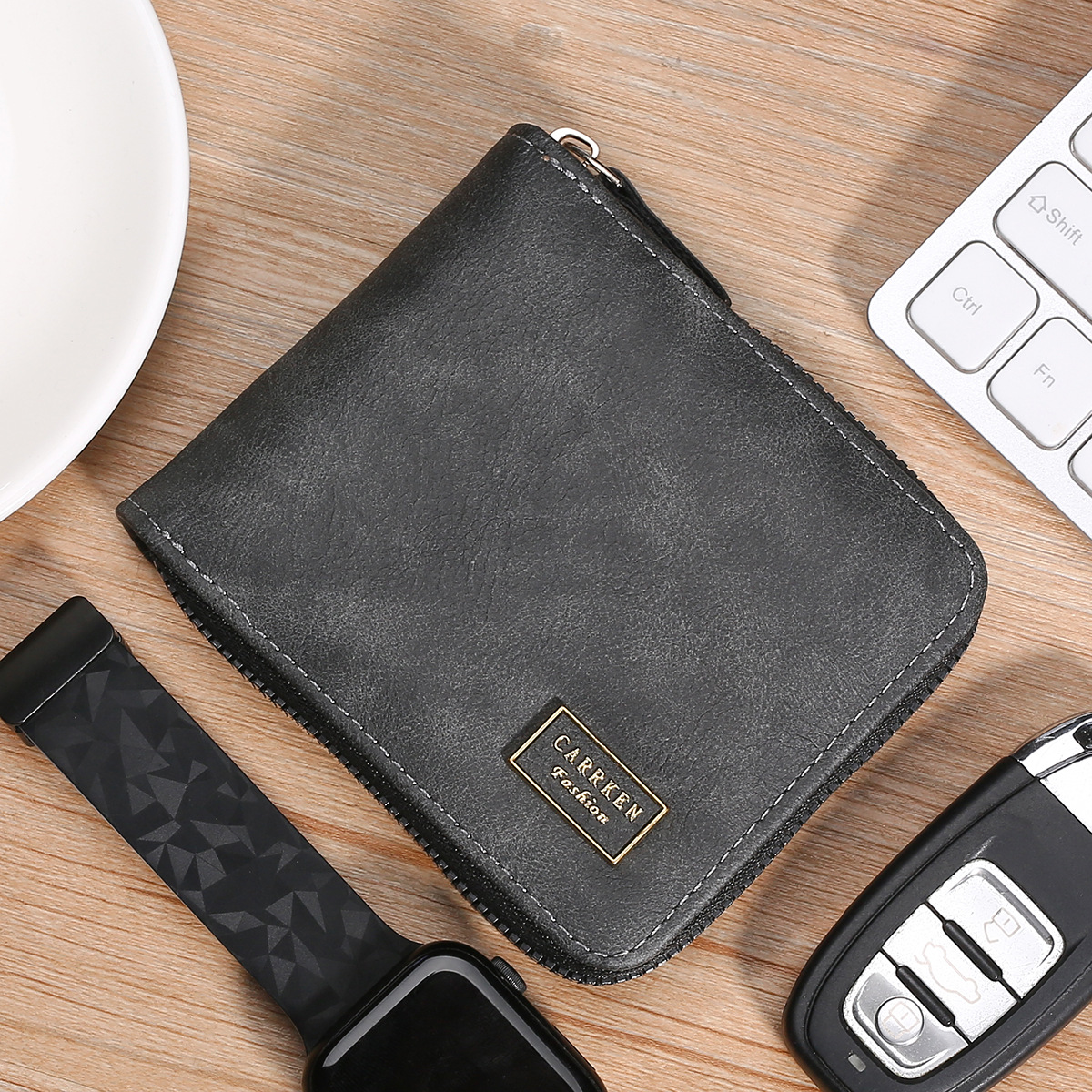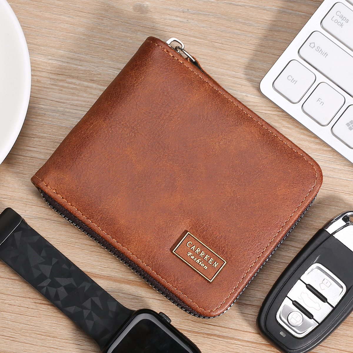 국경 새로운 남성 캐주얼 간단한 다기능 지퍼 짧은 지갑 대용량 멀티 카드 동전 지갑