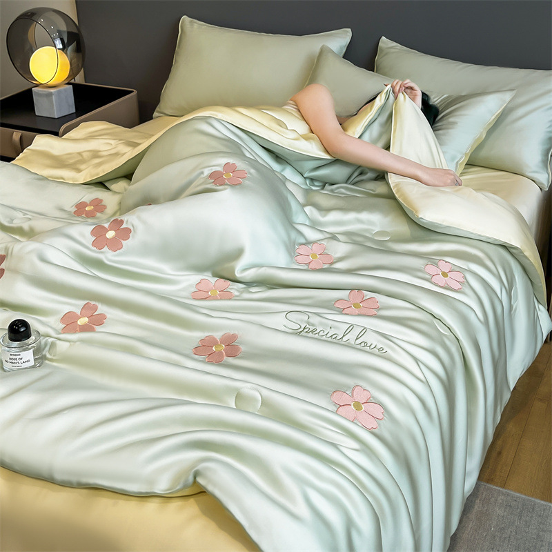 클래스 A 엄마와 유아 학년 시원한 여름 퀼터 아이스 실크 여름 퀼터 4 조각 세트 싱글 더블 머신 세탁기 에어컨 퀼터 여름 3