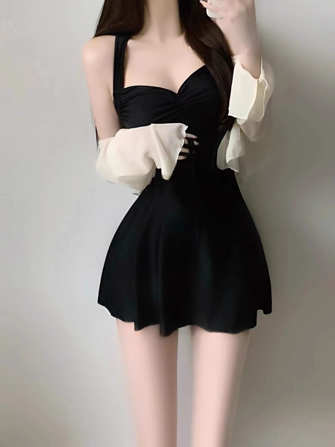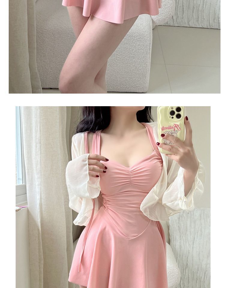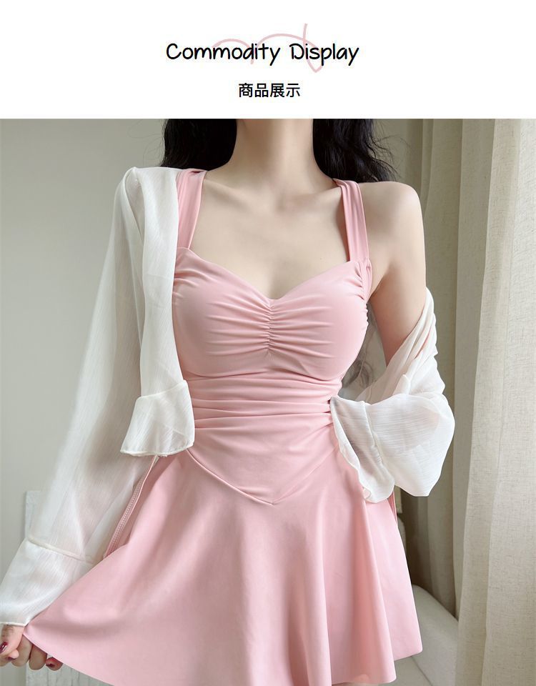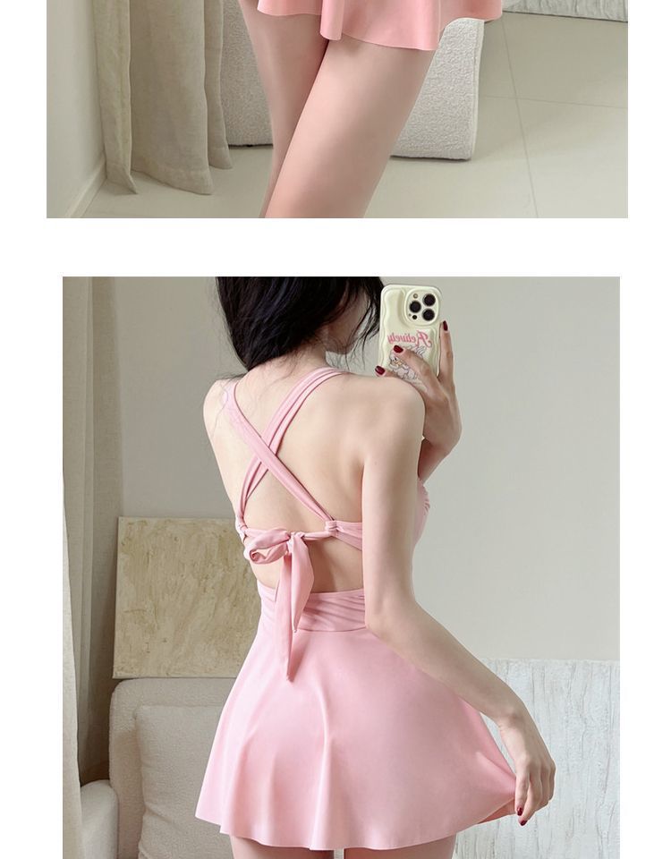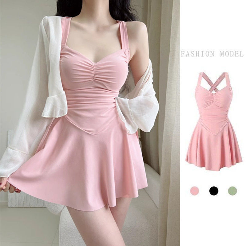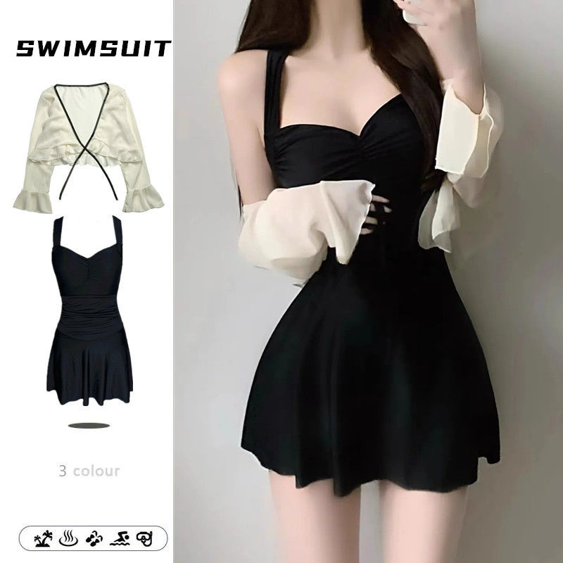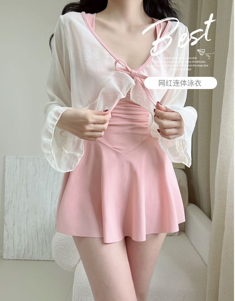 여성용 온천 수영복 2025 새로운 스타일의 원피스 슬리밍 배 커버 보수적 카프리 수영복 살찐 소녀용스토어 가기