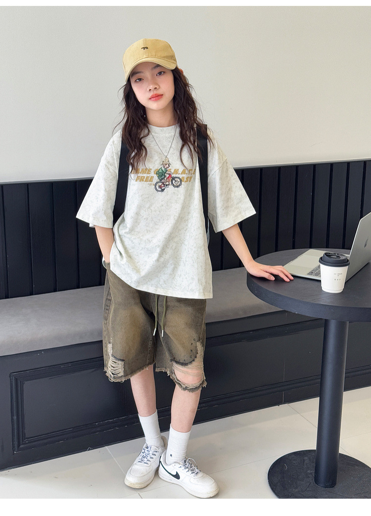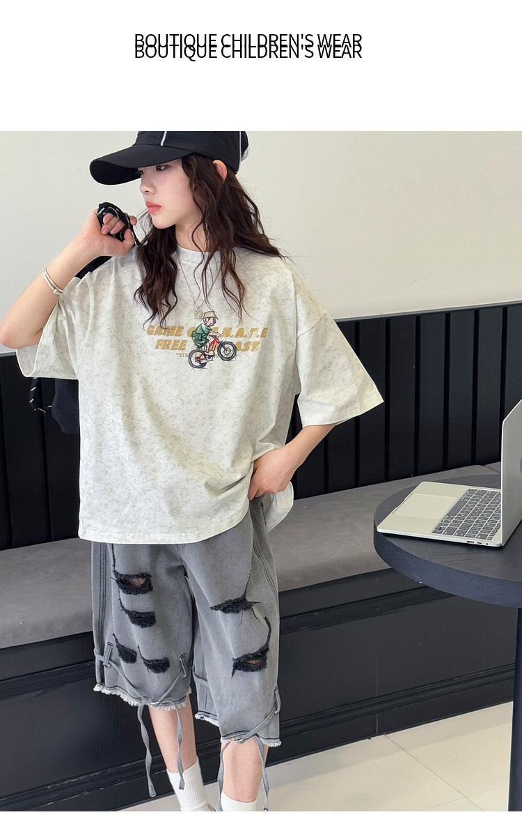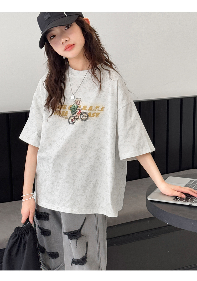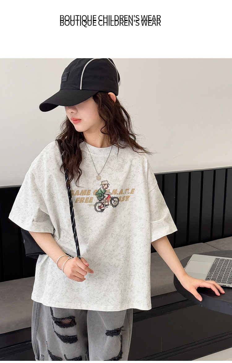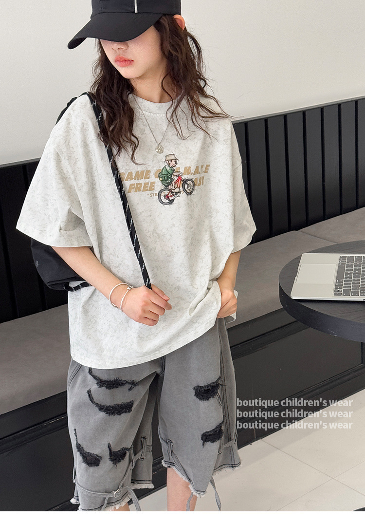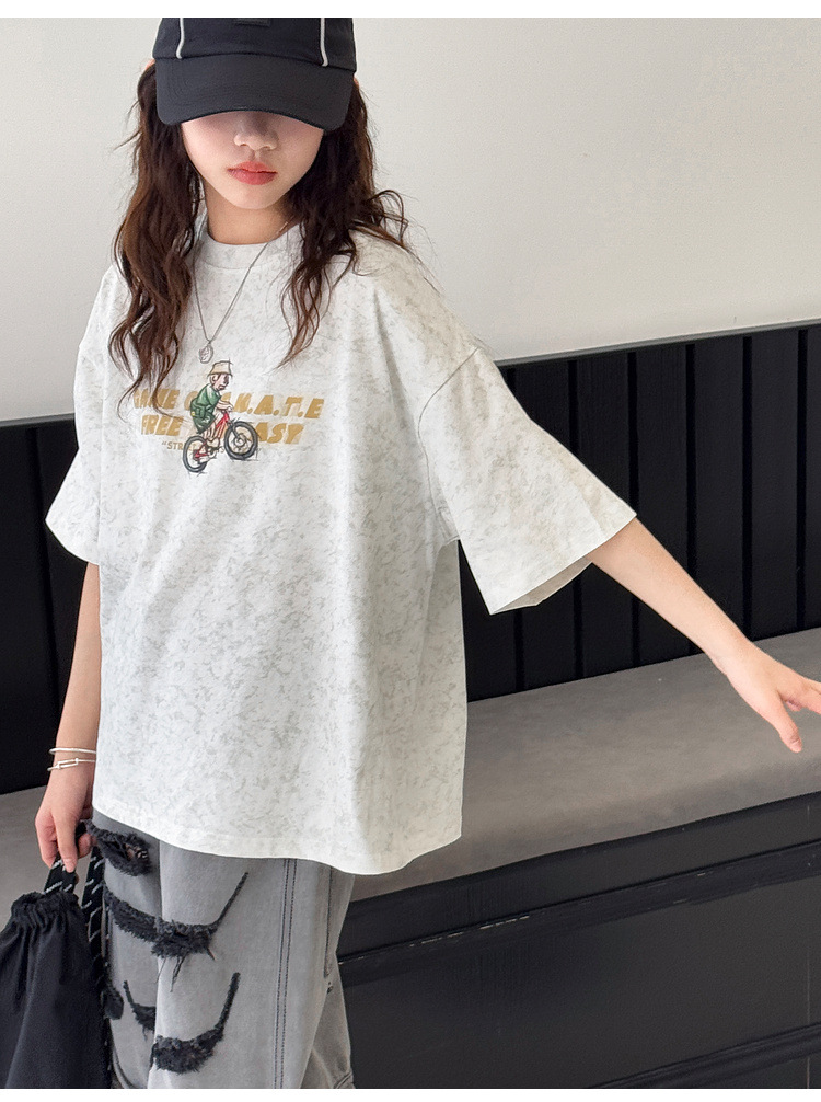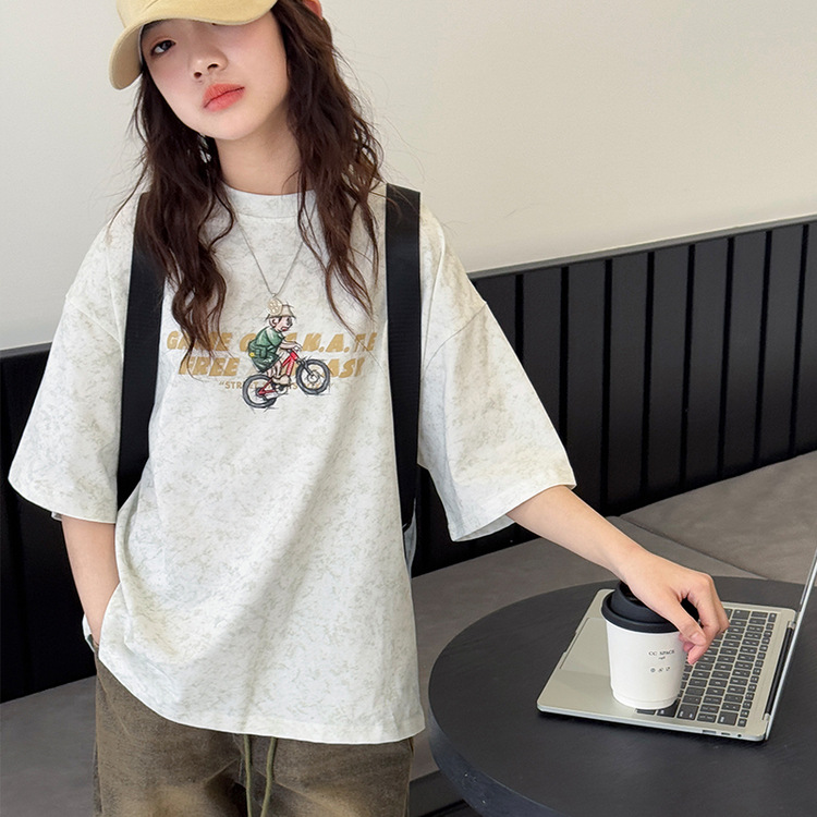 여아 반팔 티셔츠 2026 여름 신상품 아동용 타이다이 프린트 탑 여아 패션 개성 만점 다용도 트렌디 티셔츠스토어 가기