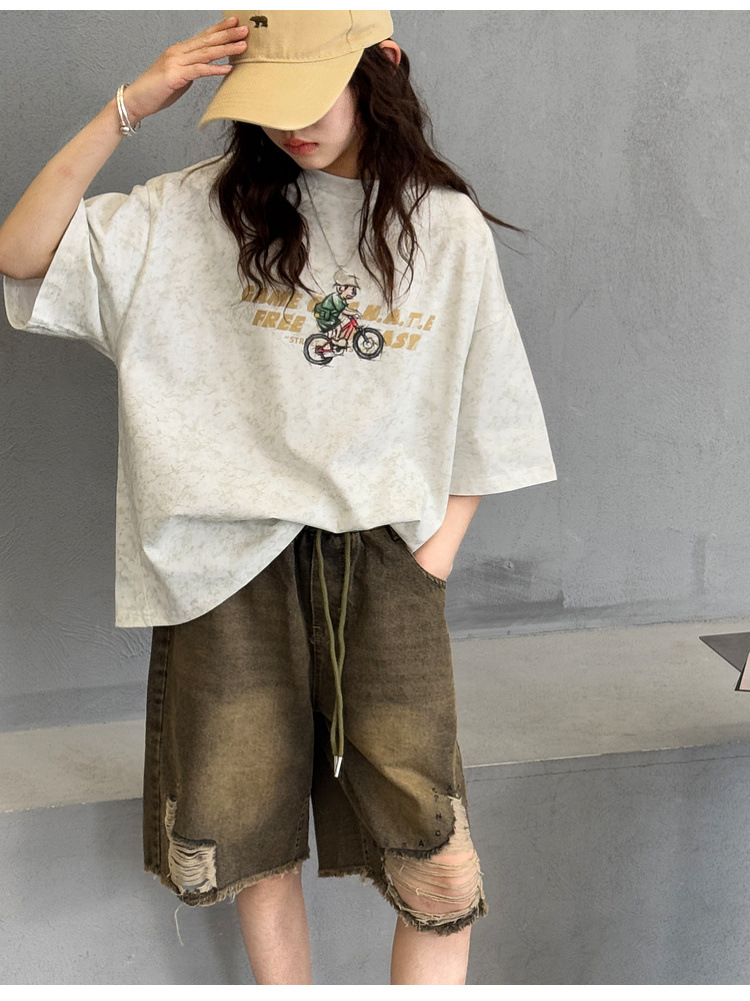 여아 반팔 티셔츠 2026 여름 신상품 아동용 타이다이 프린트 탑 여아 패션 개성 만점 다용도 트렌디 티셔츠
