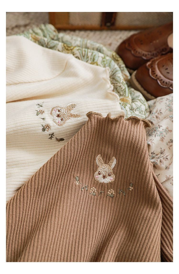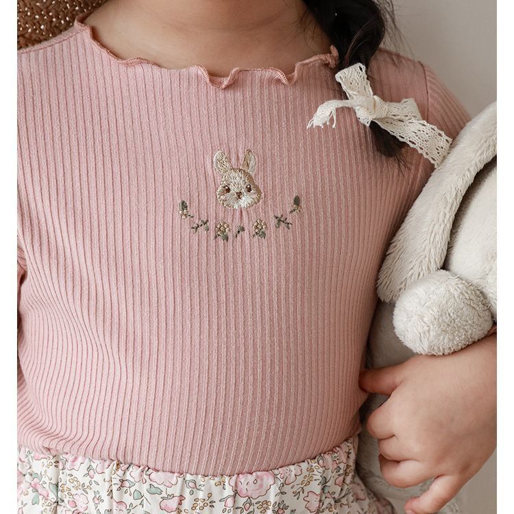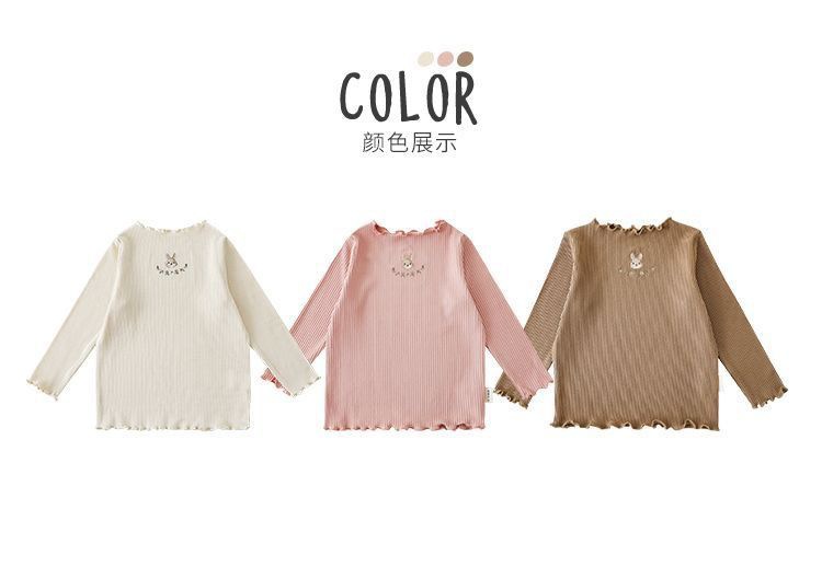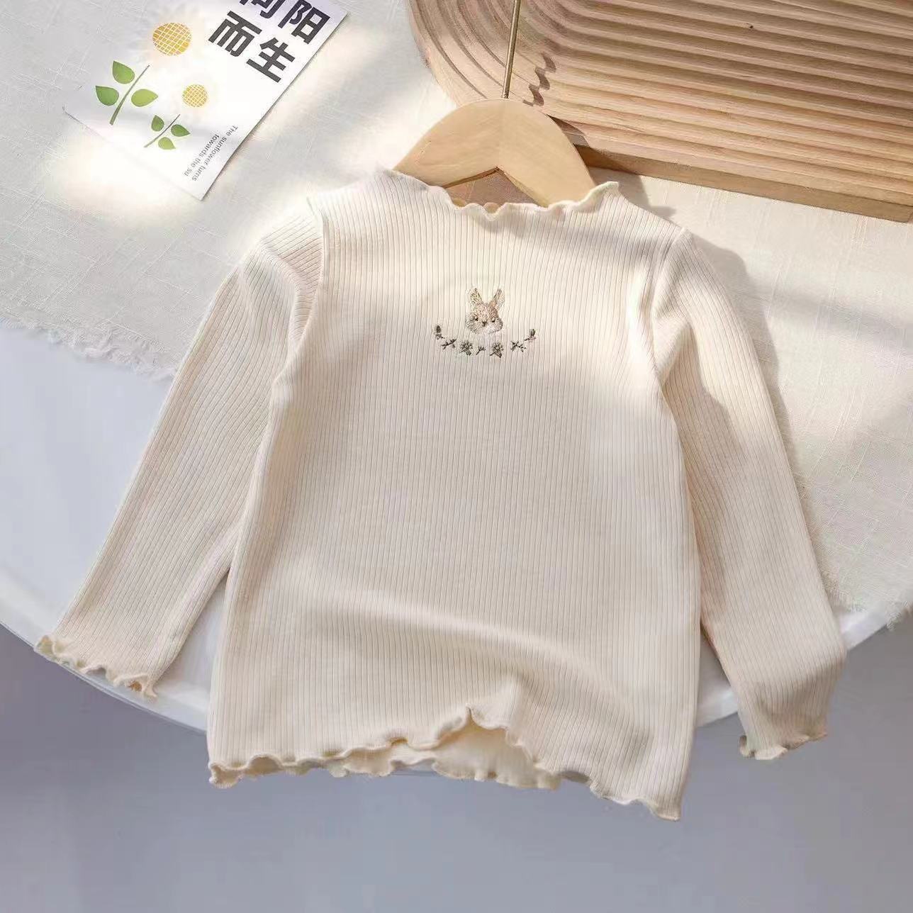 봄과 가을 여성 아동복 베이스 셔츠 아기의 서양식 어린이 성격 유행 한국 스타일 만화 꽃 자수 귀 가장자리 티셔츠