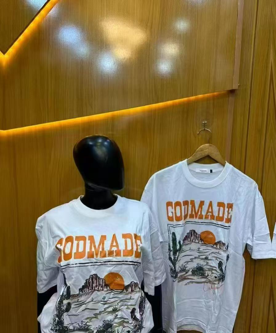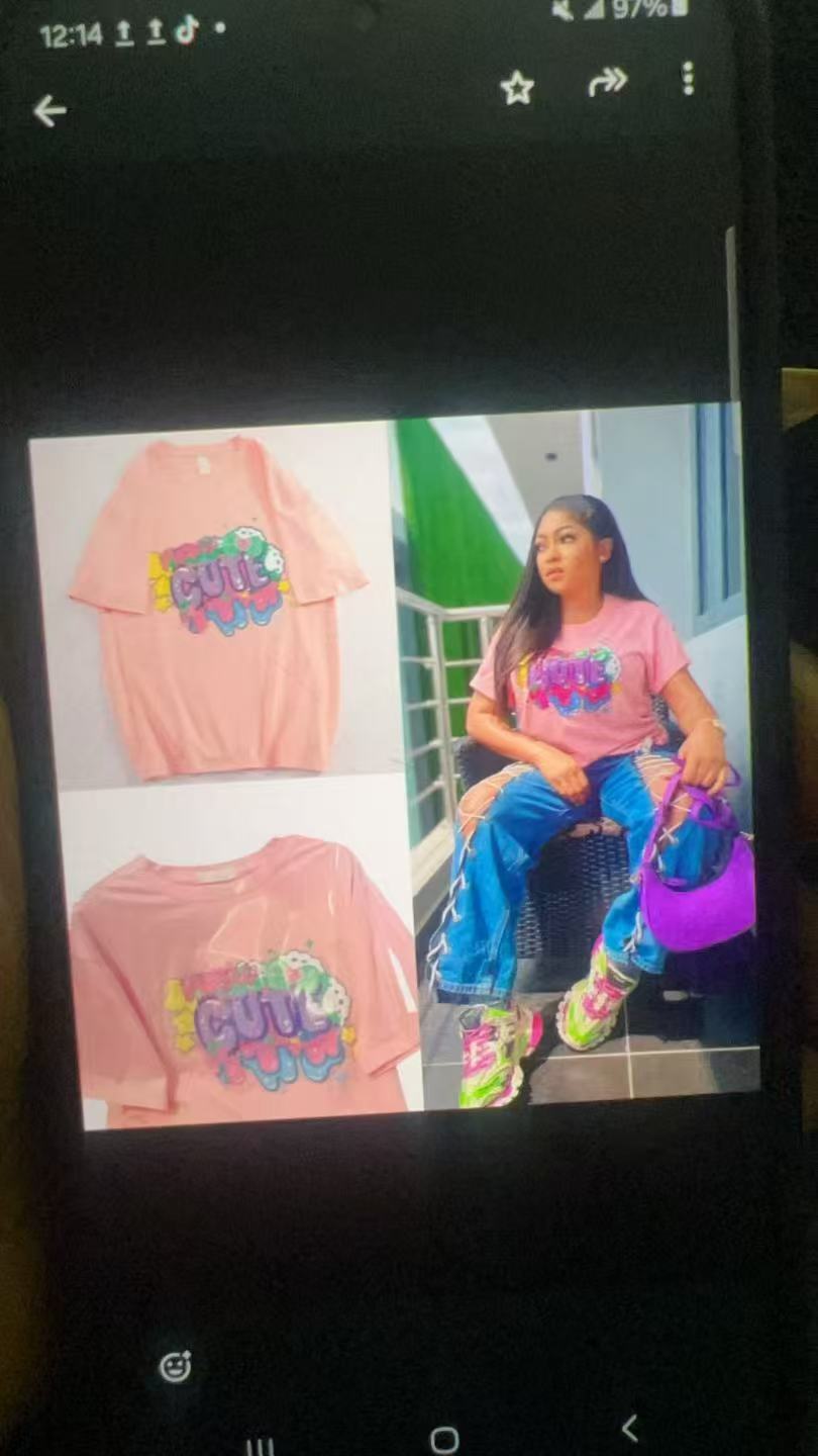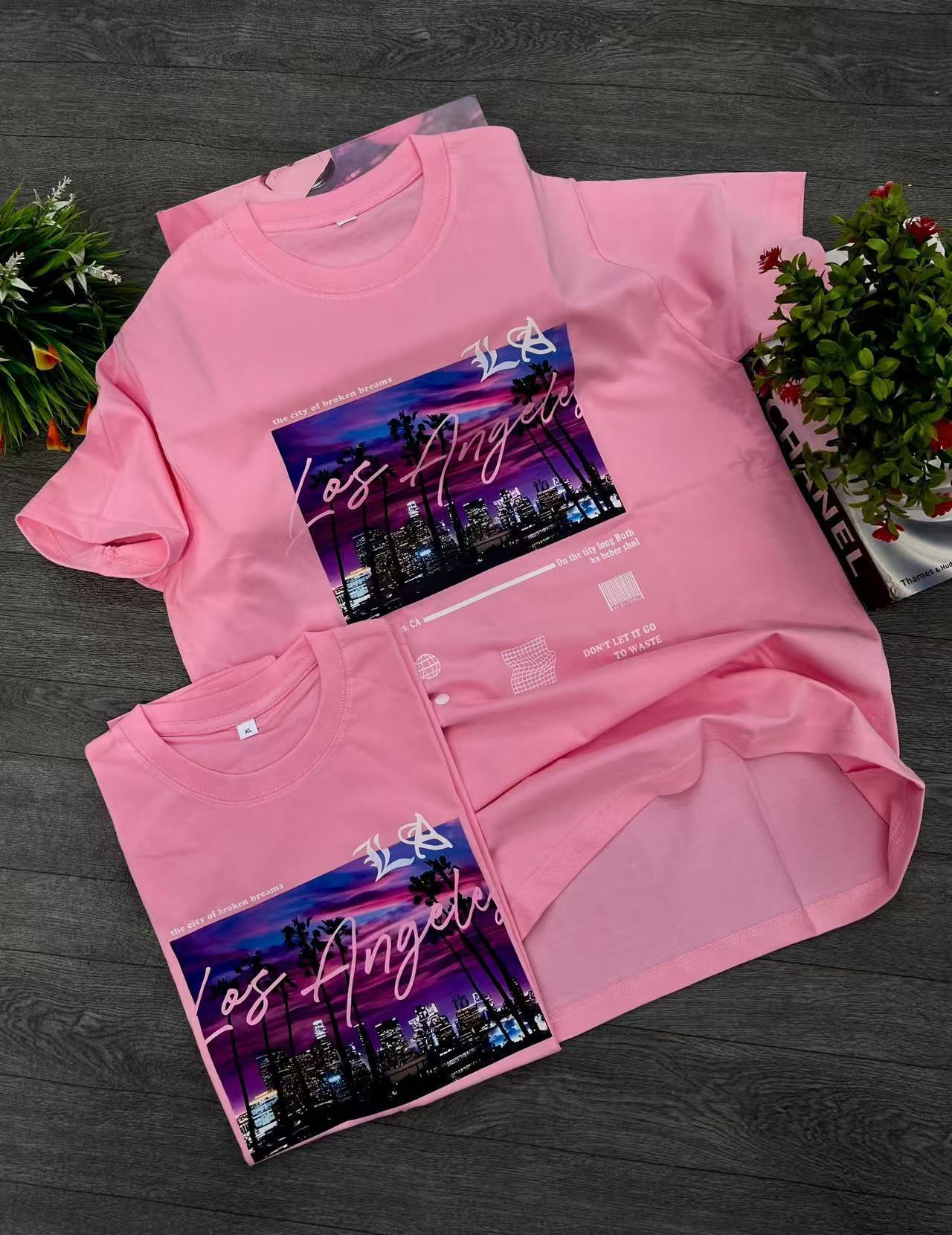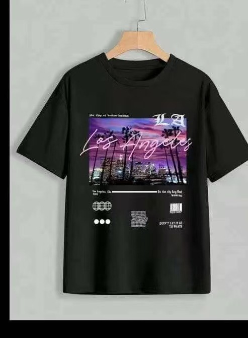 300 그램의 대외 무역 도매 2025 유럽과 미국 스타일의 여성 다재다능한 틈새 코튼 편안한 프린트 라운드 넥 짧은 소매 티셔츠스토어 가기