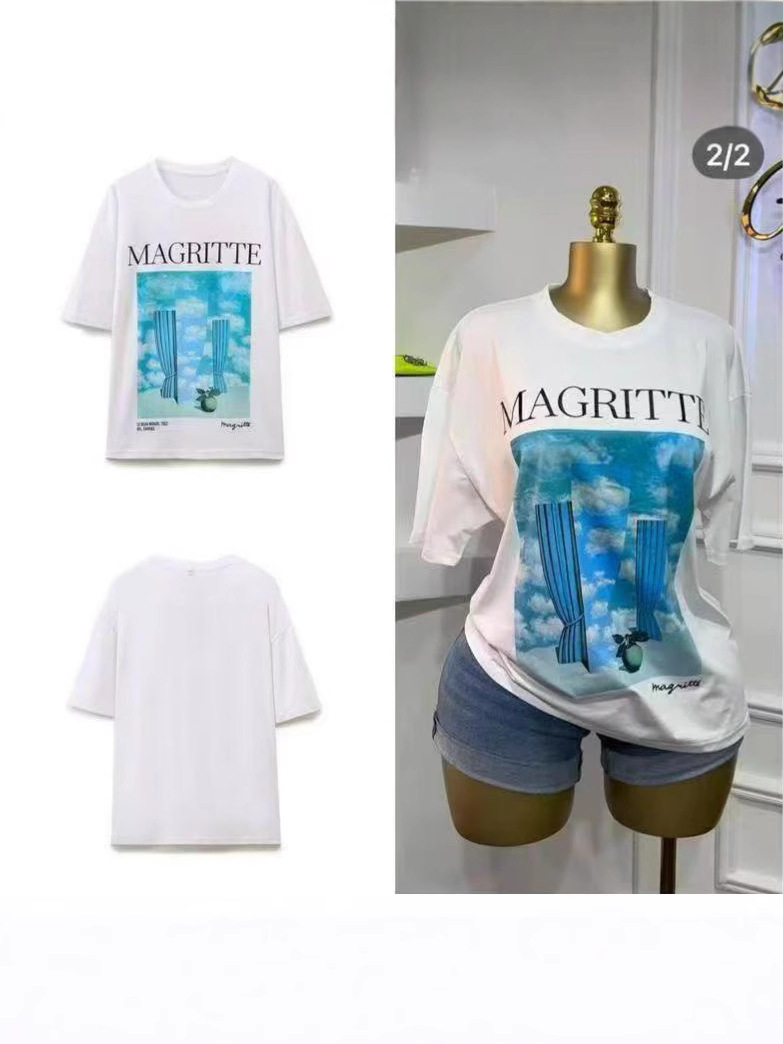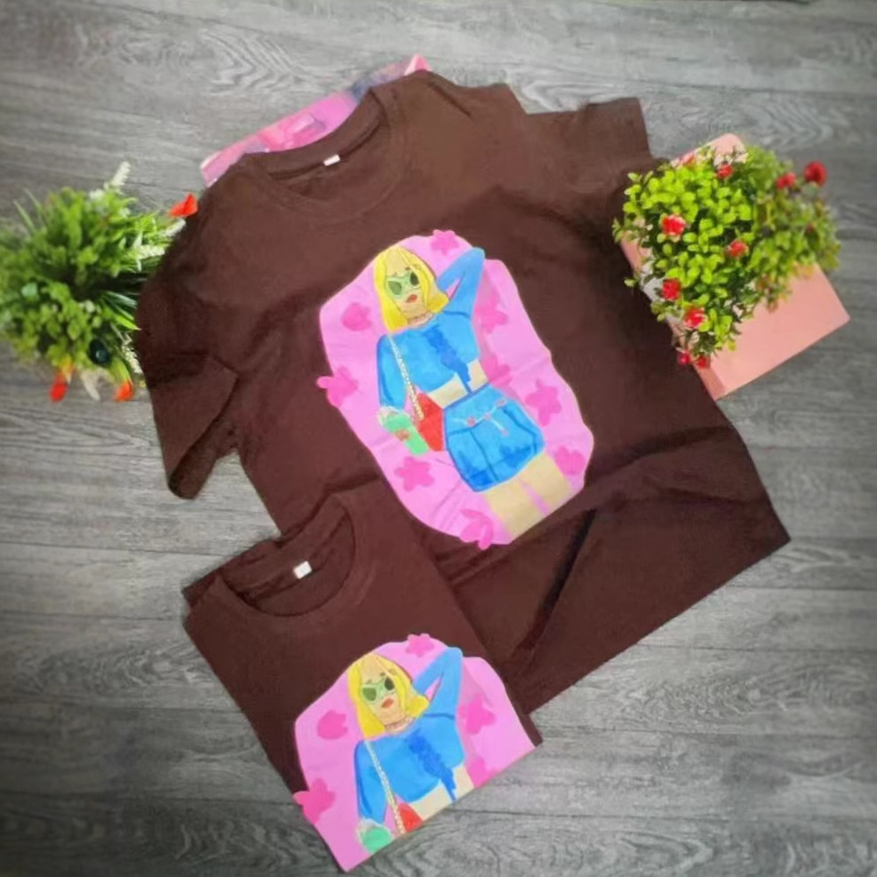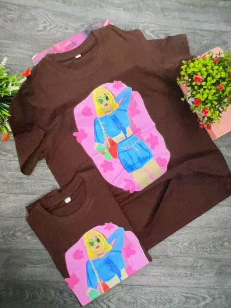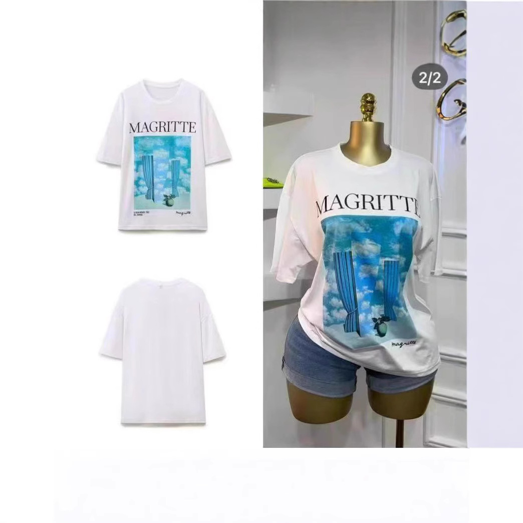 300 그램의 대외 무역 도매 2025 유럽과 미국 스타일의 여성 다재다능한 틈새 코튼 편안한 프린트 라운드 넥 짧은 소매 티셔츠