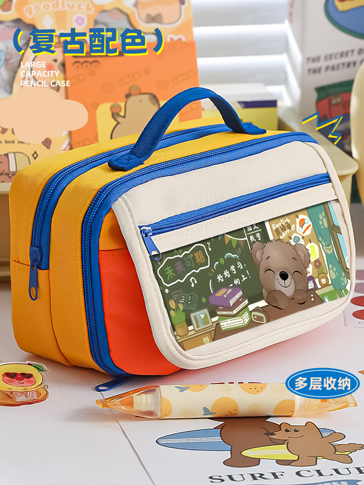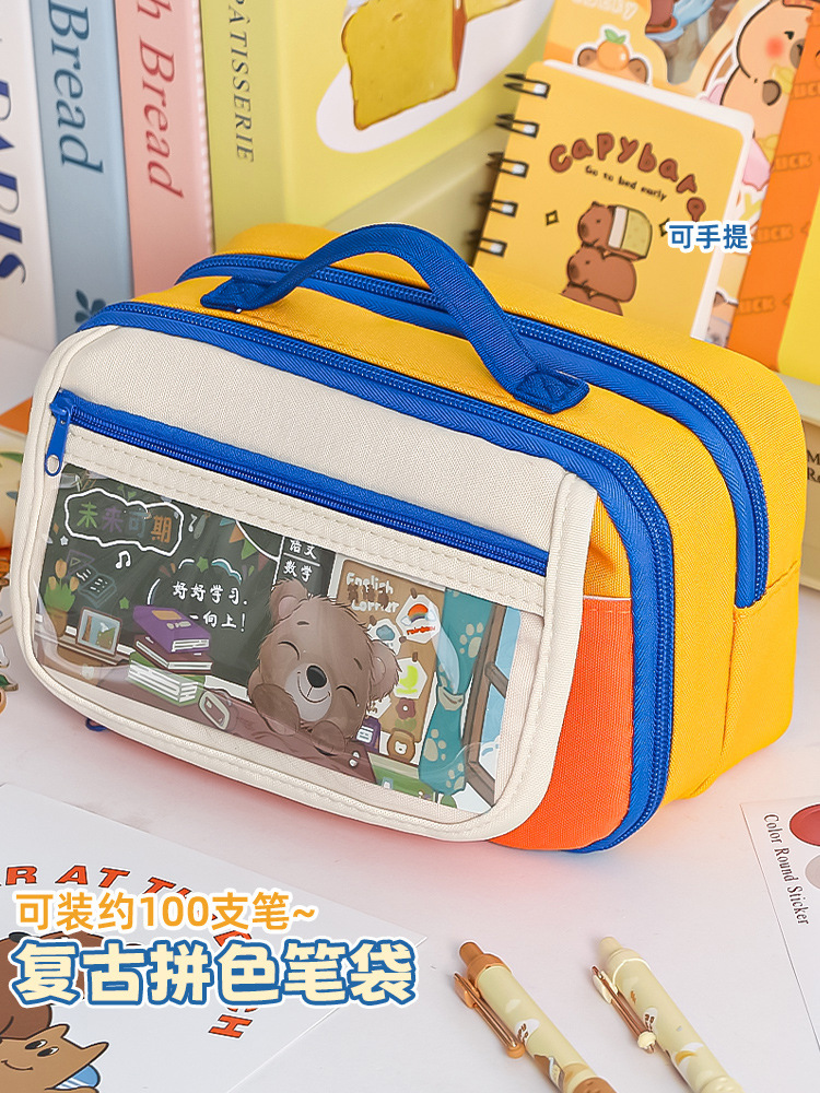 펜 케이스 레트로 컬러 대용량 소녀용 고급스러운 초등학생 문구 다기능 필통 초대형 용량