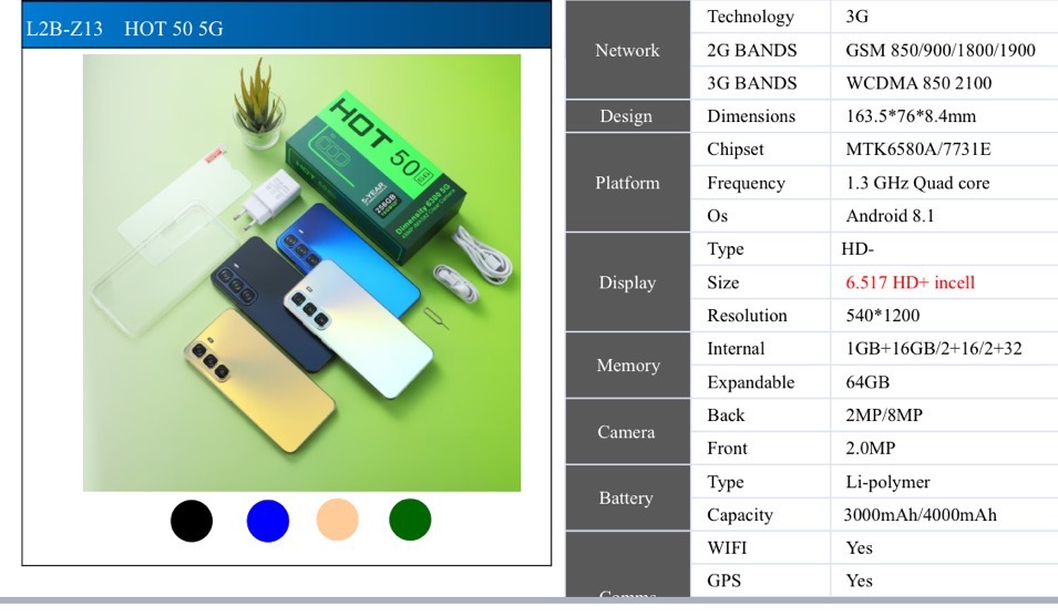 국경 HOT50 직선 스마트 폰 5G 듀얼 SIM 카드 와이파이 외국 기계스토어 가기