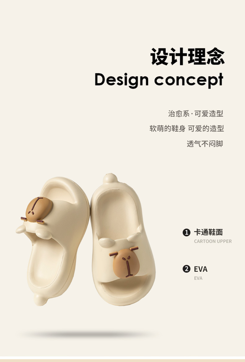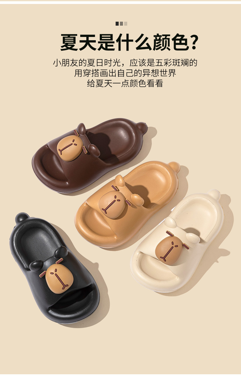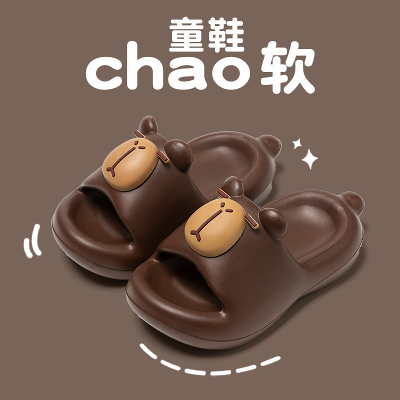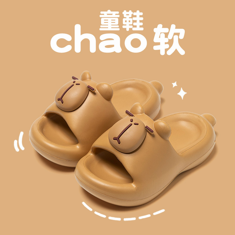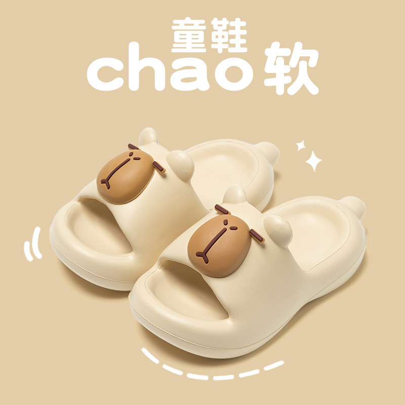 새로운 가정용 여름 아동 슬리퍼, 남아용 가정용 부드러운 밑창 미끄럼 방지 만화 귀여운 카피바라 슬리퍼, 여아용스토어 가기