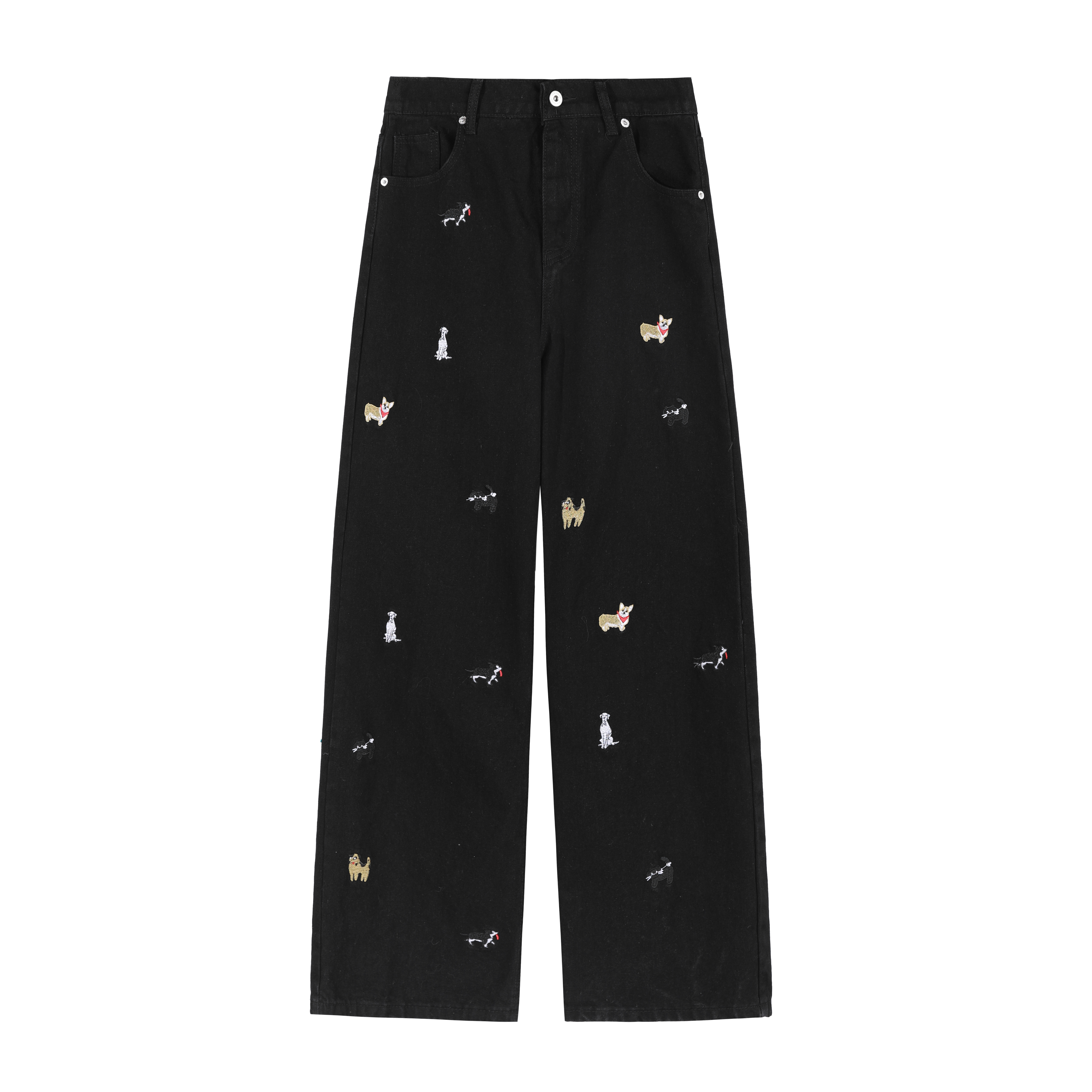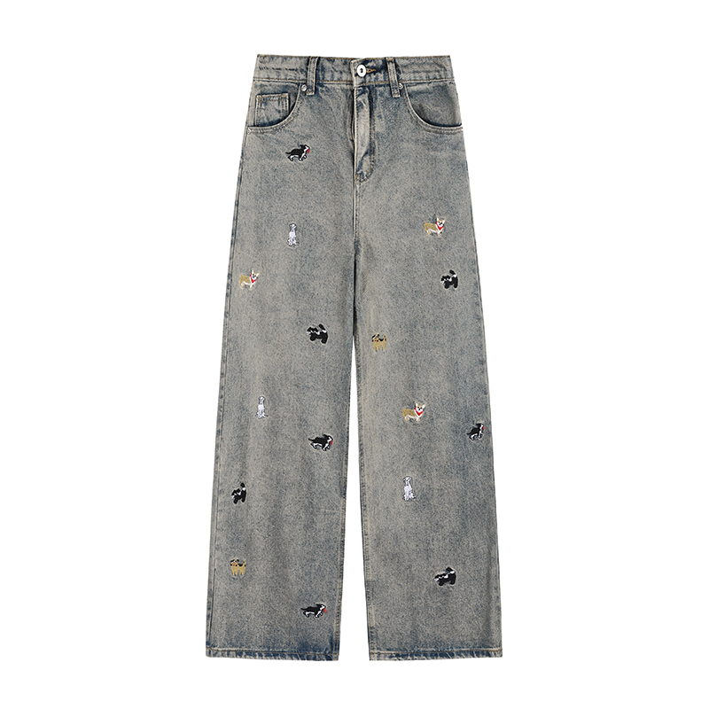 만화 강아지 자수 패션 캐주얼 청바지 남성 패션 봄 커플 스트레이트 다리 바지 느슨한 틈새 캐주얼 바지스토어 가기